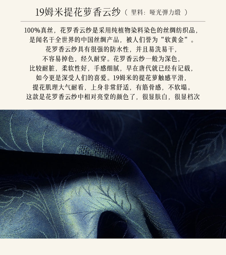 👉精选高级提花萝香云纱,老师傅一对一剪裁缝制,相当于私人定制。
