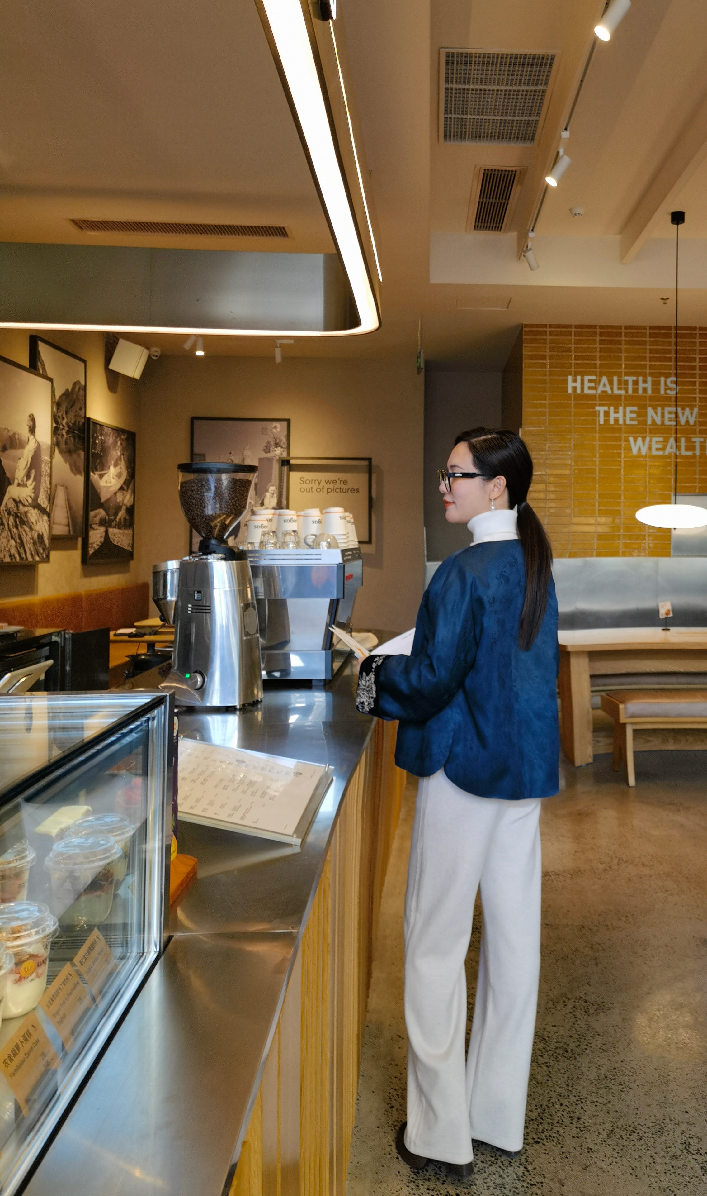 这种连袖的衣服,我门做的版型处理会 最大限度的减少胳膊处的褶皱,这样人就不会壮实,又有复古的韵味。
