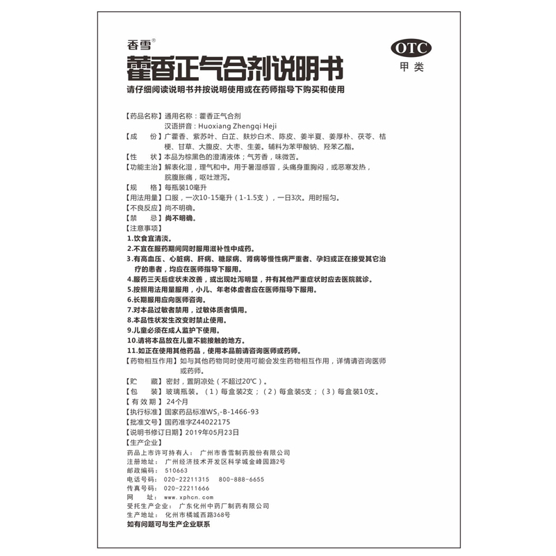 香雪 藿香正气合剂 10ML*5支/盒暑湿感冒恶寒发热腹胀痛呕吐泄泻
