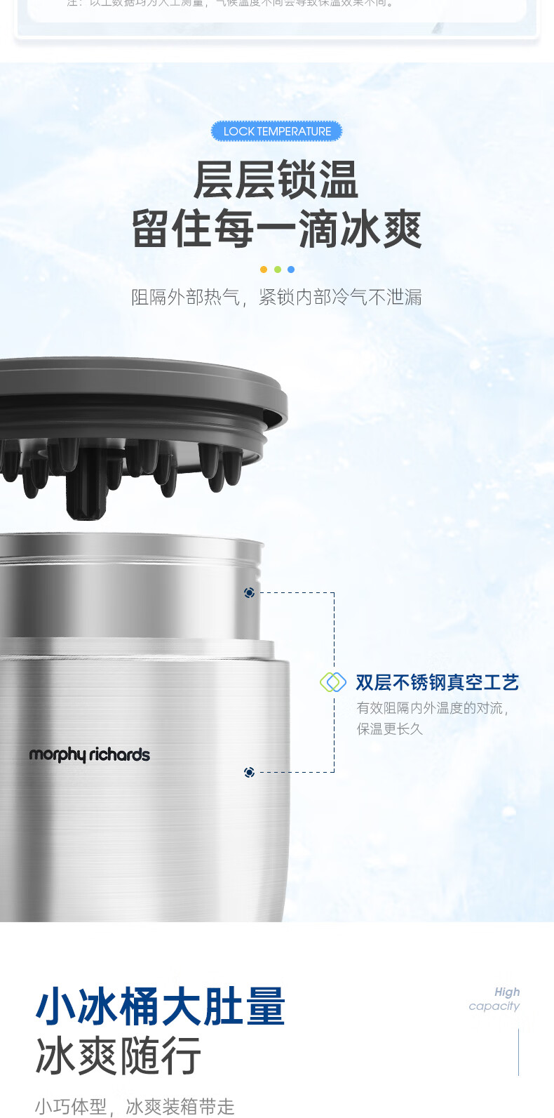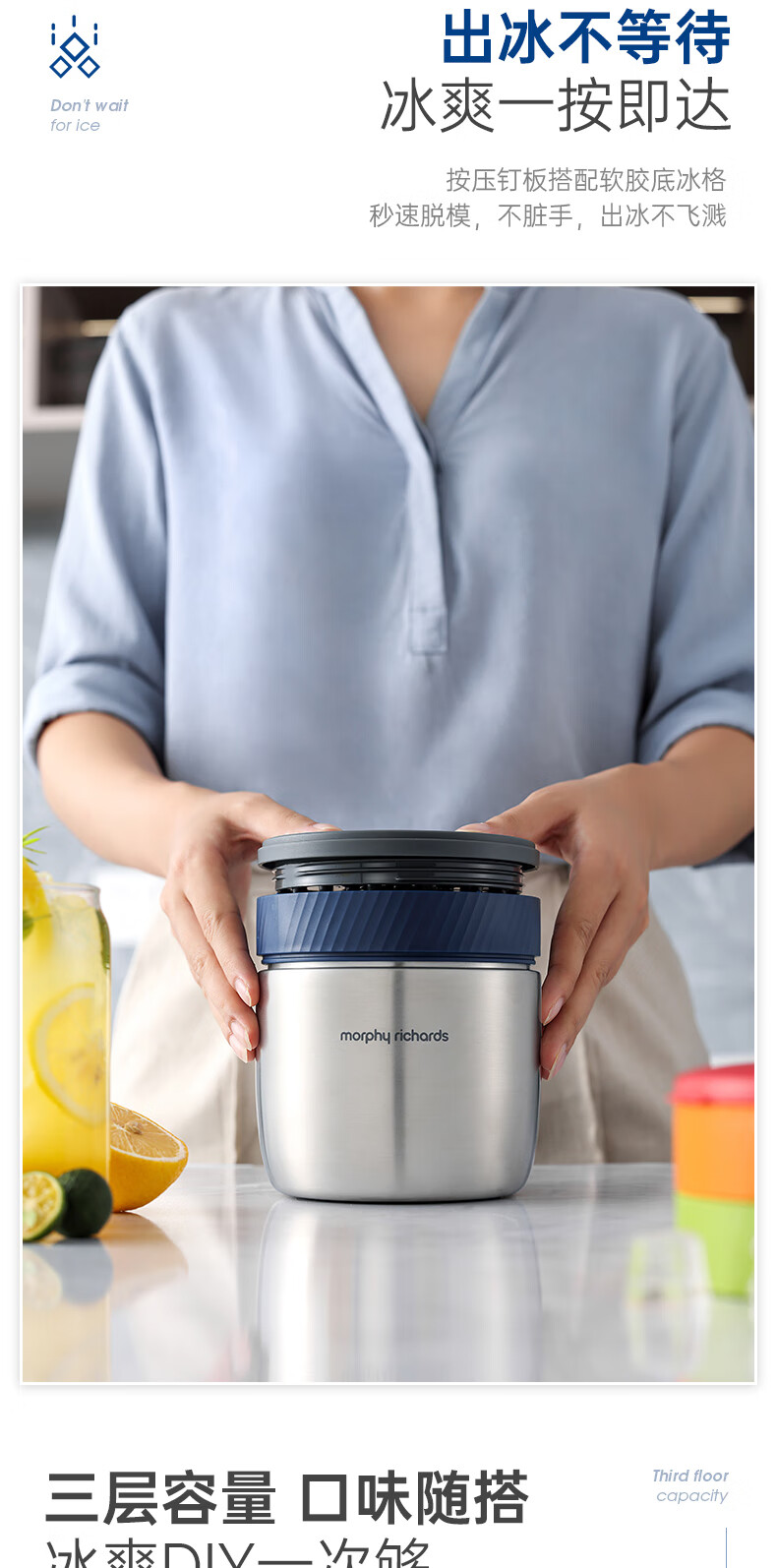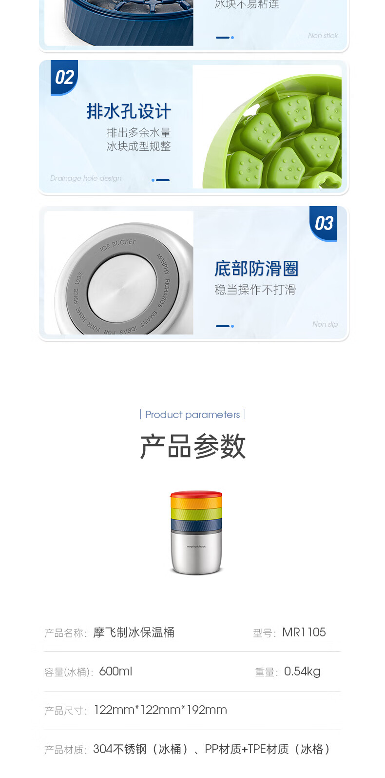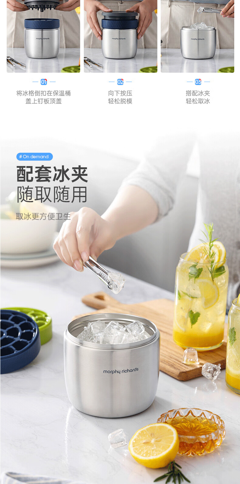 英国摩飞|舒淇同款 明星代言 制冰保温桶不锈钢冰桶大容量冰块模具储冰制冰盒带盖三层冰格 型号:MR1105(付款后三天内发货)