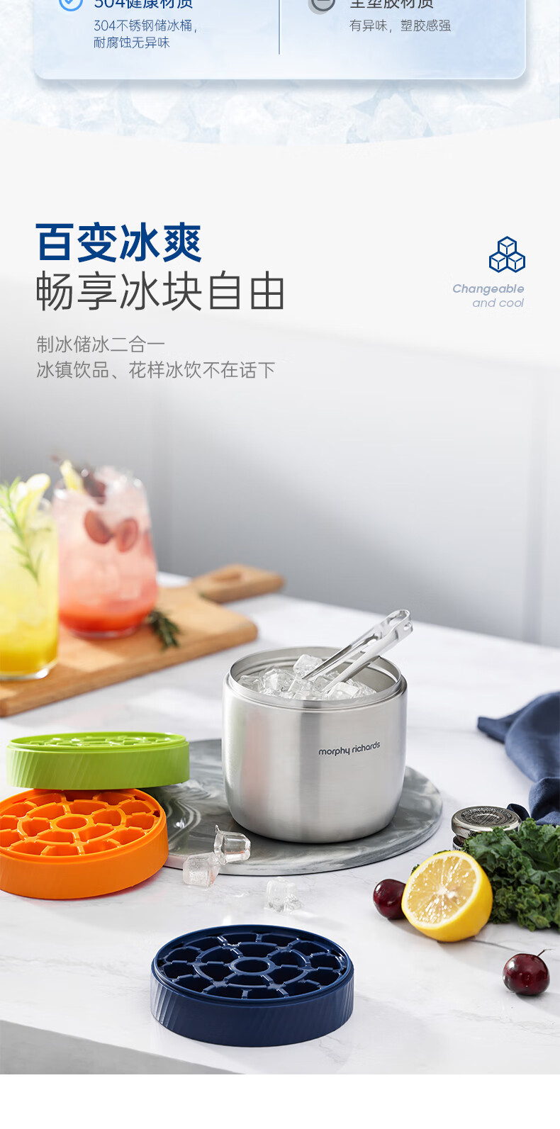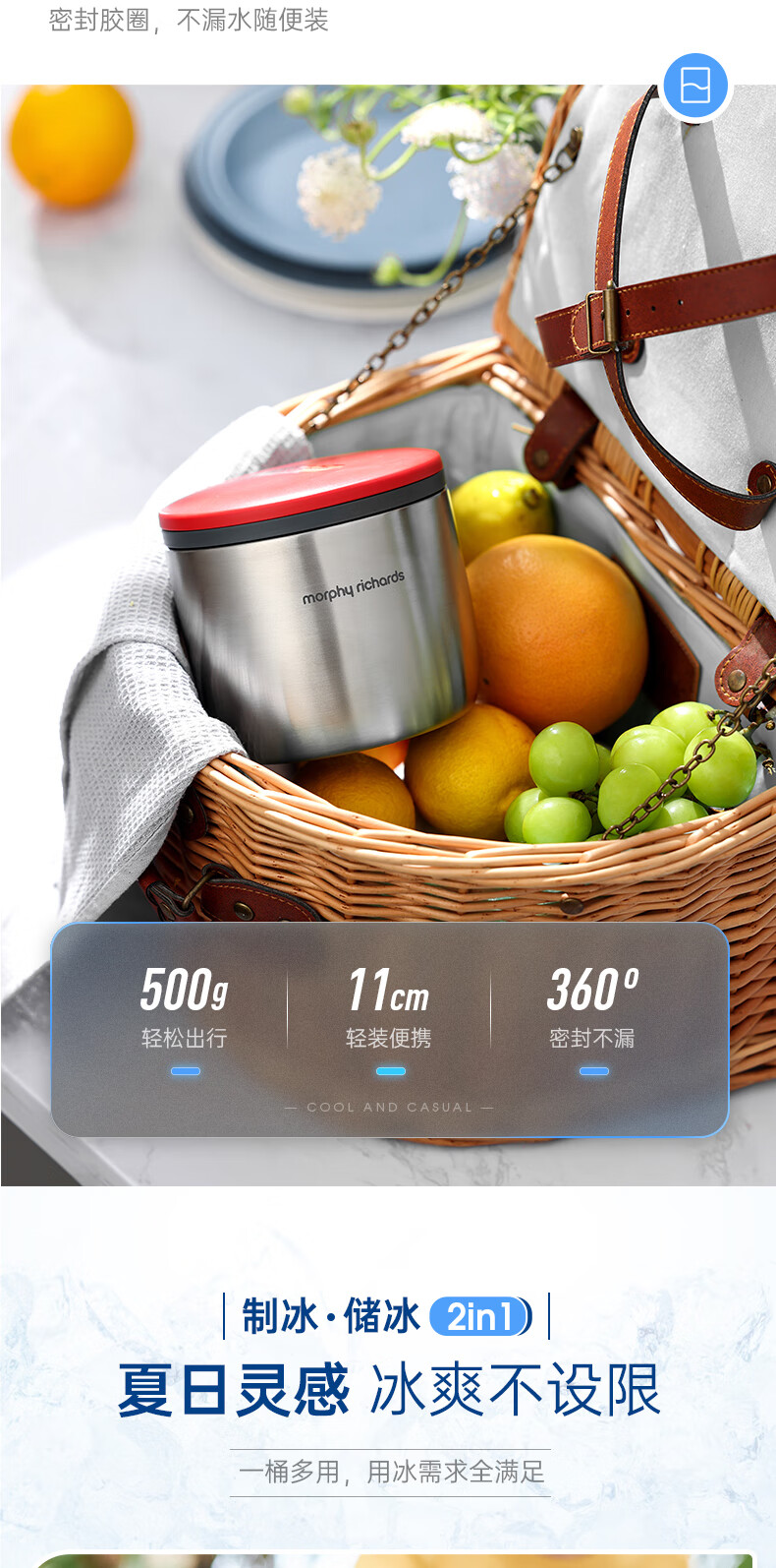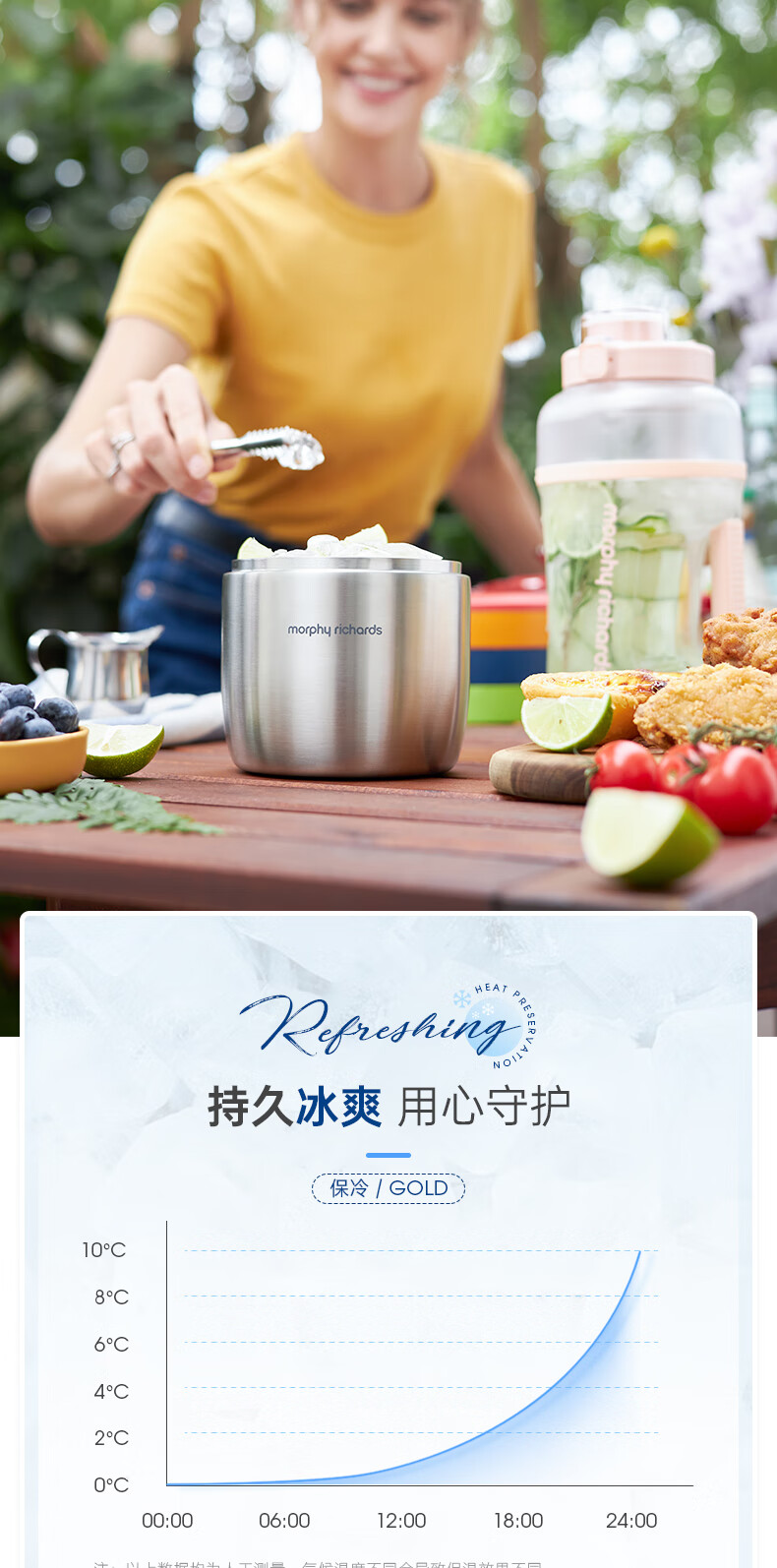 英国摩飞|舒淇同款 明星代言 制冰保温桶不锈钢冰桶大容量冰块模具储冰制冰盒带盖三层冰格 型号:MR1105(付款后三天内发货)