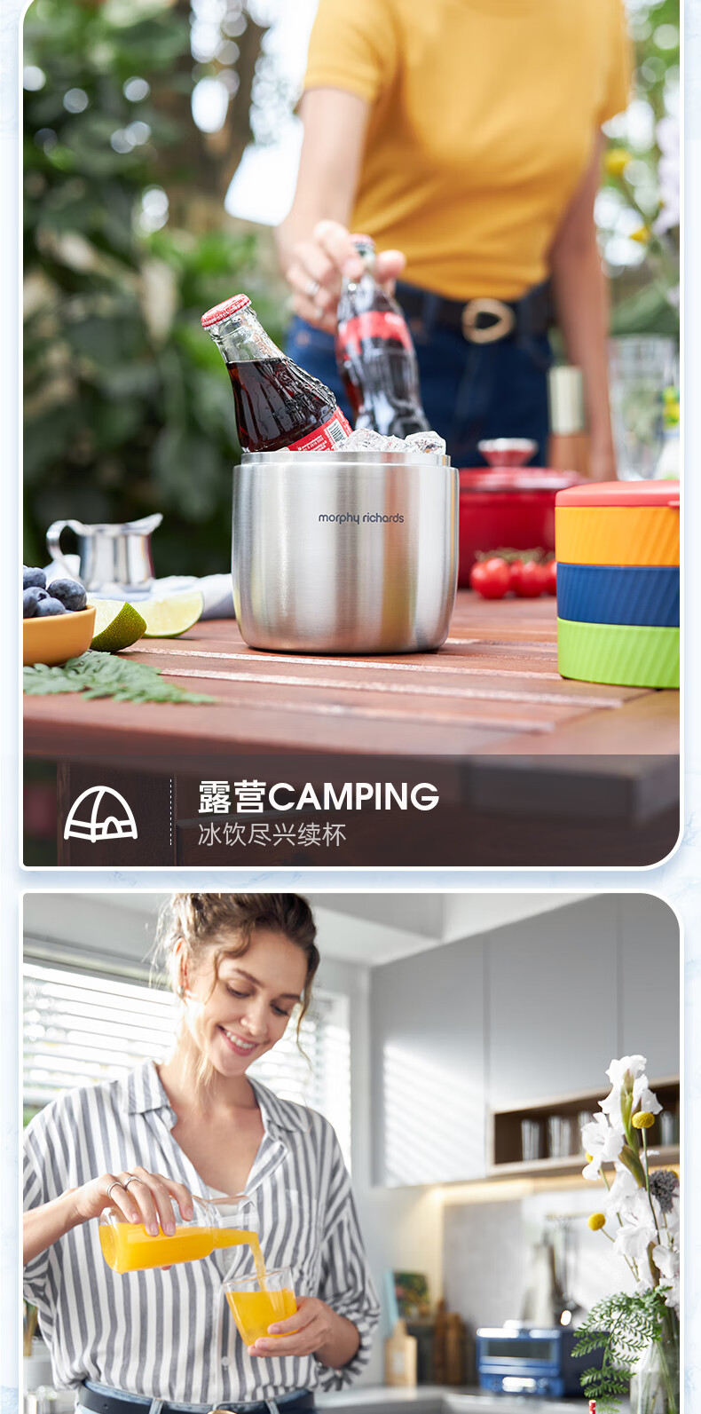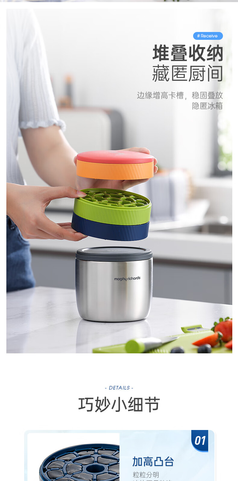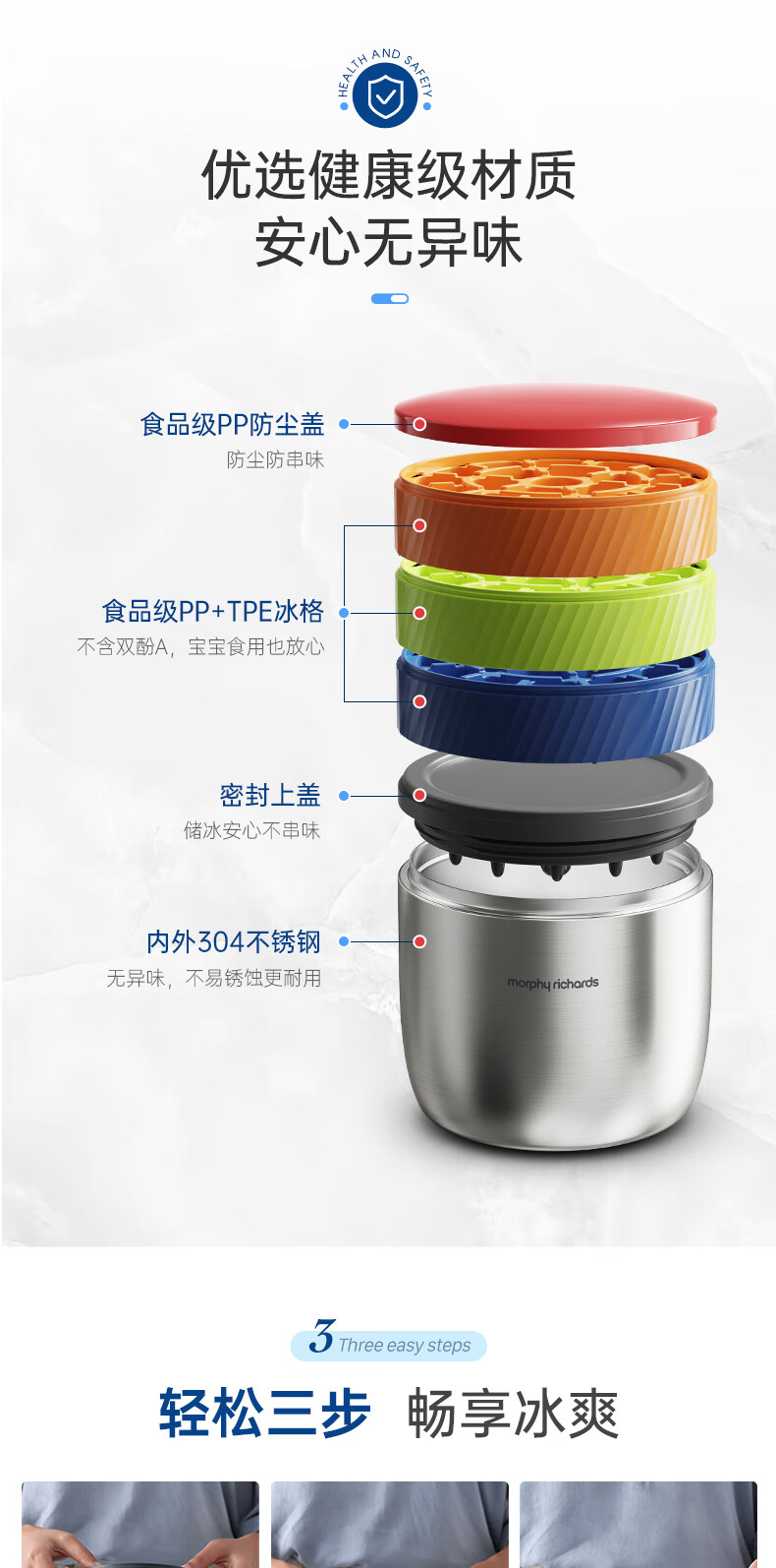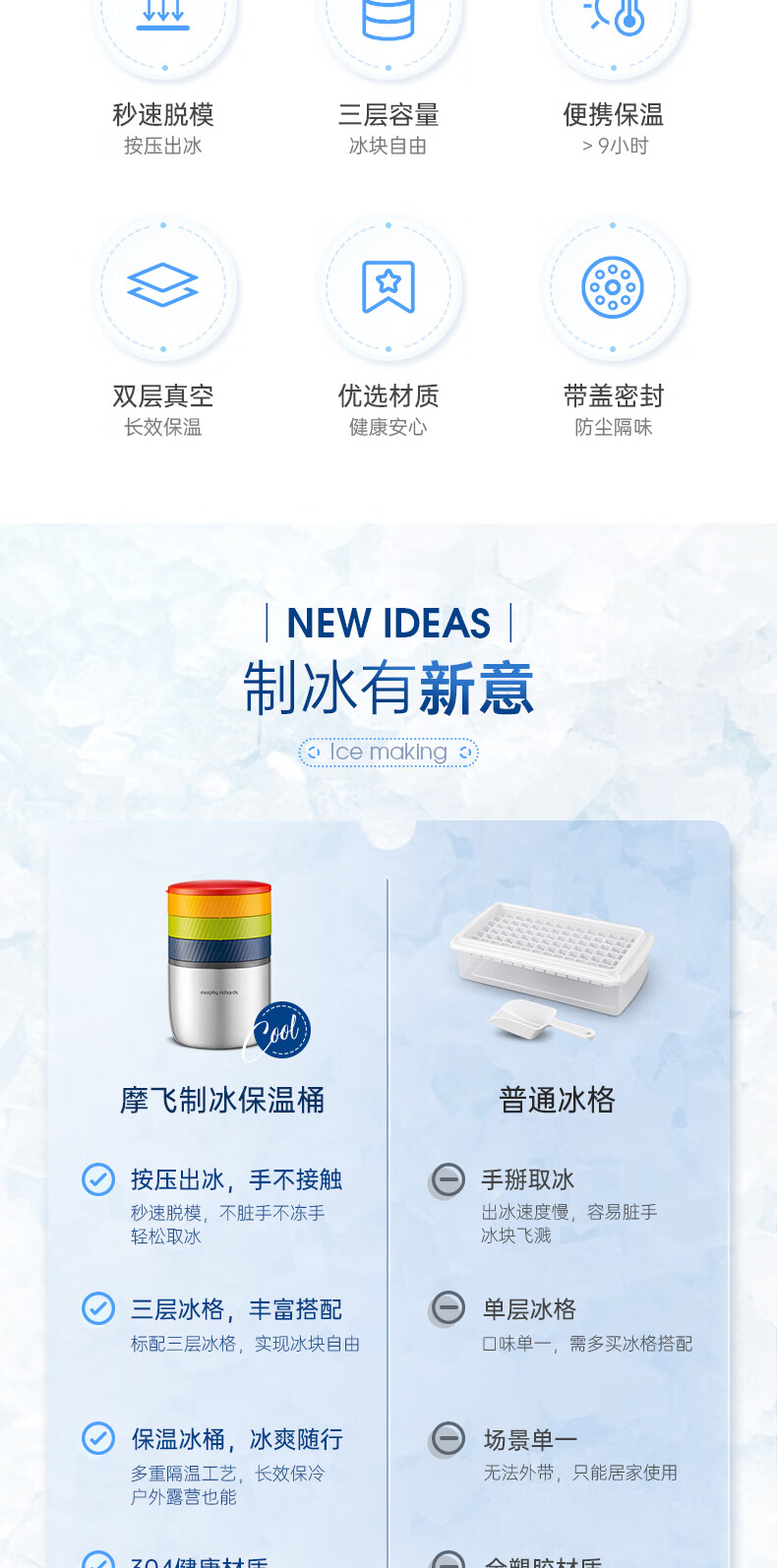 英国摩飞|舒淇同款 明星代言 制冰保温桶不锈钢冰桶大容量冰块模具储冰制冰盒带盖三层冰格 型号:MR1105(付款后三天内发货)