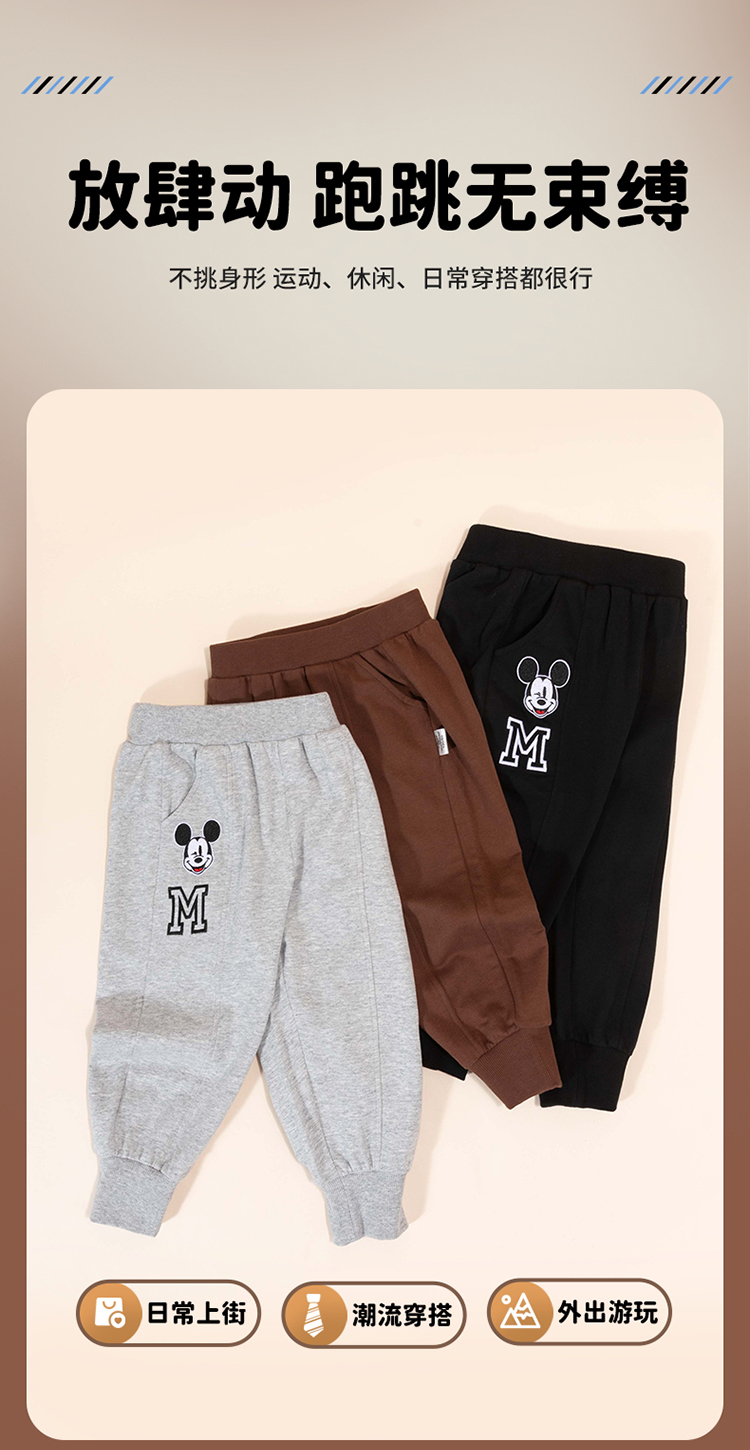 迪士尼儿童童装儿童裤子秋季男童休闲运动裤2024新款男孩长裤外穿春秋装ZD3DK001