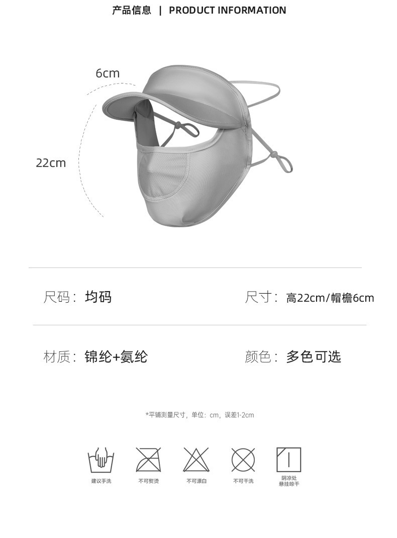 【防晒面罩女 夏季遮全脸防紫外线脸基尼帽檐】脸罩冰丝薄款口罩 夏季出门好物upf50