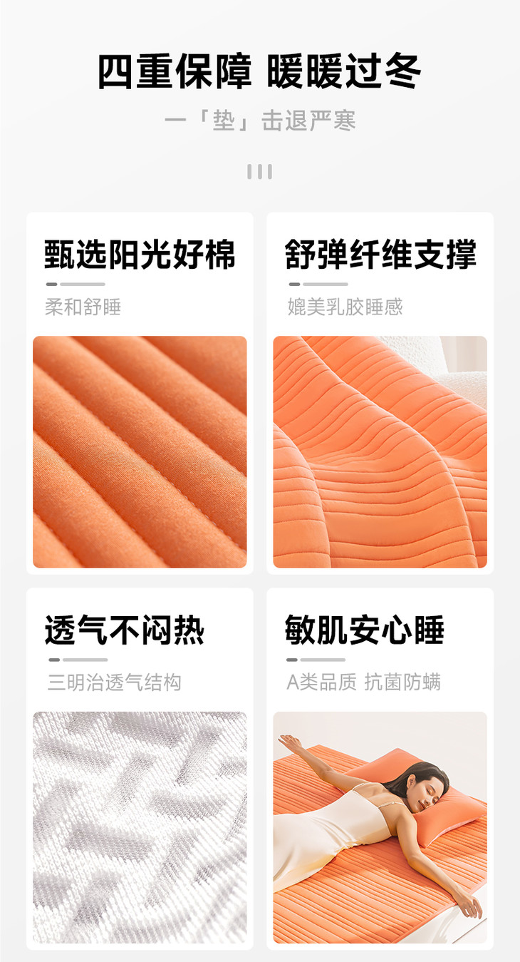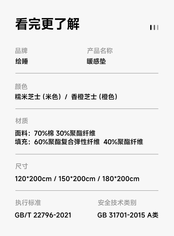 [屁侠推荐]绘睡 Q弹自发热芝士暖感垫 超柔针织 舒弹纤维支撑 科技轻柔面料 蓄热保暖 抗静电