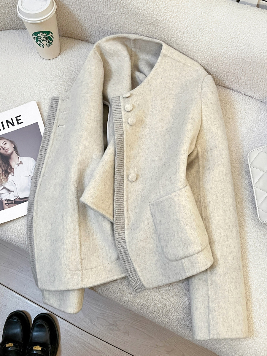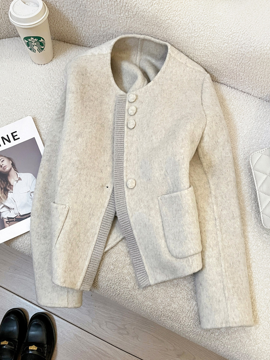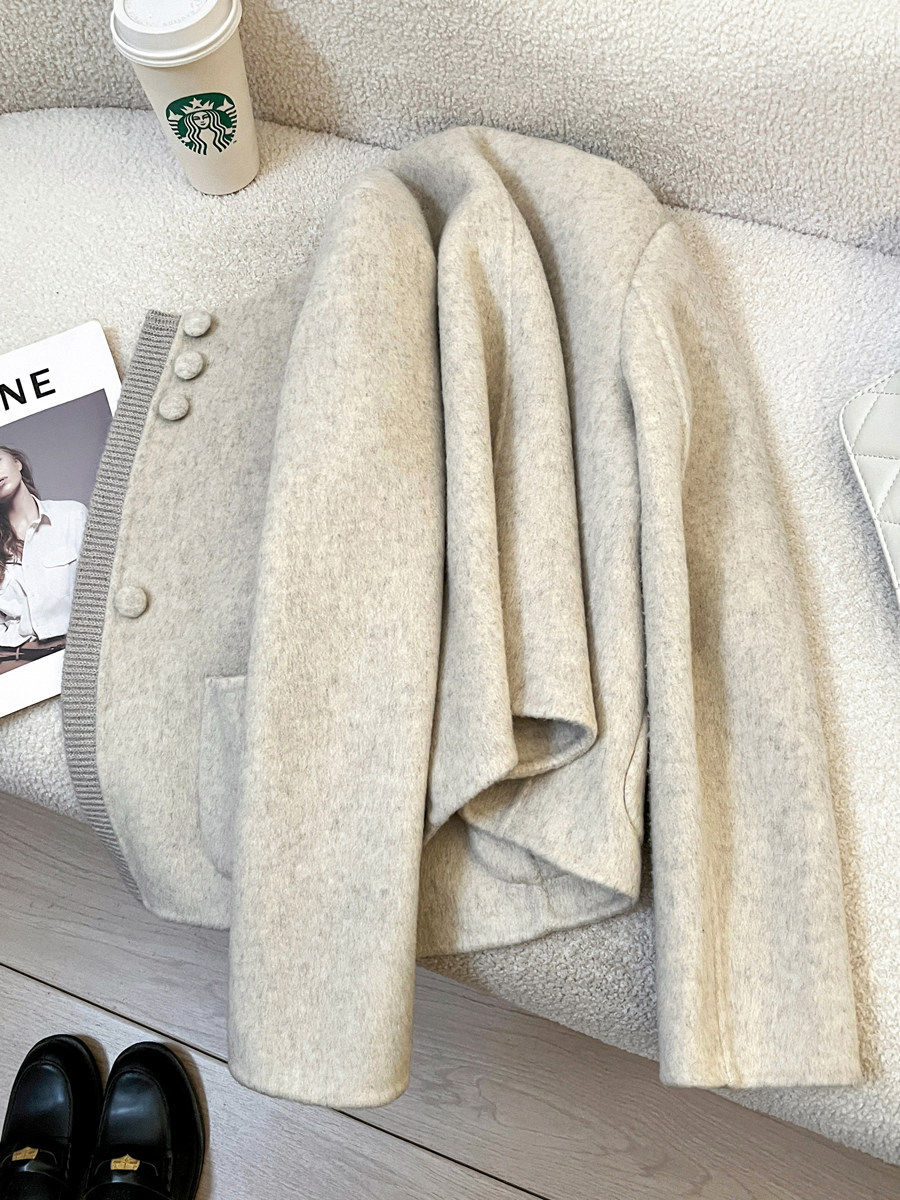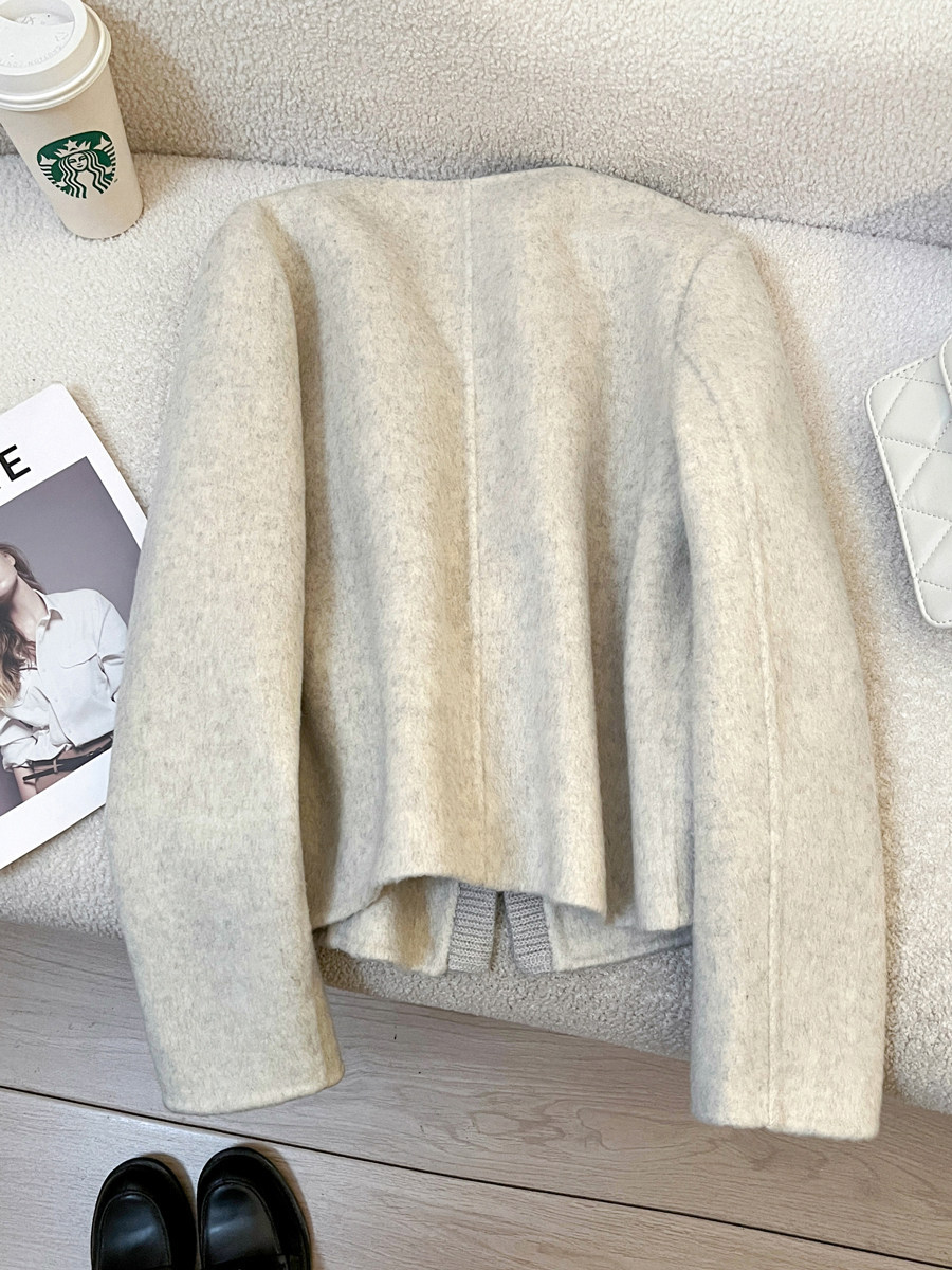 【清风外衣】韩系春季!2026新款燕麦色小香风羊毛双面呢短款外套女时尚高级上衣!