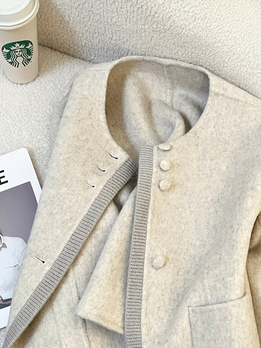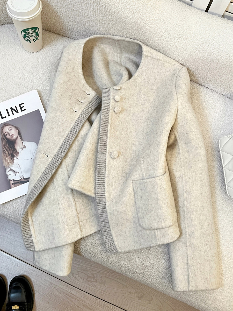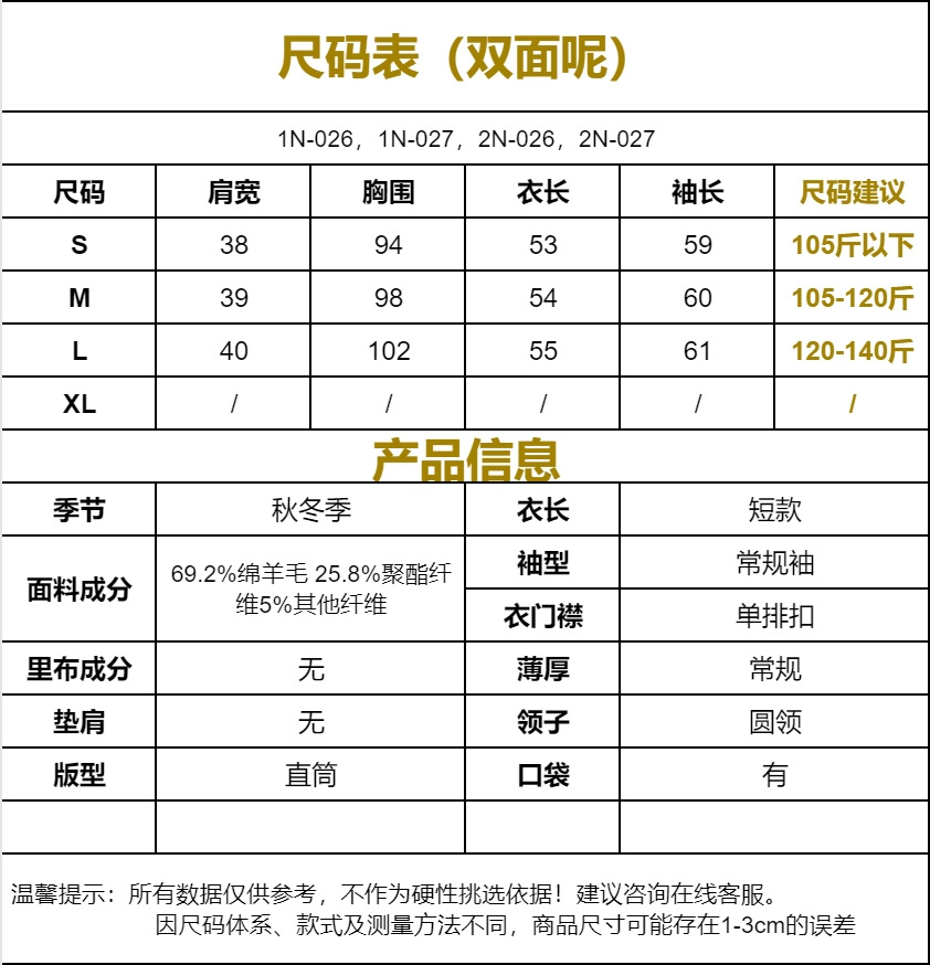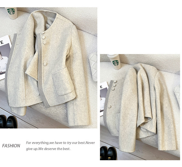 【清风外衣】韩系春季!2026新款燕麦色小香风羊毛双面呢短款外套女时尚高级上衣!