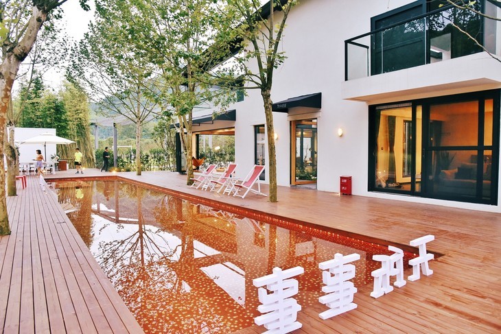 【彭州-309号院】5房小院,成都出发1.5h打卡苏梅岛同款红色泳池、地暖,临溪玩水,睡进龙门山·柒村的“海岛风别墅”WSSS