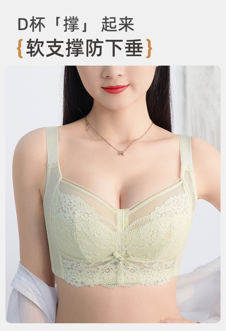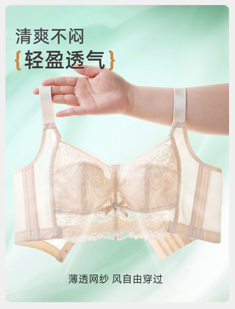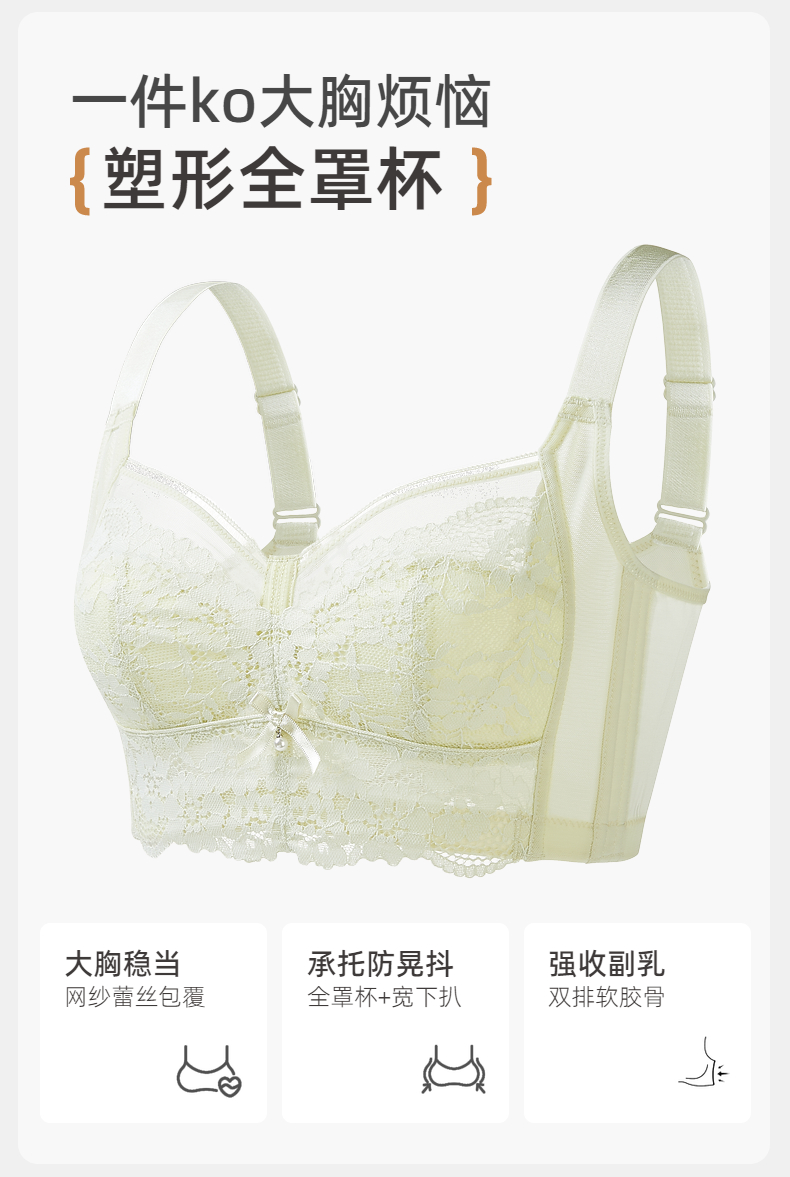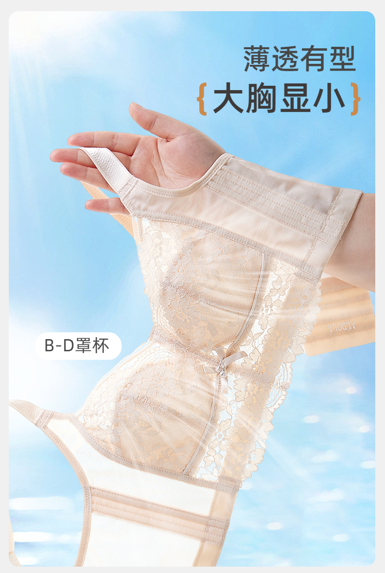 雅黛俪女士文胸大胸显小显瘦全罩杯调整型内衣性感蕾丝夏季薄款胸罩