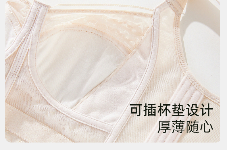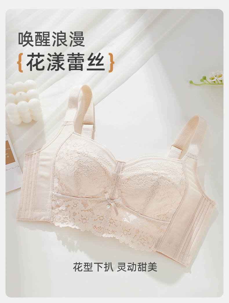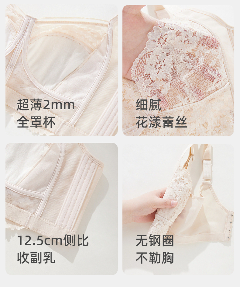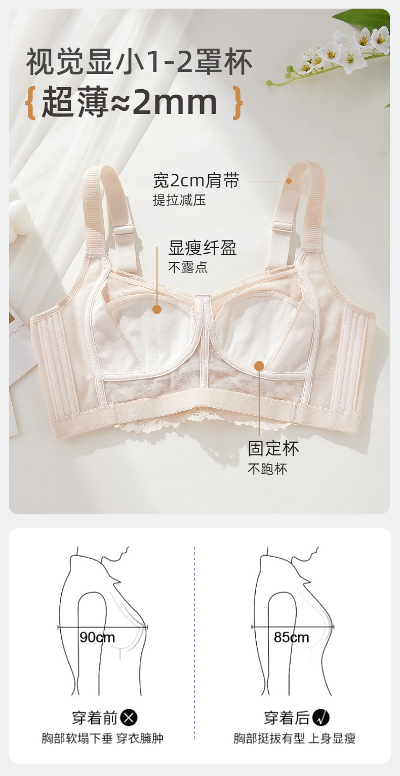 雅黛俪女士文胸大胸显小显瘦全罩杯调整型内衣性感蕾丝夏季薄款胸罩