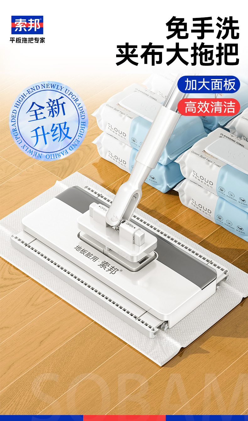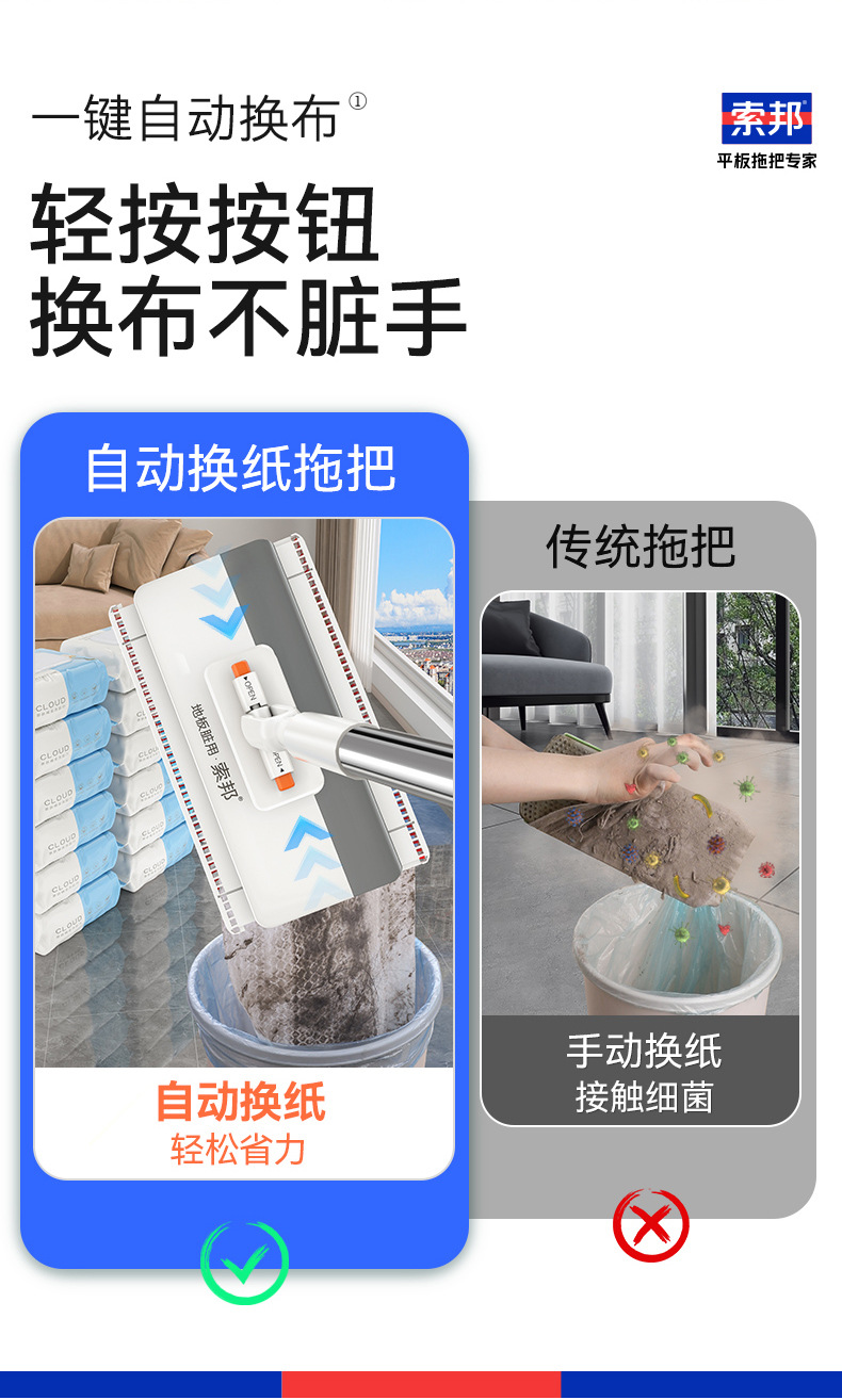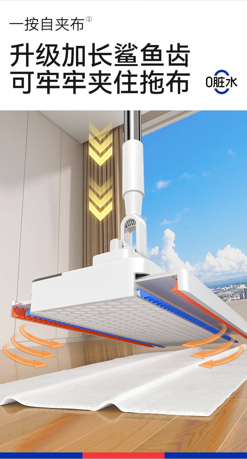 【全新升级❗️免手洗夹布拖把】升级加长鲨鱼齿,可牢牢夹住拖布,加大面板高效清洁,360°缝隙死角轻松深入,自动夹布伸缩免手洗多功能平板拖把QQ