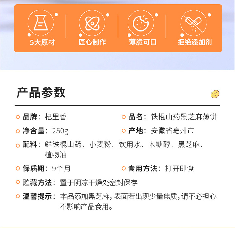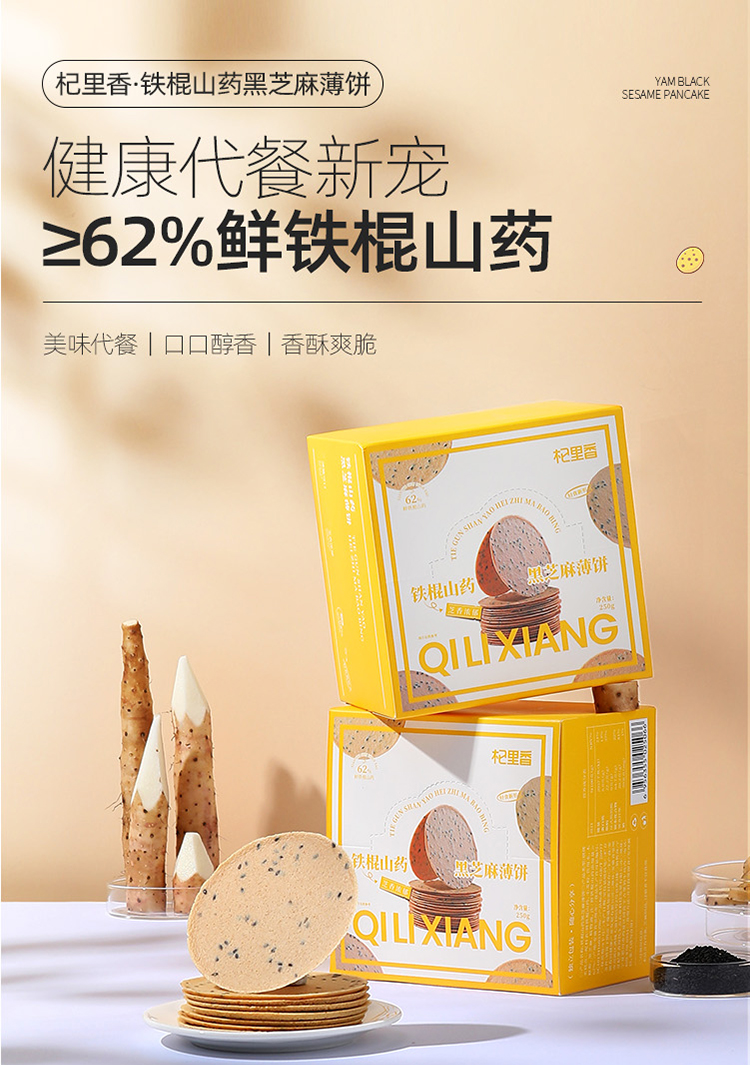 【冬季滋补】【杞里香铁棍山药黑芝麻薄片250g】 饼干买多盒更划算 >62%鲜铁棍山药 香脆好吃营养高 老少皆宜,学生党 上班族打 工人健康代餐!