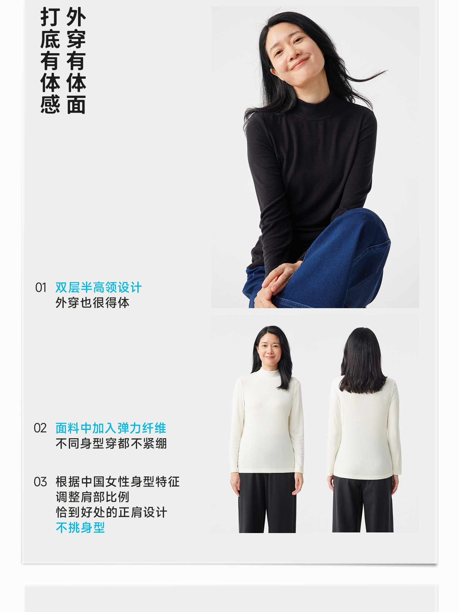 【秋Vol.4】幼岚「毛织保暖」半高领打底衫厚实亲肤保暖24秋新款女士成人T恤ZY