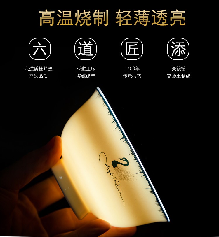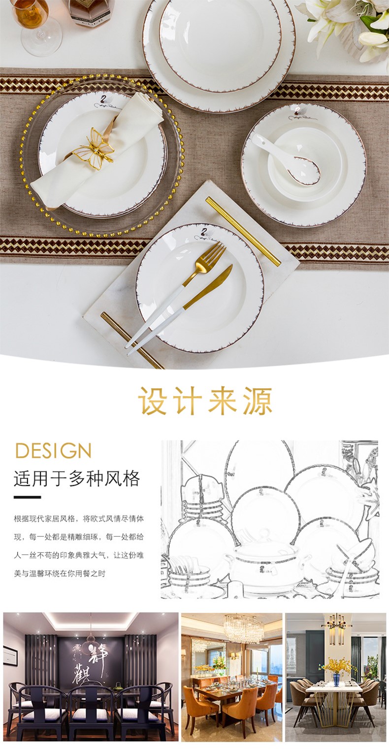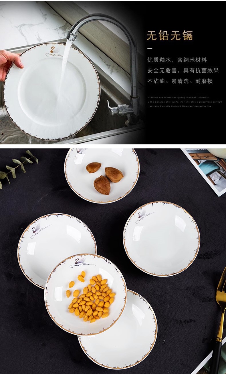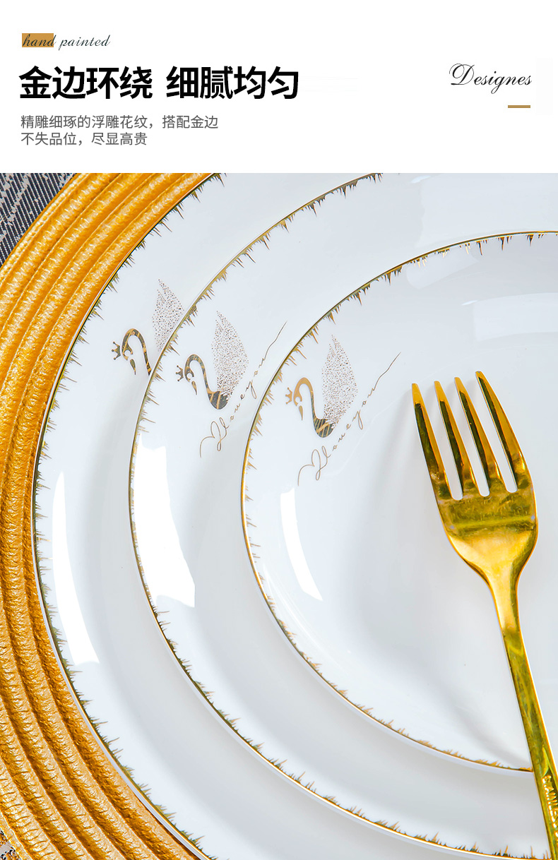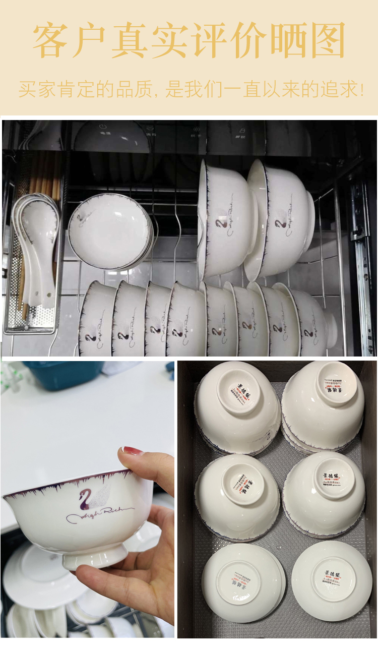 景德镇骨瓷餐具38件套-北欧风天鹅一号(38件套:九斗汤碗1;8英寸平盘2;8寸深盘4;高脚碗6;大勺1;小勺6;味碟6;合金筷子10;烟灰缸1;牙签筒1)