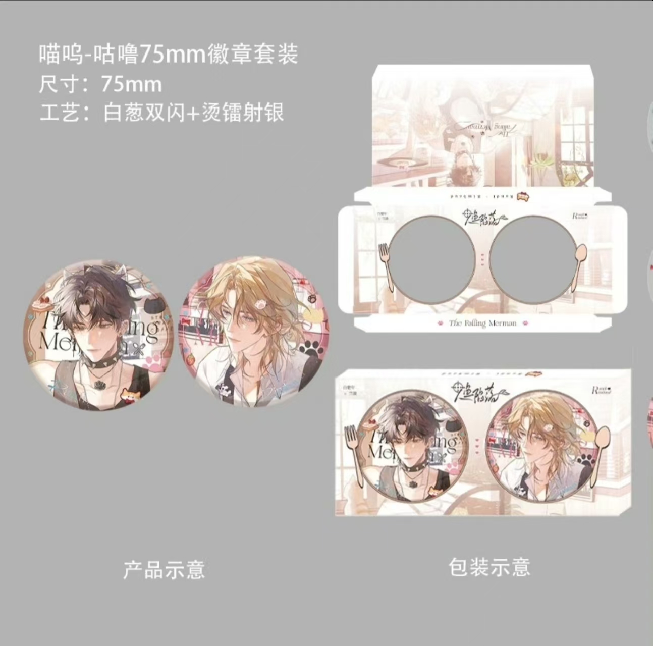 人鱼陷落 喵呜×咕噜 75mm 吧唧 徽章套组 国谷 耽美