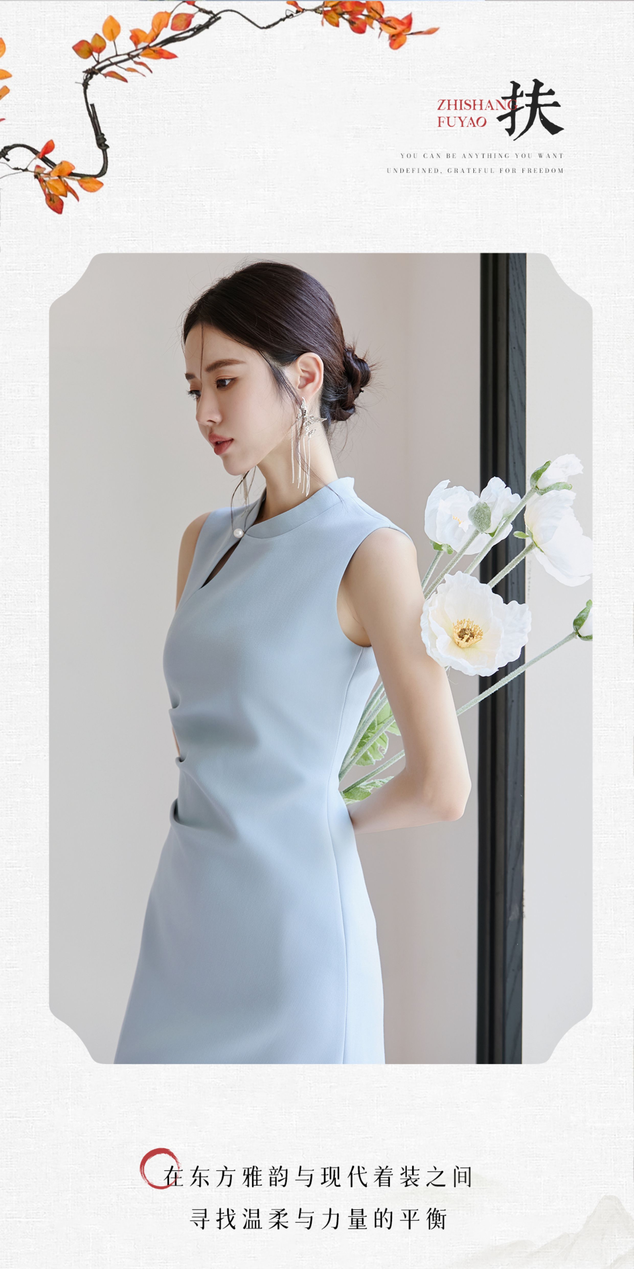 FUYAO扶摇 新中式旗袍裙女2025新款国风无袖连衣裙收腰显瘦裙子