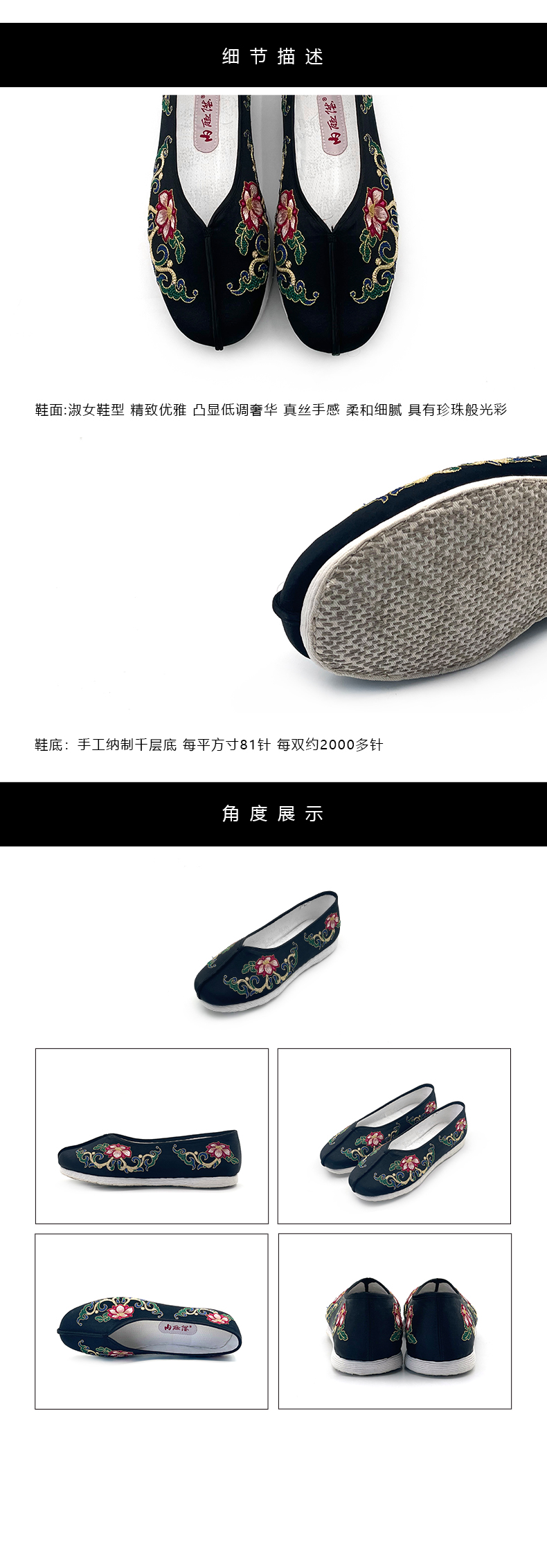 内联升女鞋单鞋千层底织锦盘金牡丹绣花淑女鞋8677A