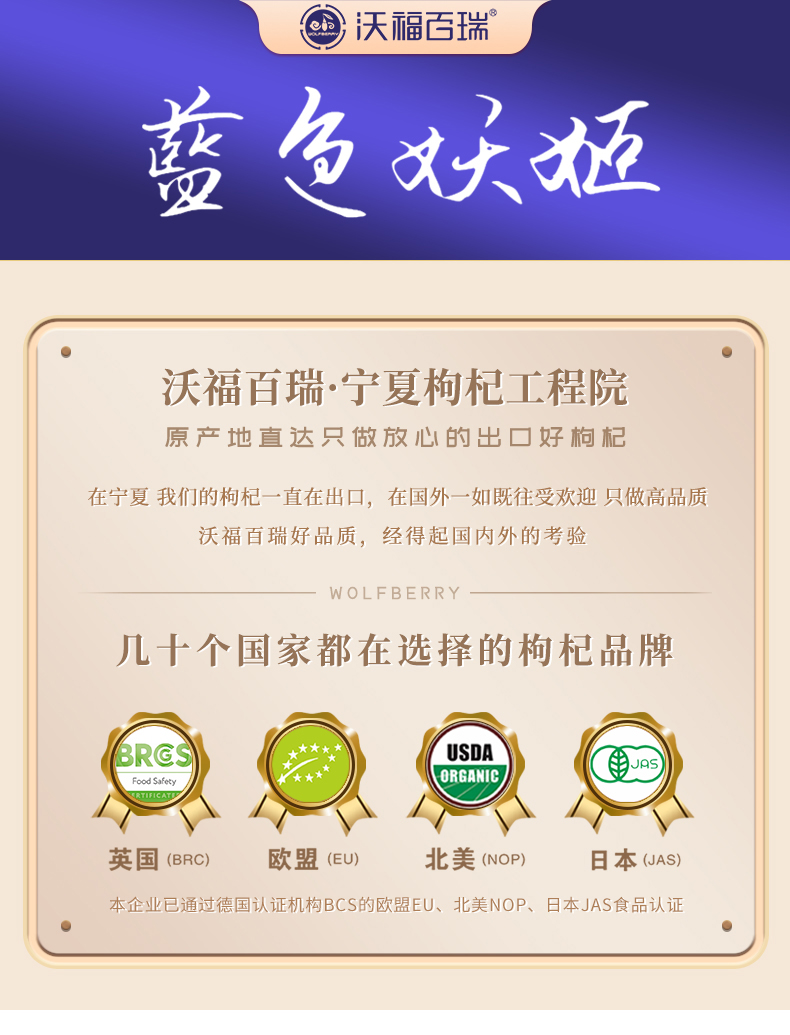 宁夏沃福百瑞是有机枸杞生产专家,枸杞养生专家。国际品牌枸杞产品的缔造者。