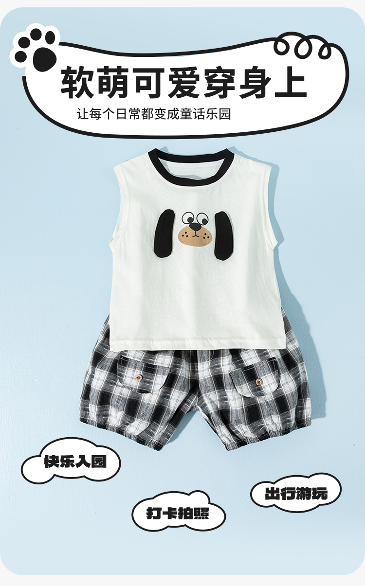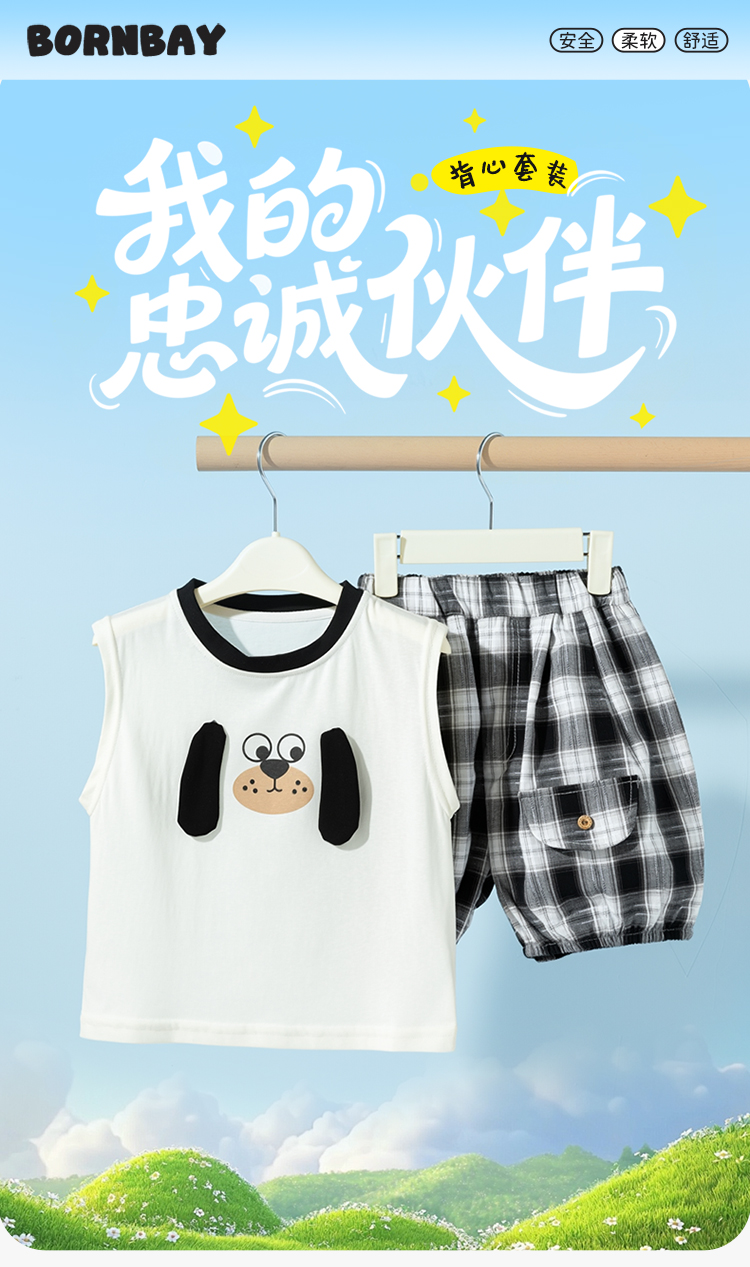 贝贝怡童装透气舒适男童背心套装ZB2ET078
