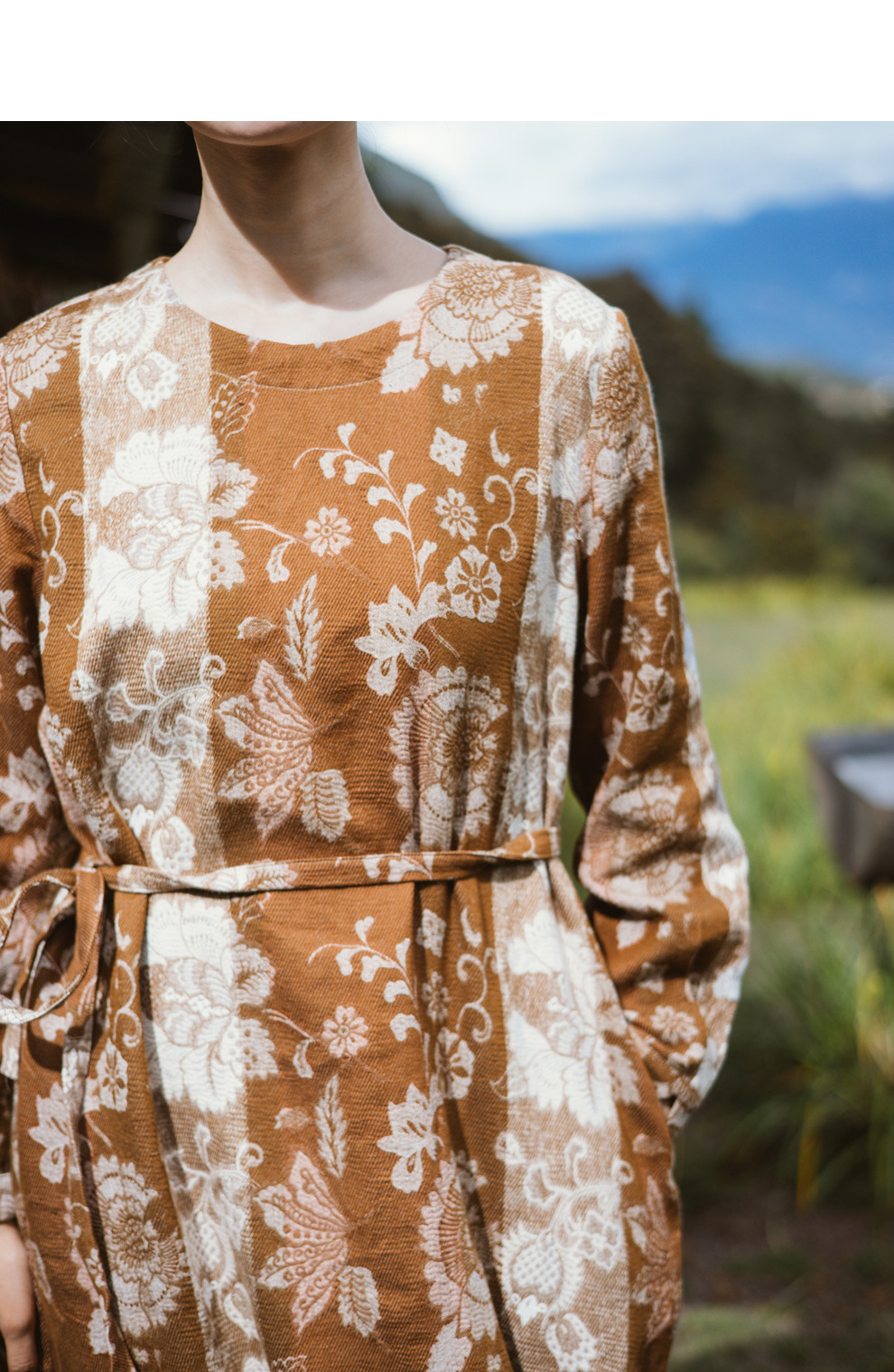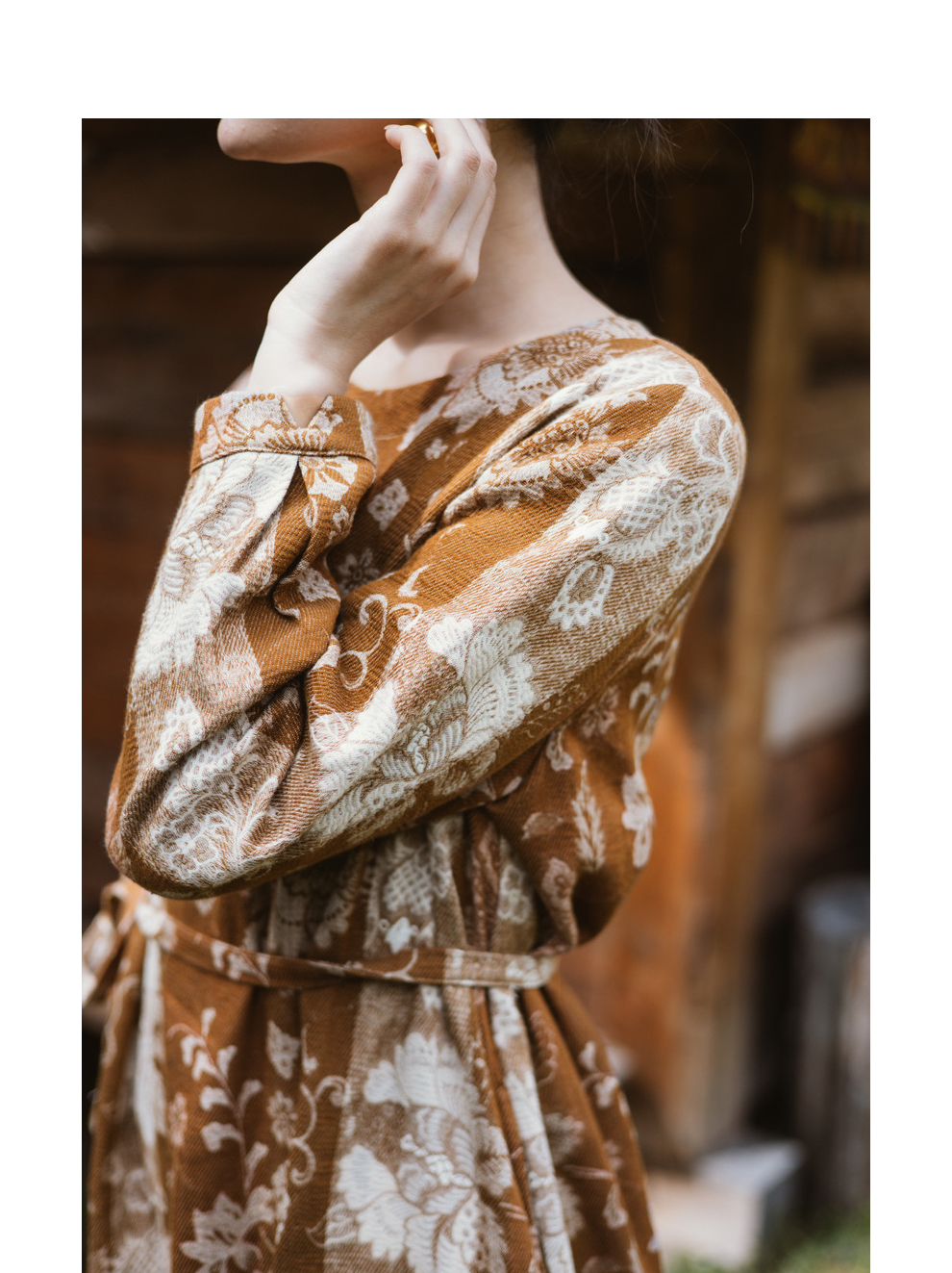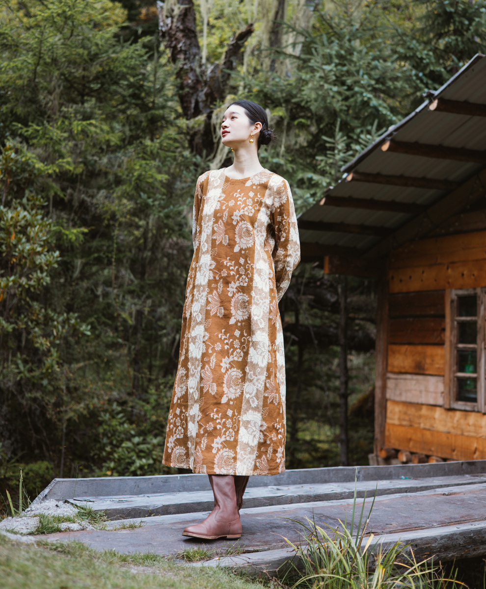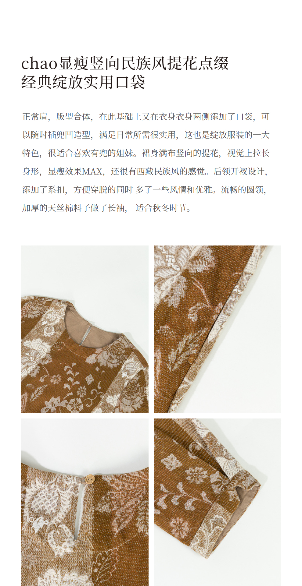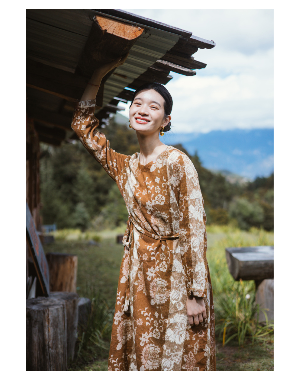 绽放旅行女装793朵/秋冬*加厚棉天丝民族风提花圆领长袖连衣裙