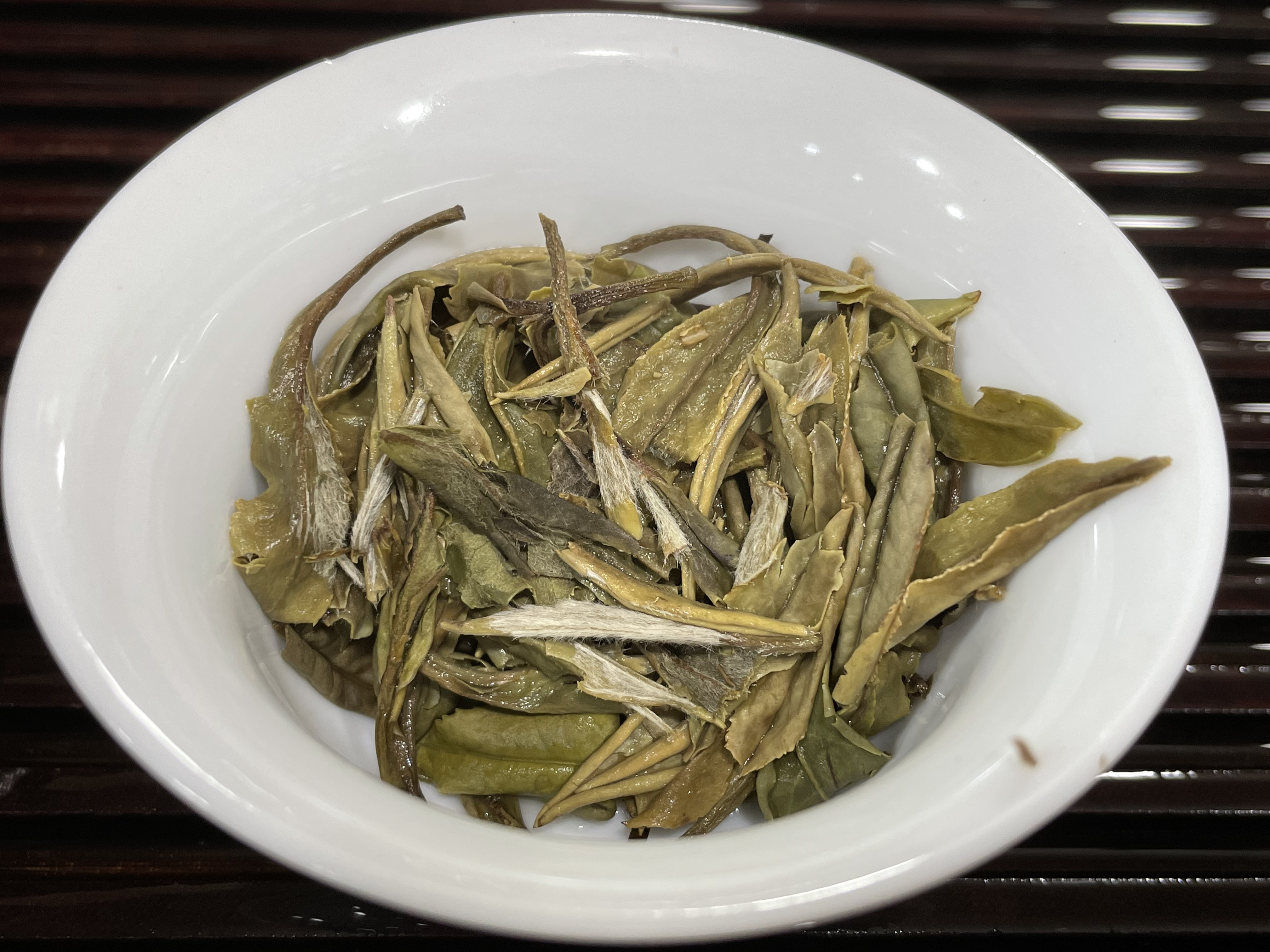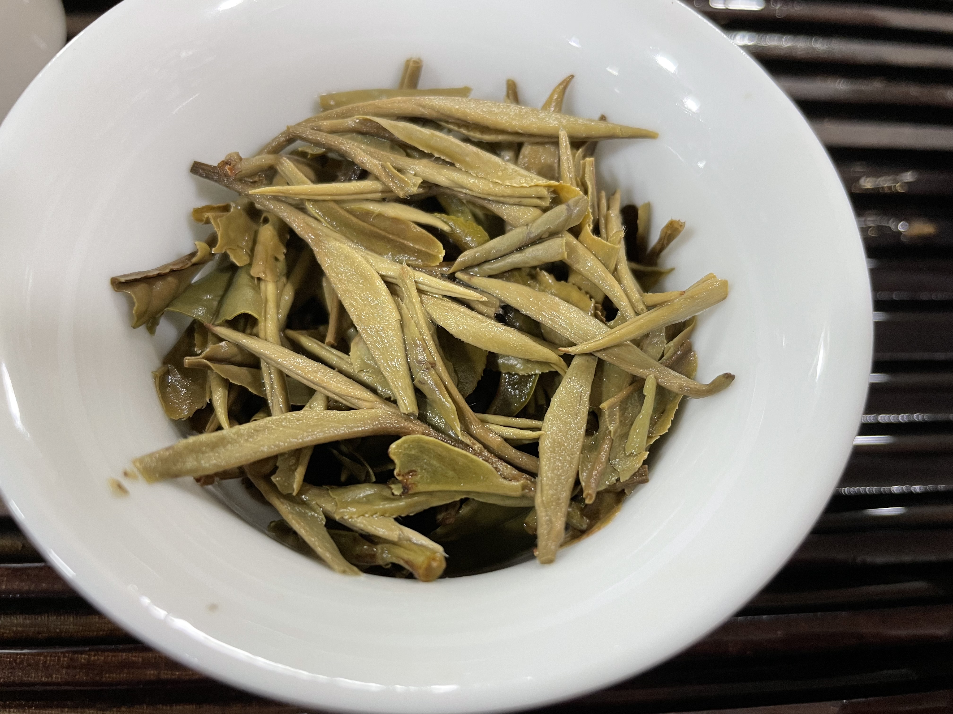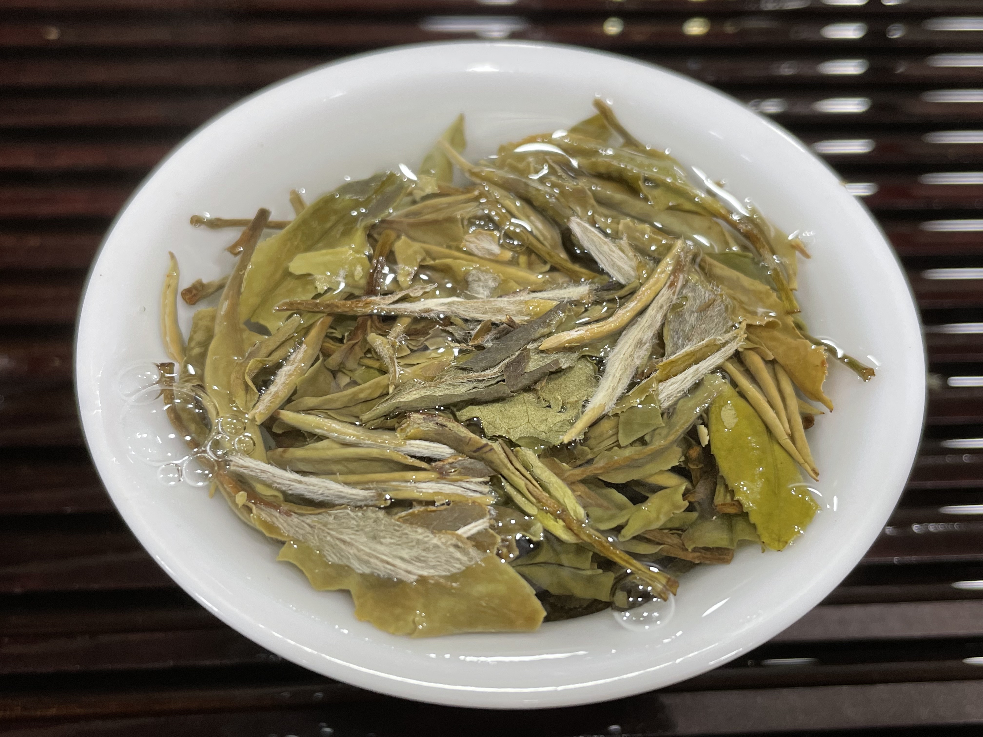 (泡到最后,芽叶完全吸水后,可以清晰看到等级很高,芽头很肥壮)