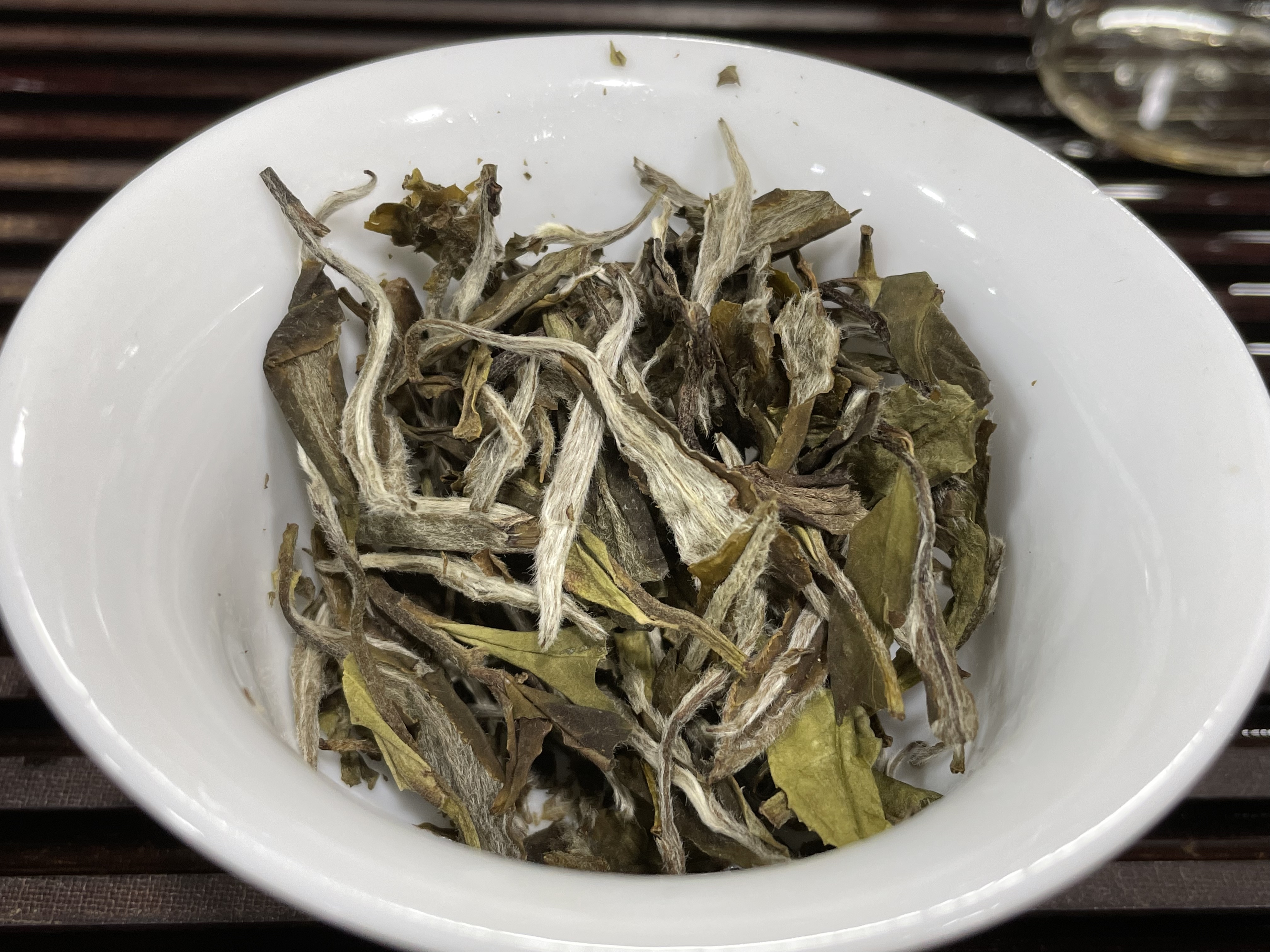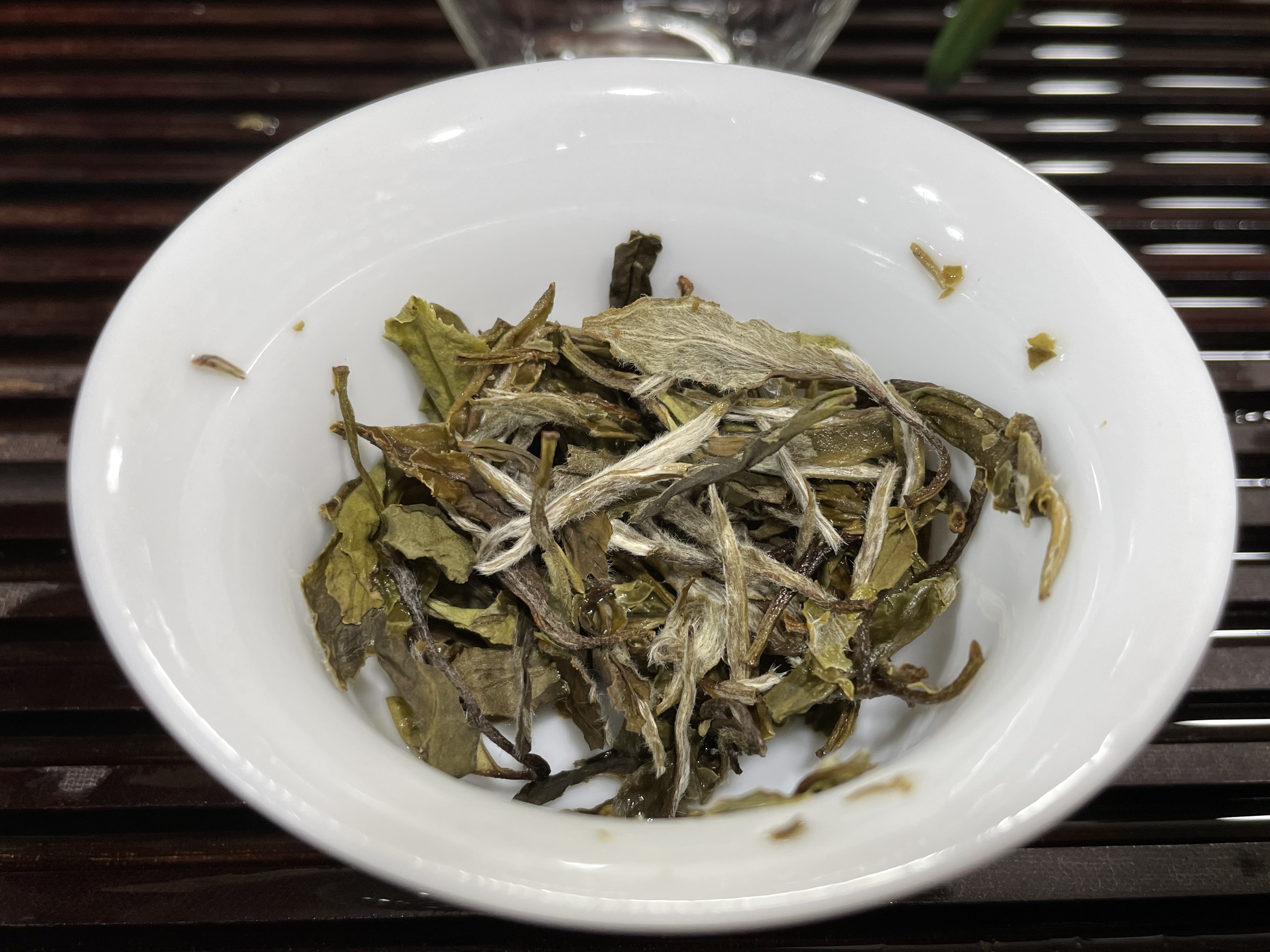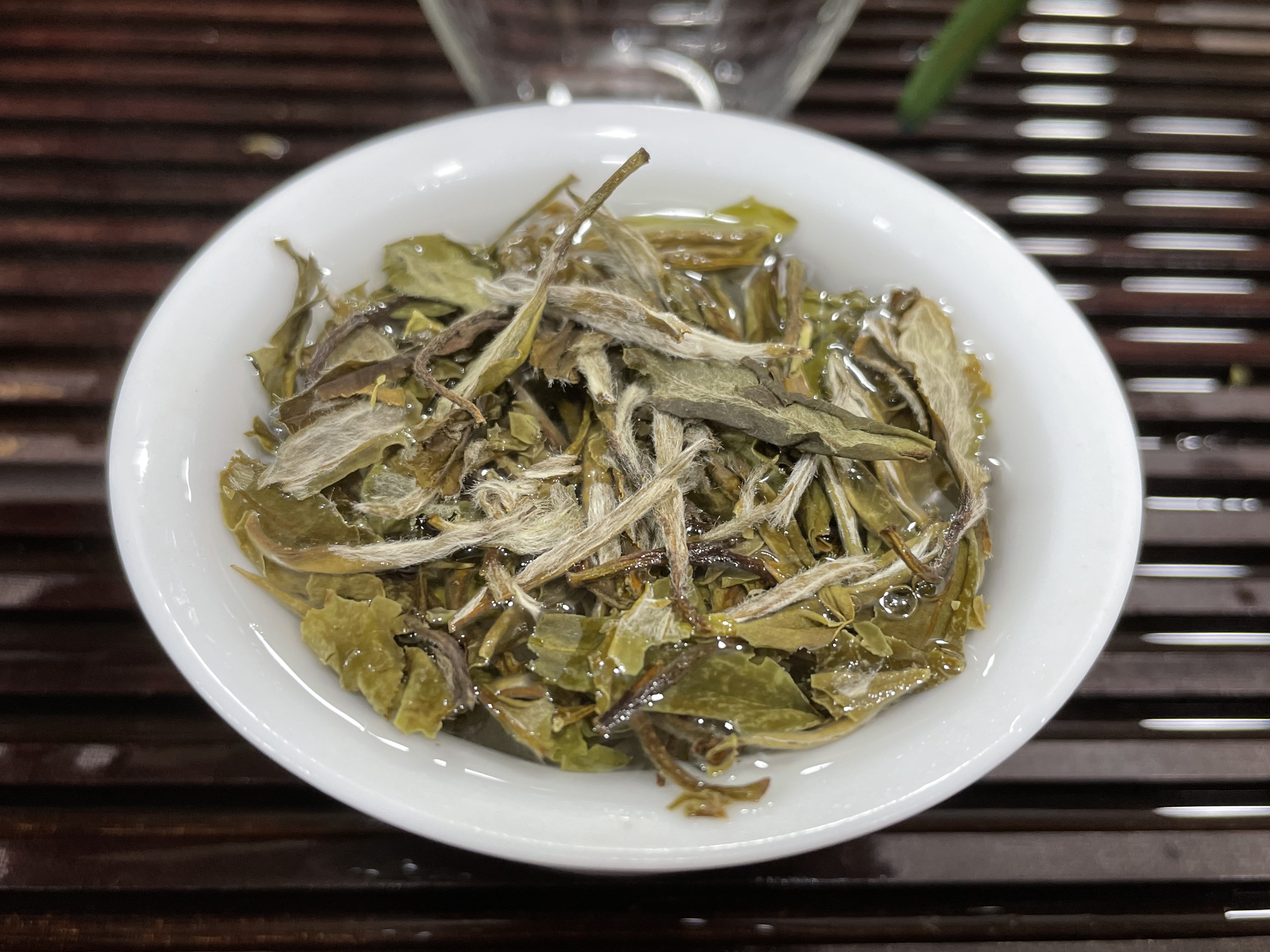 (泡到最后,芽叶完全吸水后,可以清晰看到等级很高,芽头很肥壮)