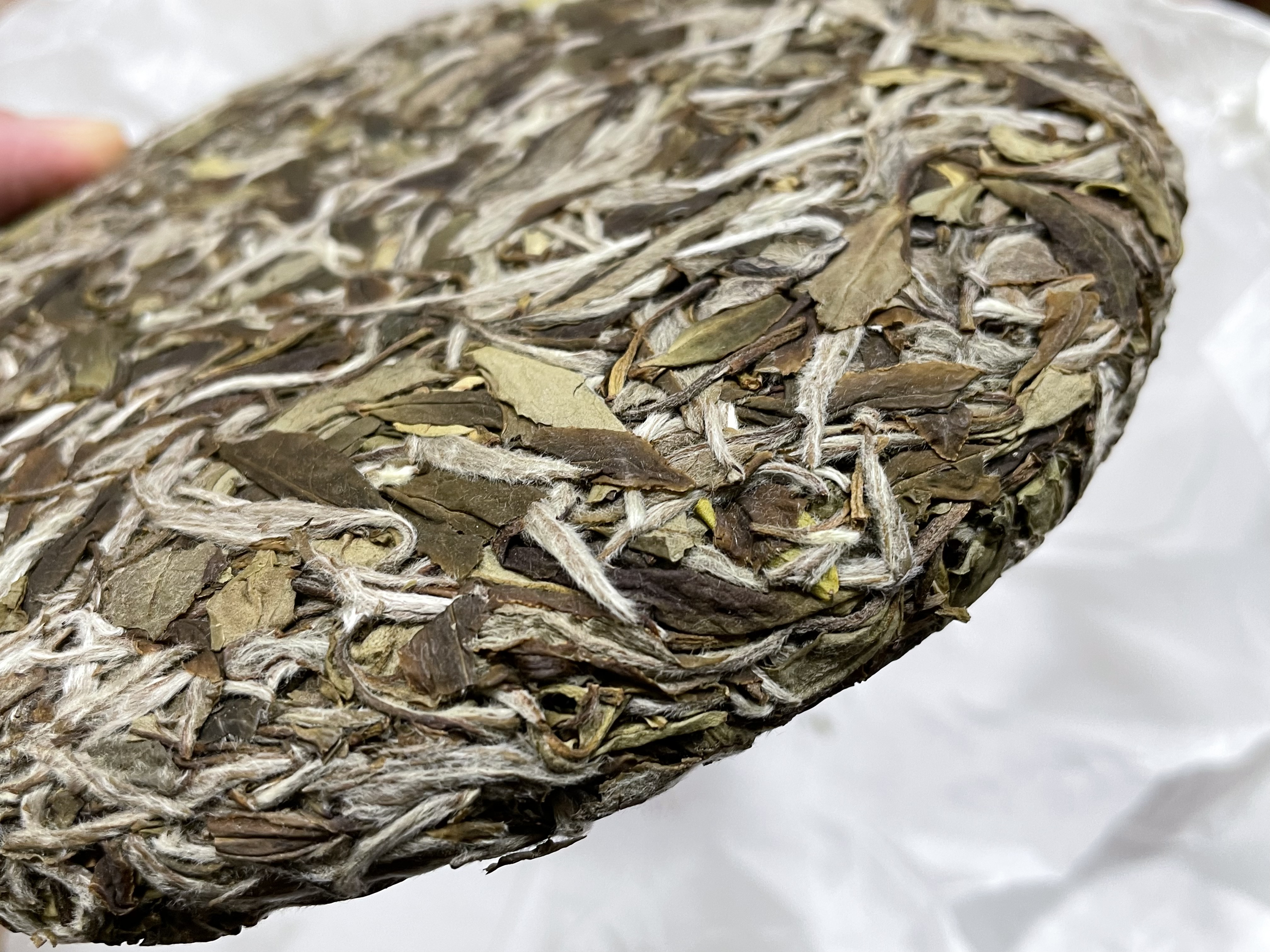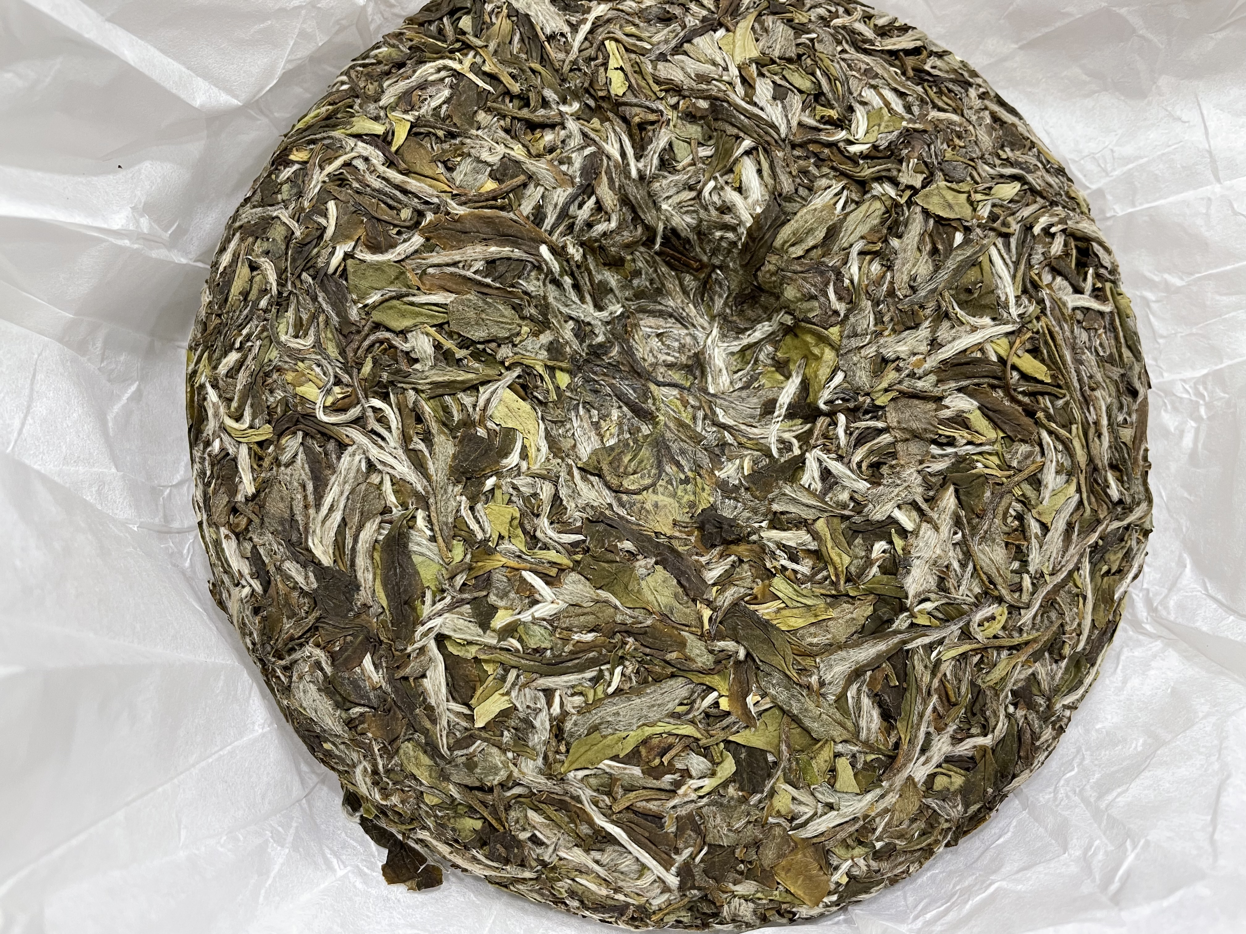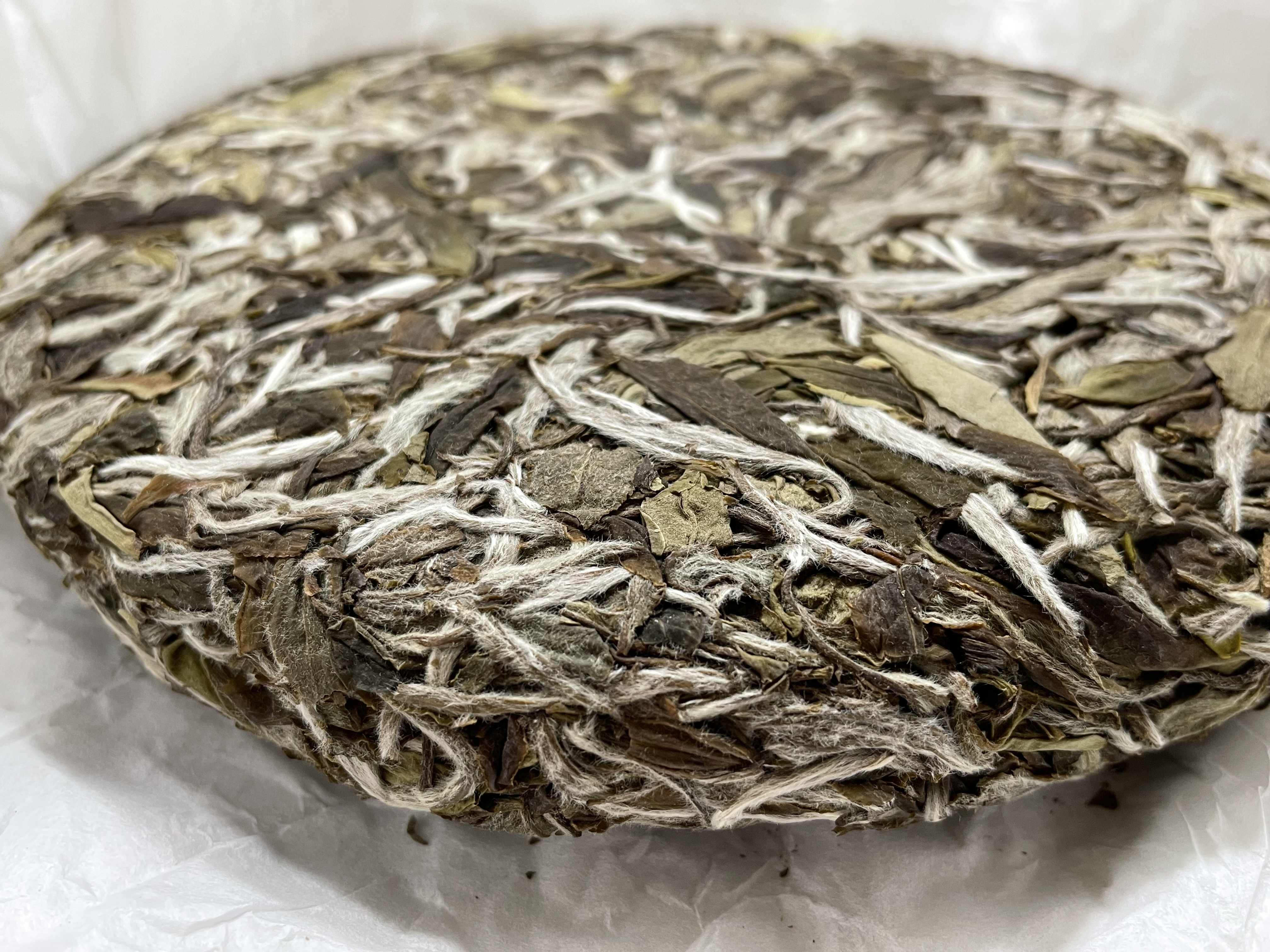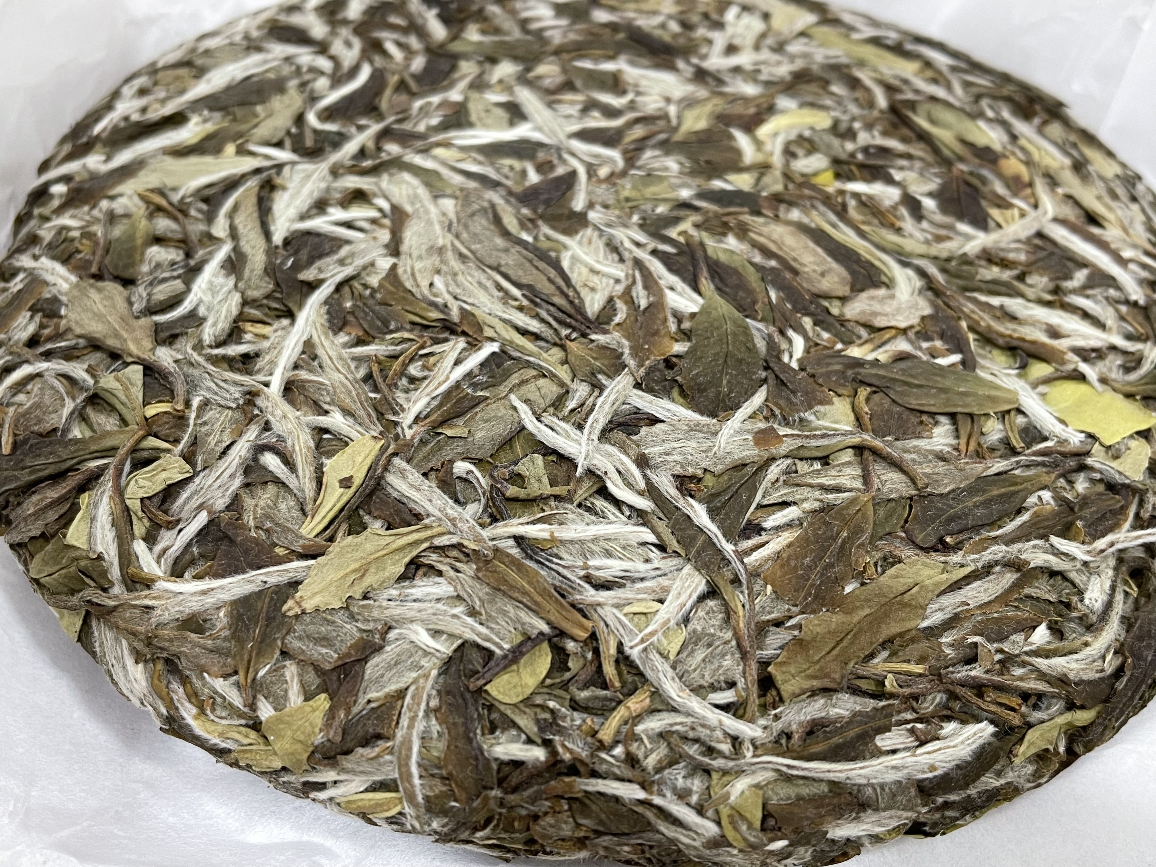 茶饼背面,芽头满满、茶毫显白。