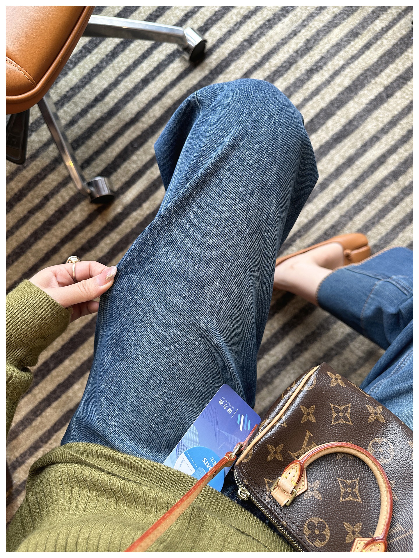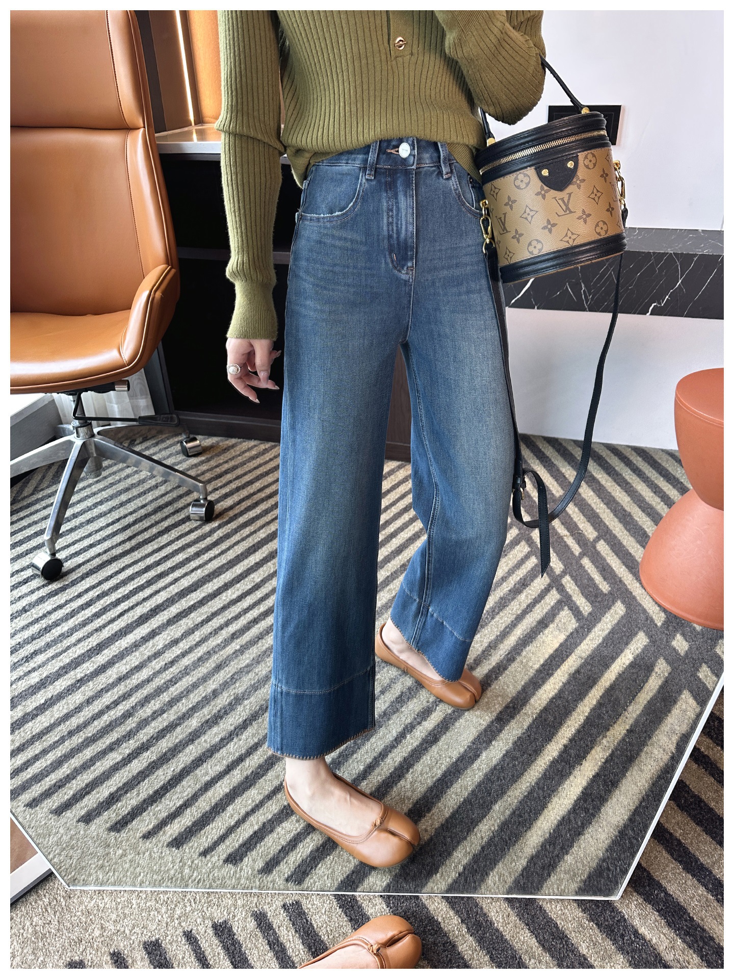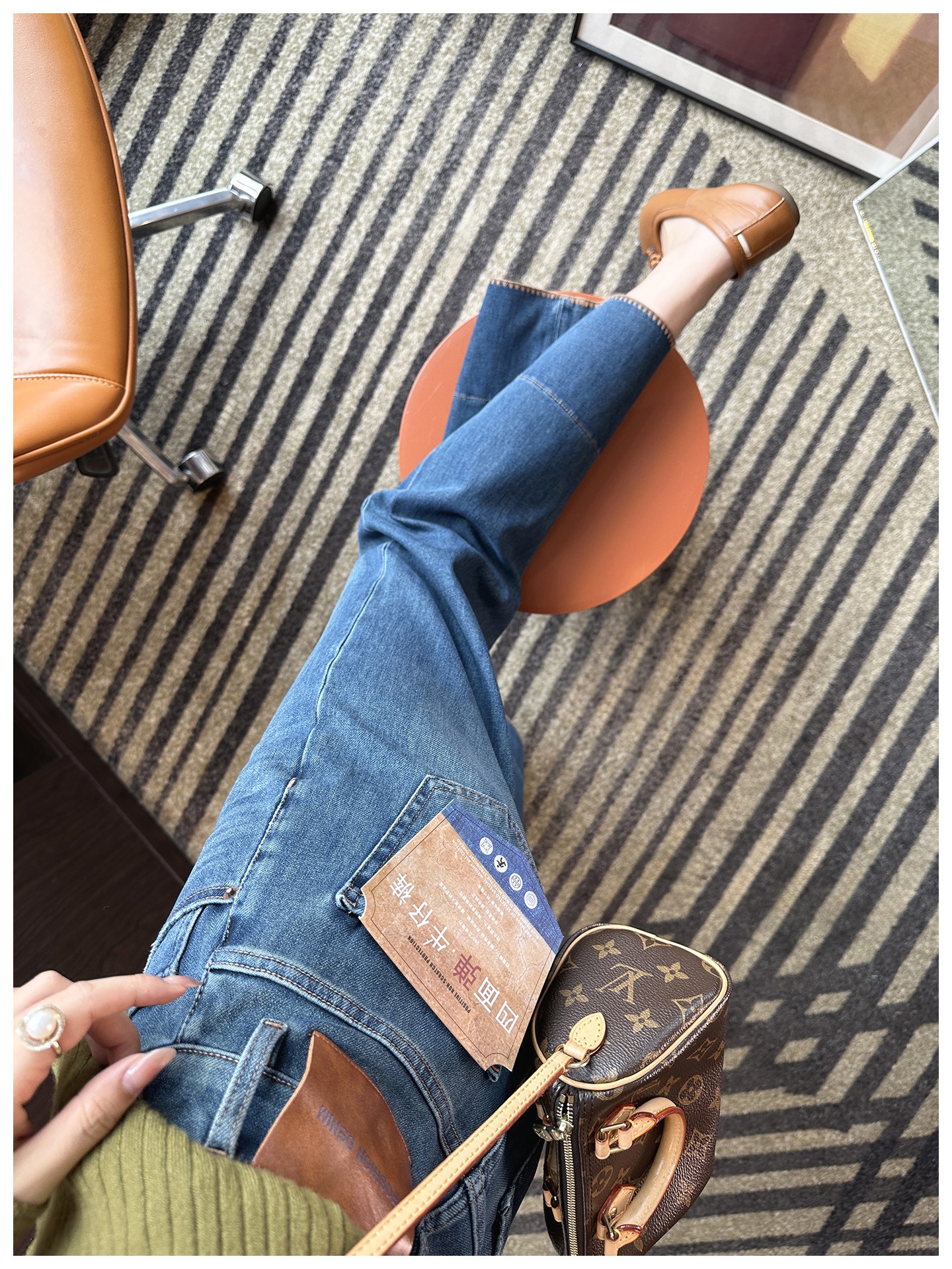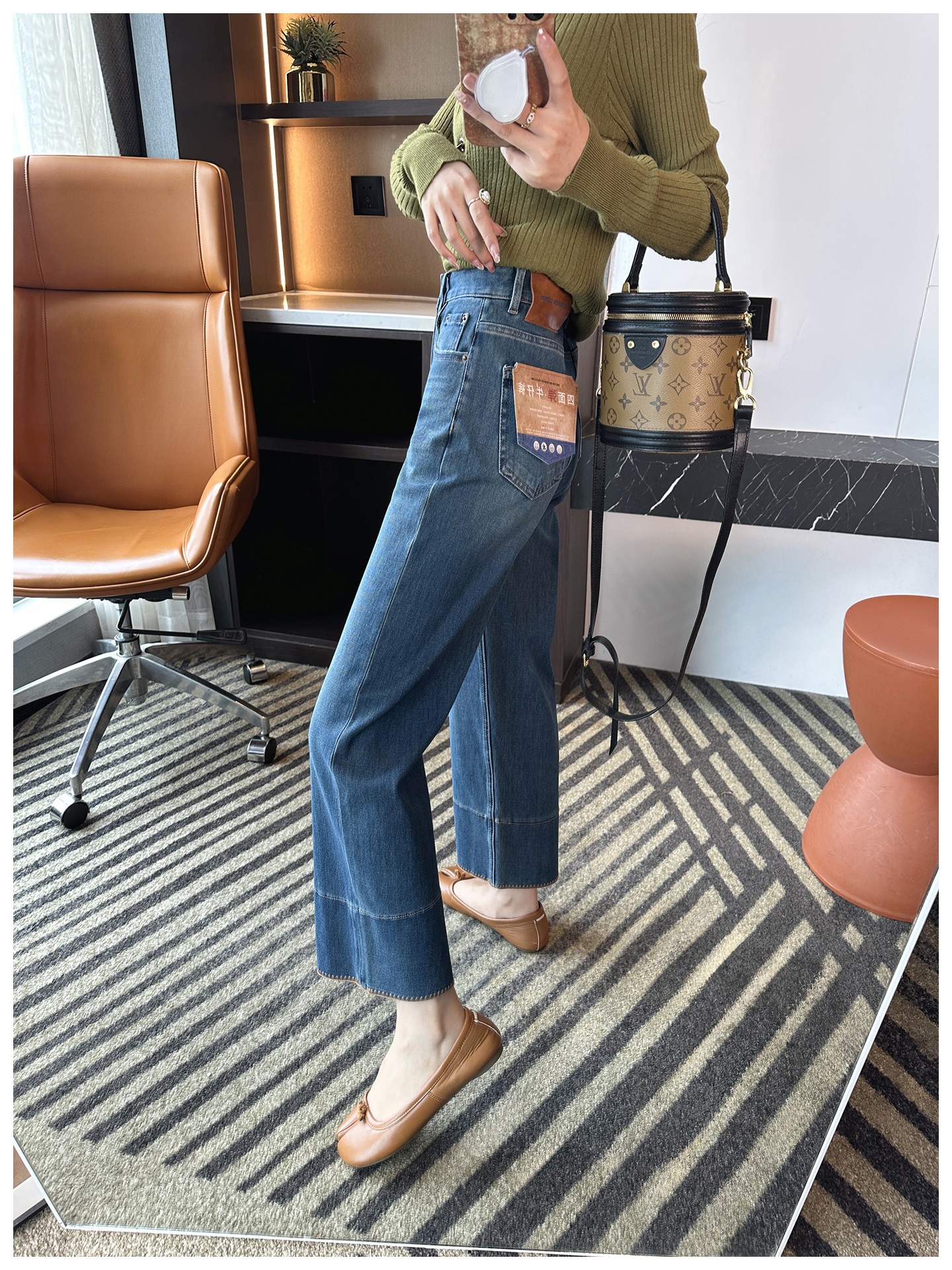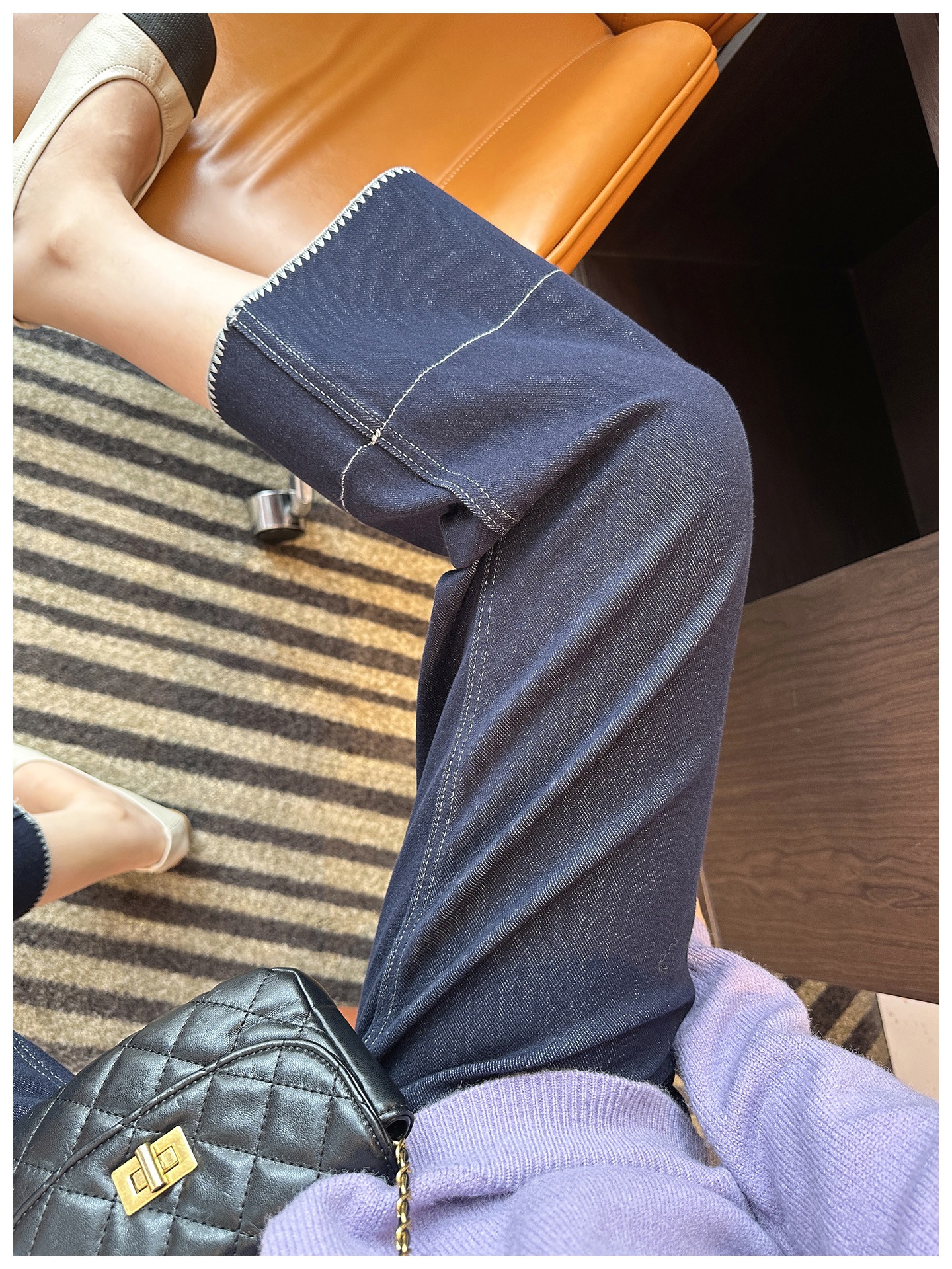 版型是那种经典直筒,从大腿到裤脚都宽松有度