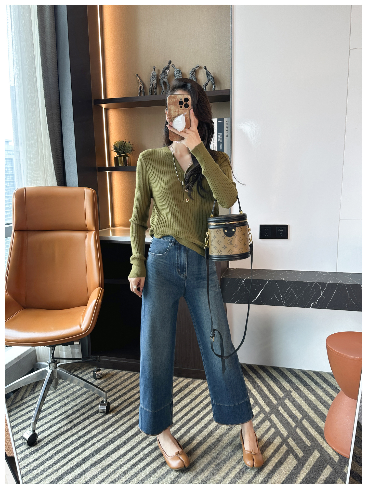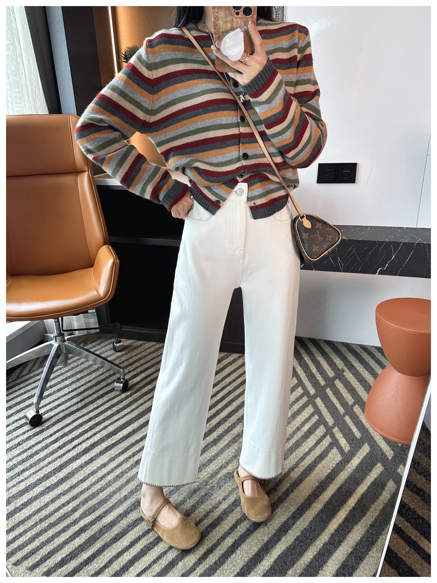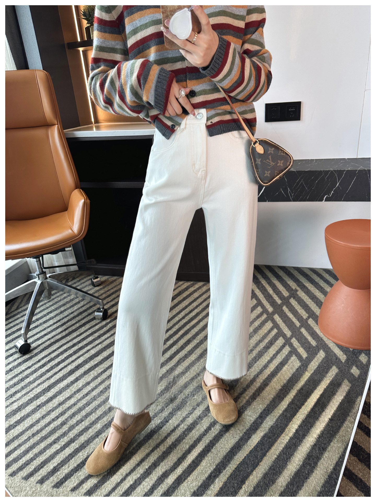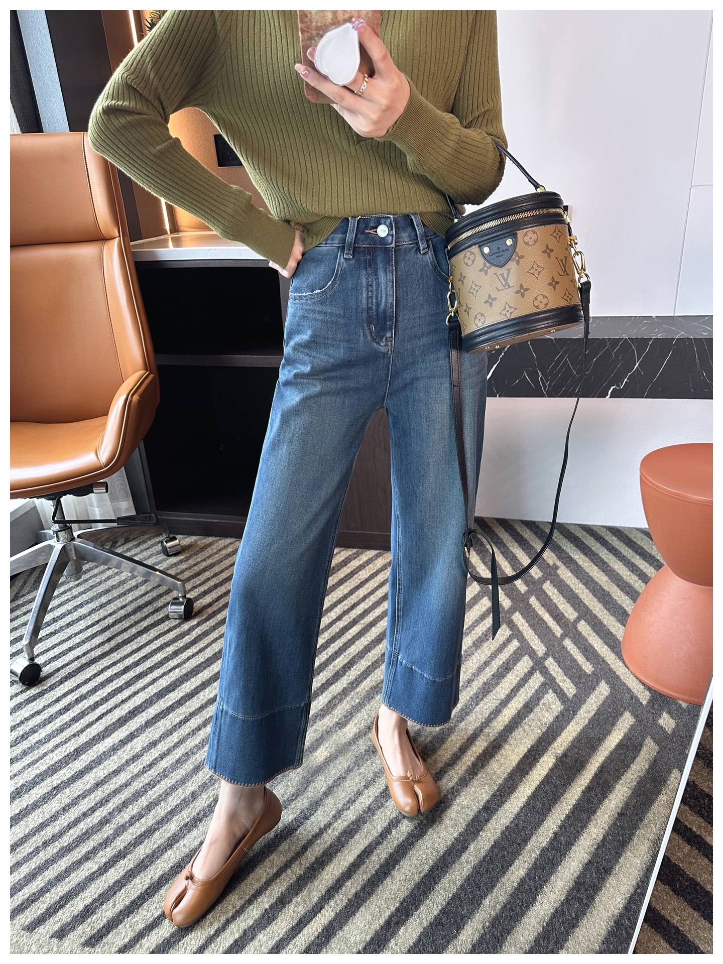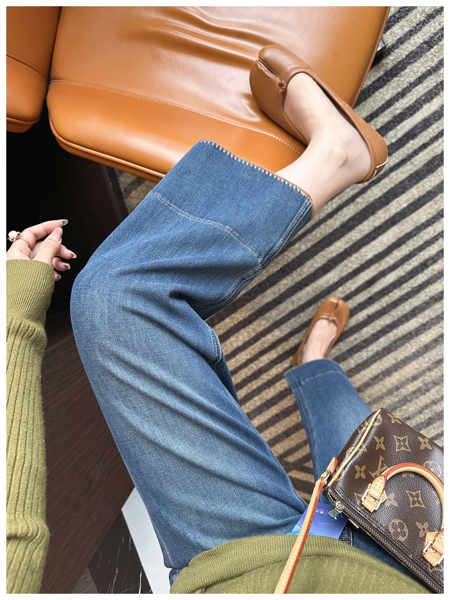 版型是那种经典直筒,从大腿到裤脚都宽松有度