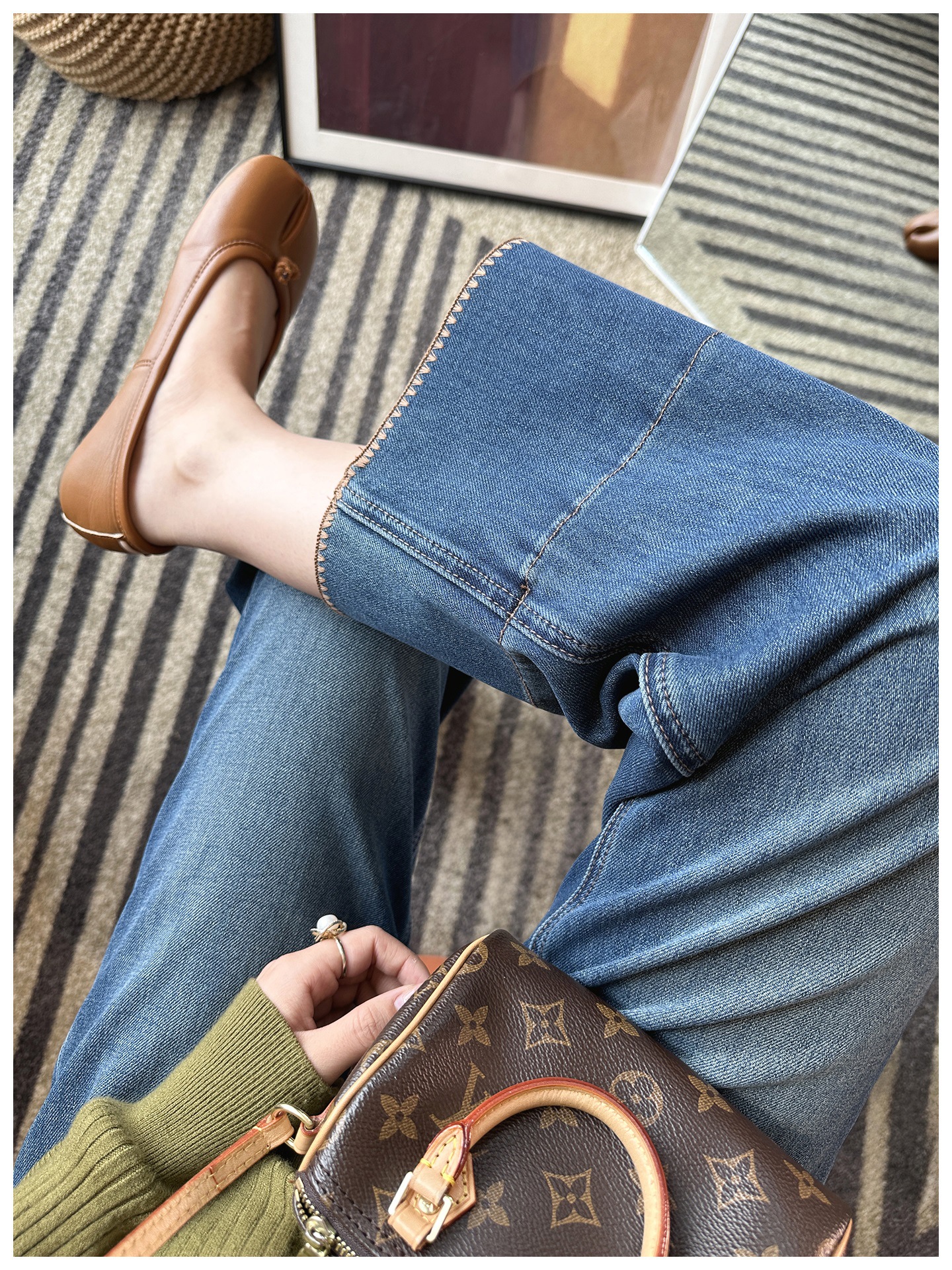 这条九分花边直筒牛仔裤真的长在我审美点上了