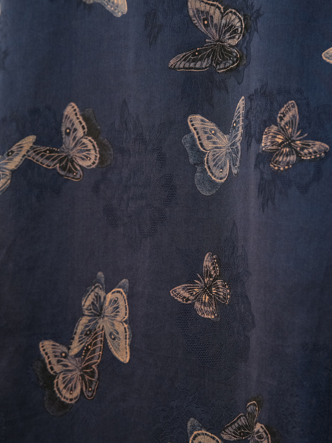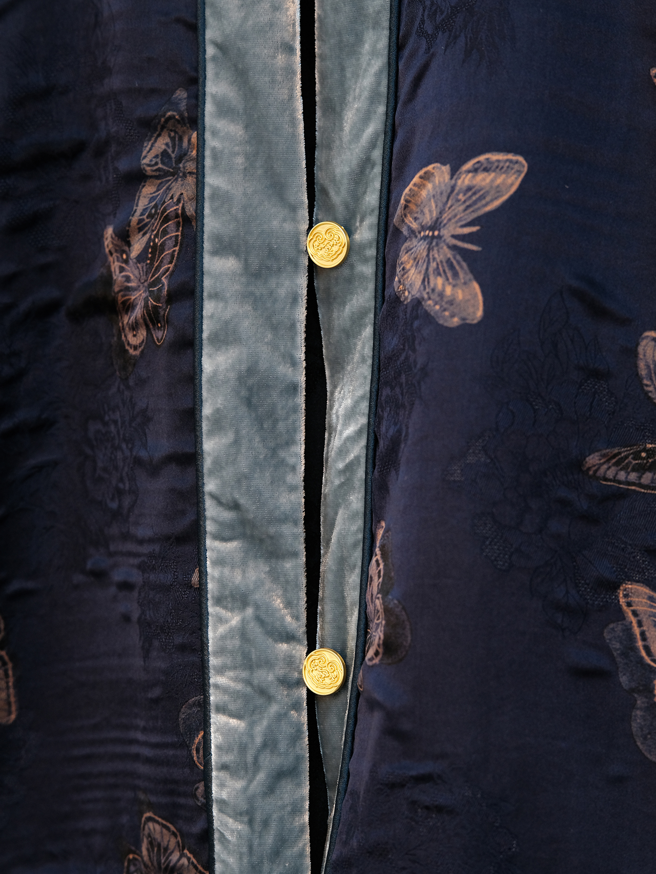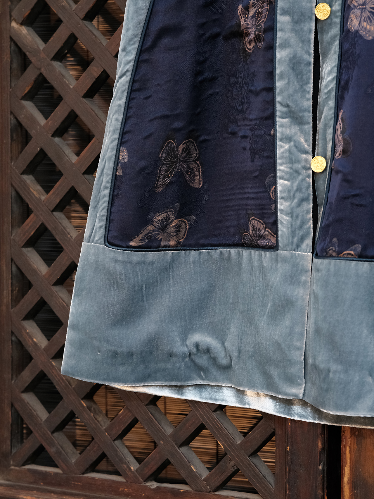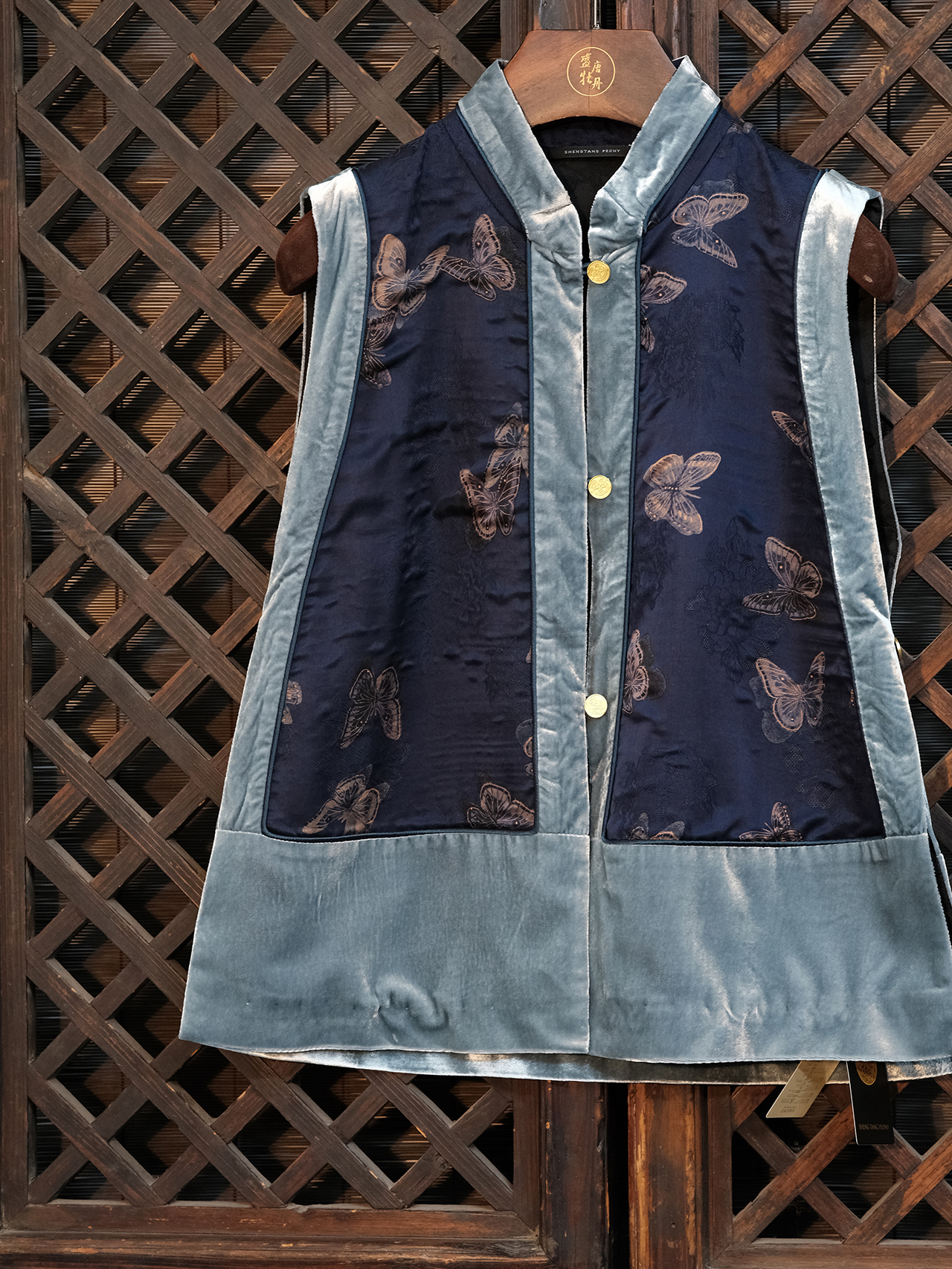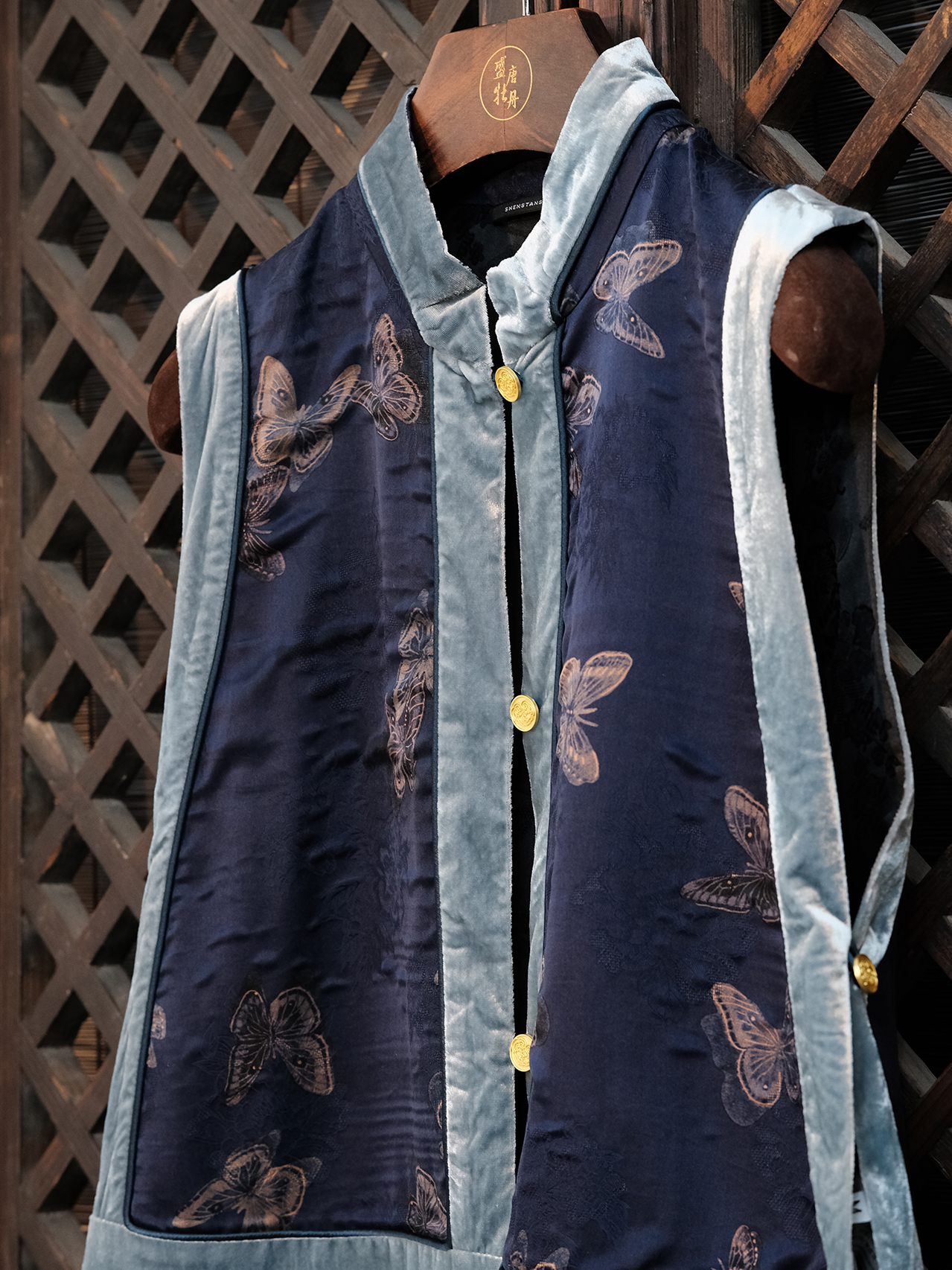 盛唐牡丹 |蝴蝶纹香云纱配丝绒马甲