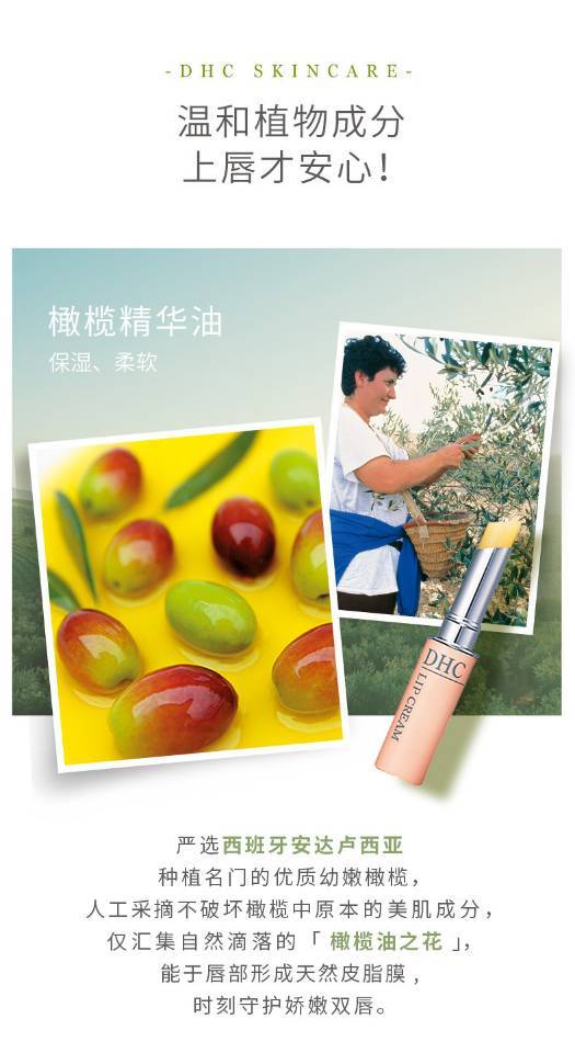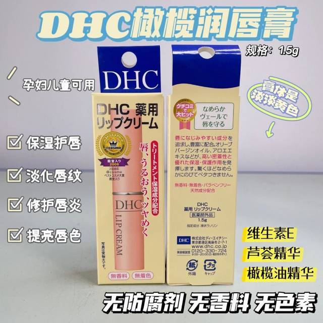 日本DHC唇膏女保湿滋润补水去死皮淡化唇纹防干裂橄榄护唇膏1.5g/支
