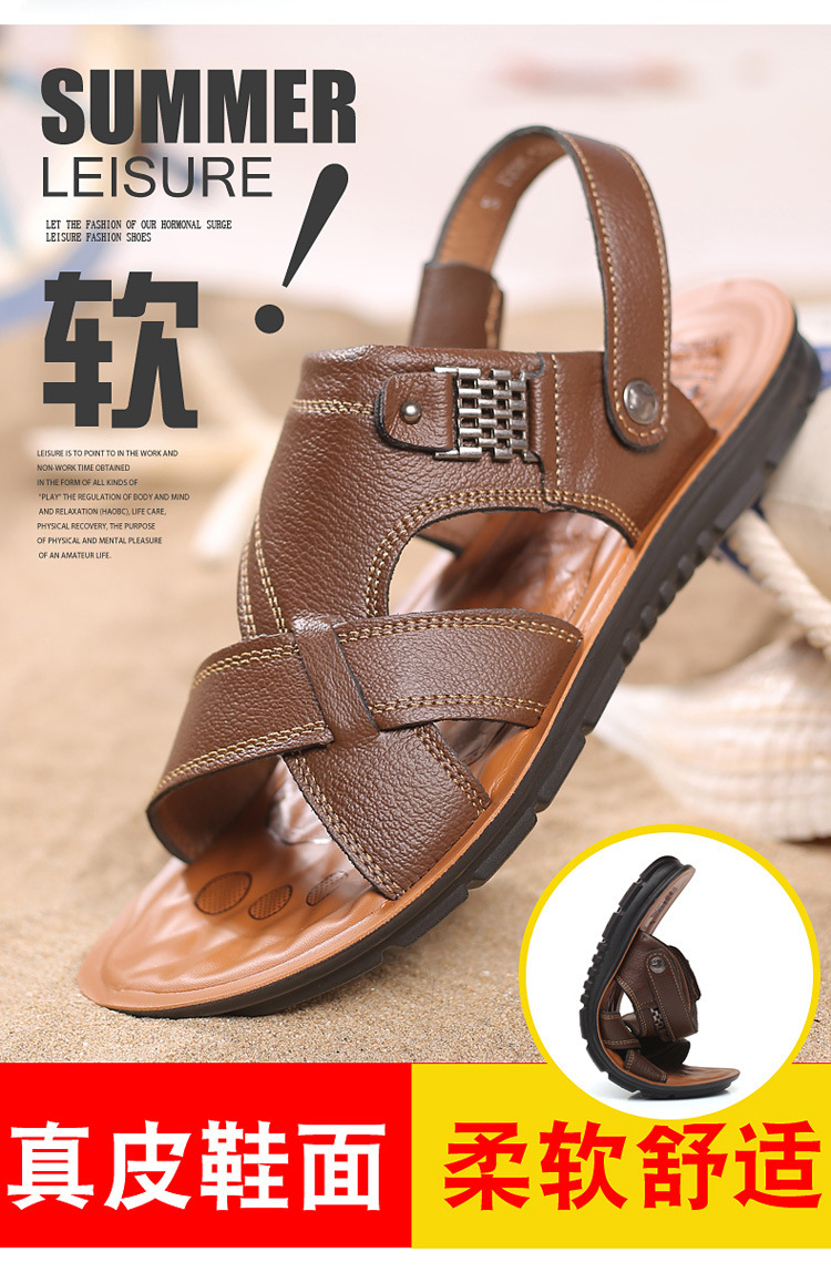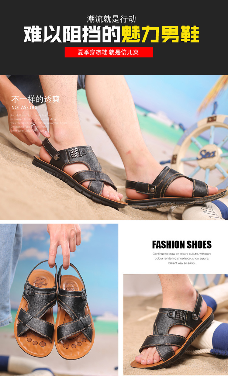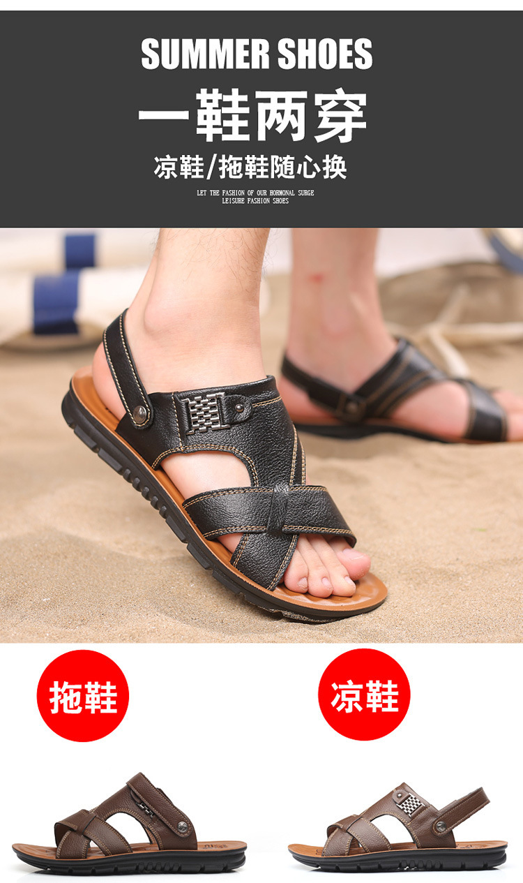 【服饰鞋包】夏季男士凉鞋休闲防滑沙滩鞋男头层牛皮拖鞋