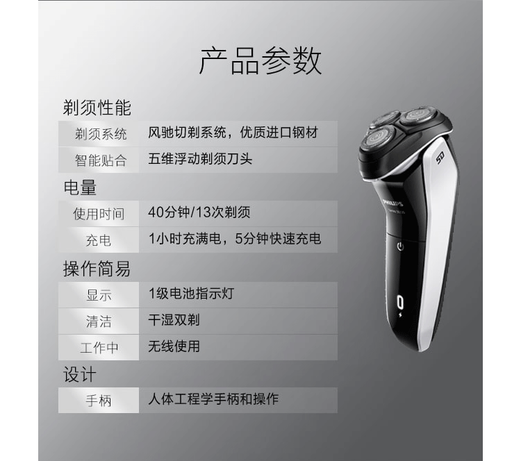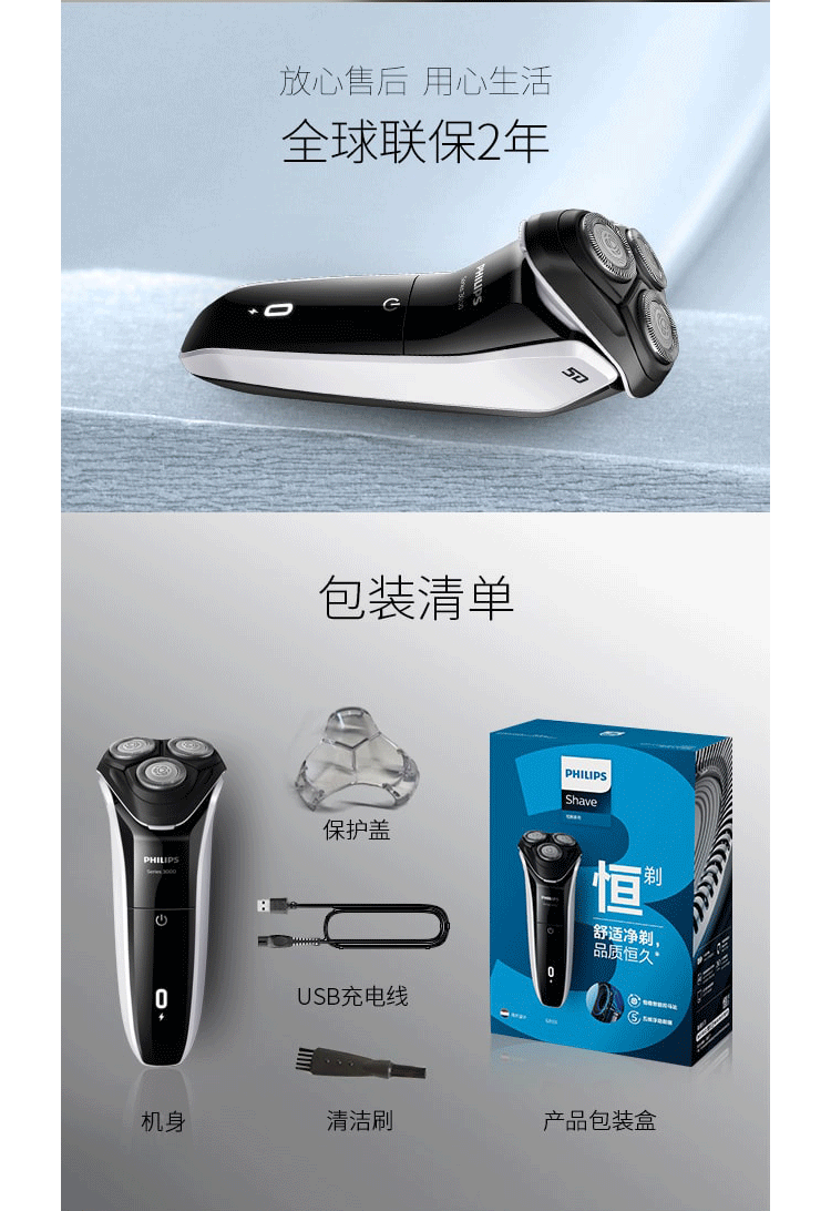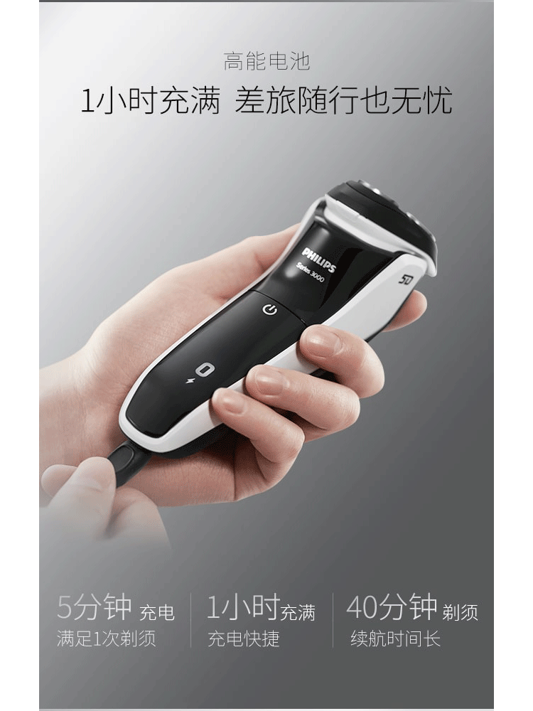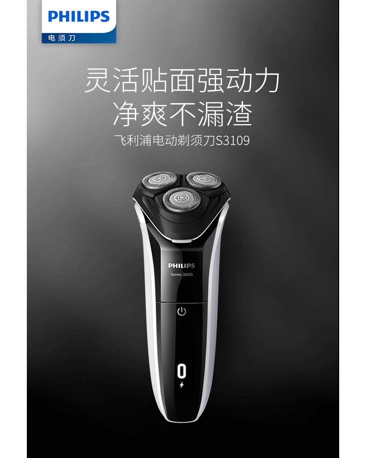 飞利浦PHILIPS男士电动剃须刀干湿双剃刮胡刀新3系升级款S3109