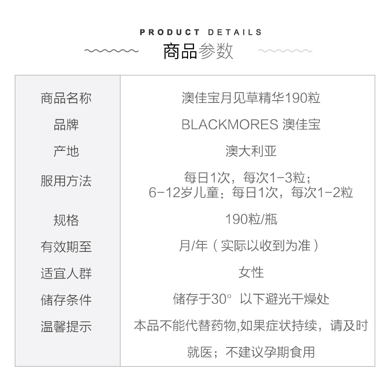 BLACKMORES澳佳宝月见草精华190粒 缓解女性经期不适