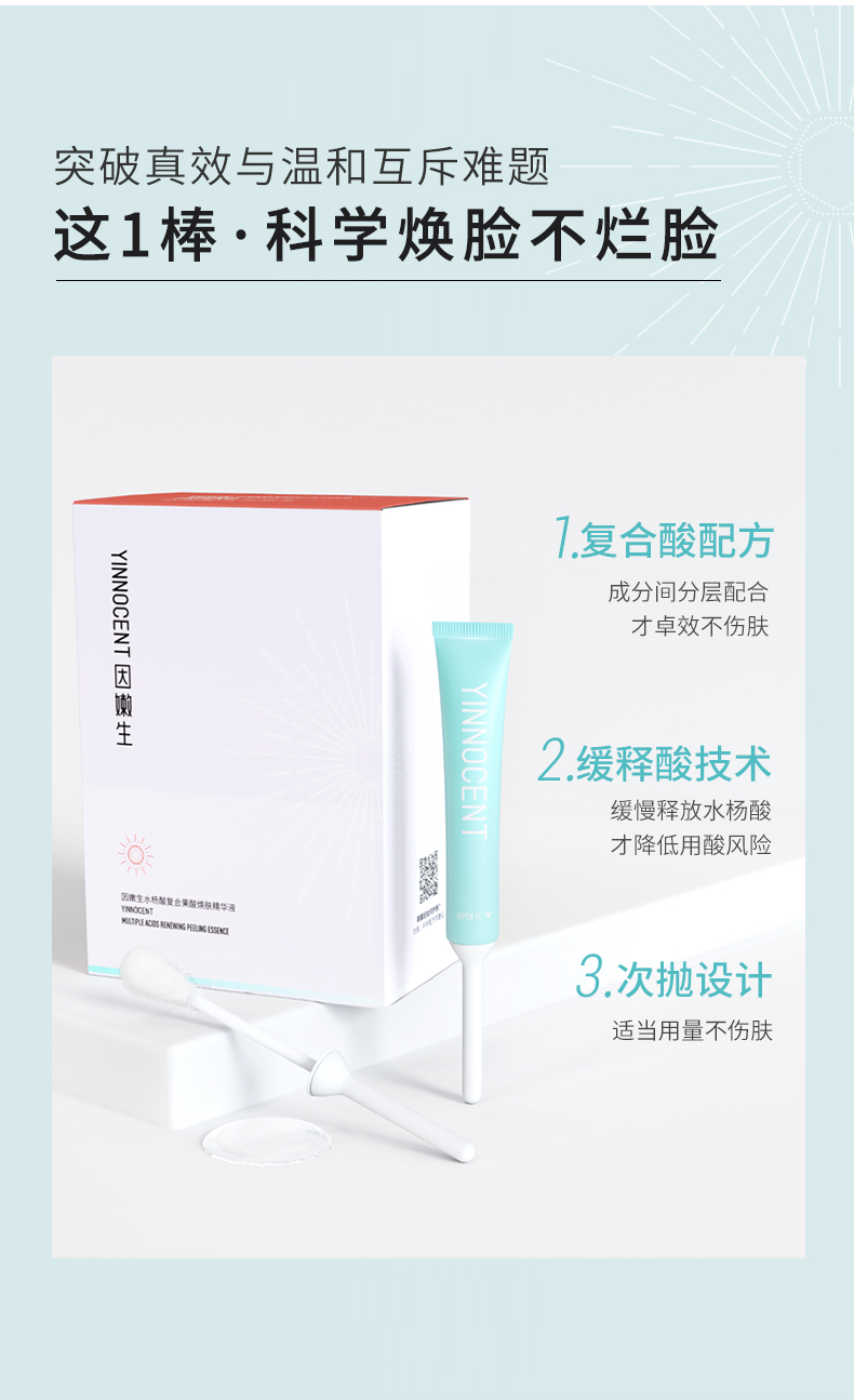 【植观×因嫩生】姐妹品牌因嫩生水杨酸复合果酸焕肤精华棉棒*1盒(2.5ml*6支) |挑战7天 焕脸不烂脸(植观旗舰店)