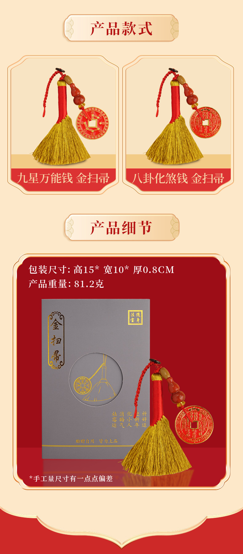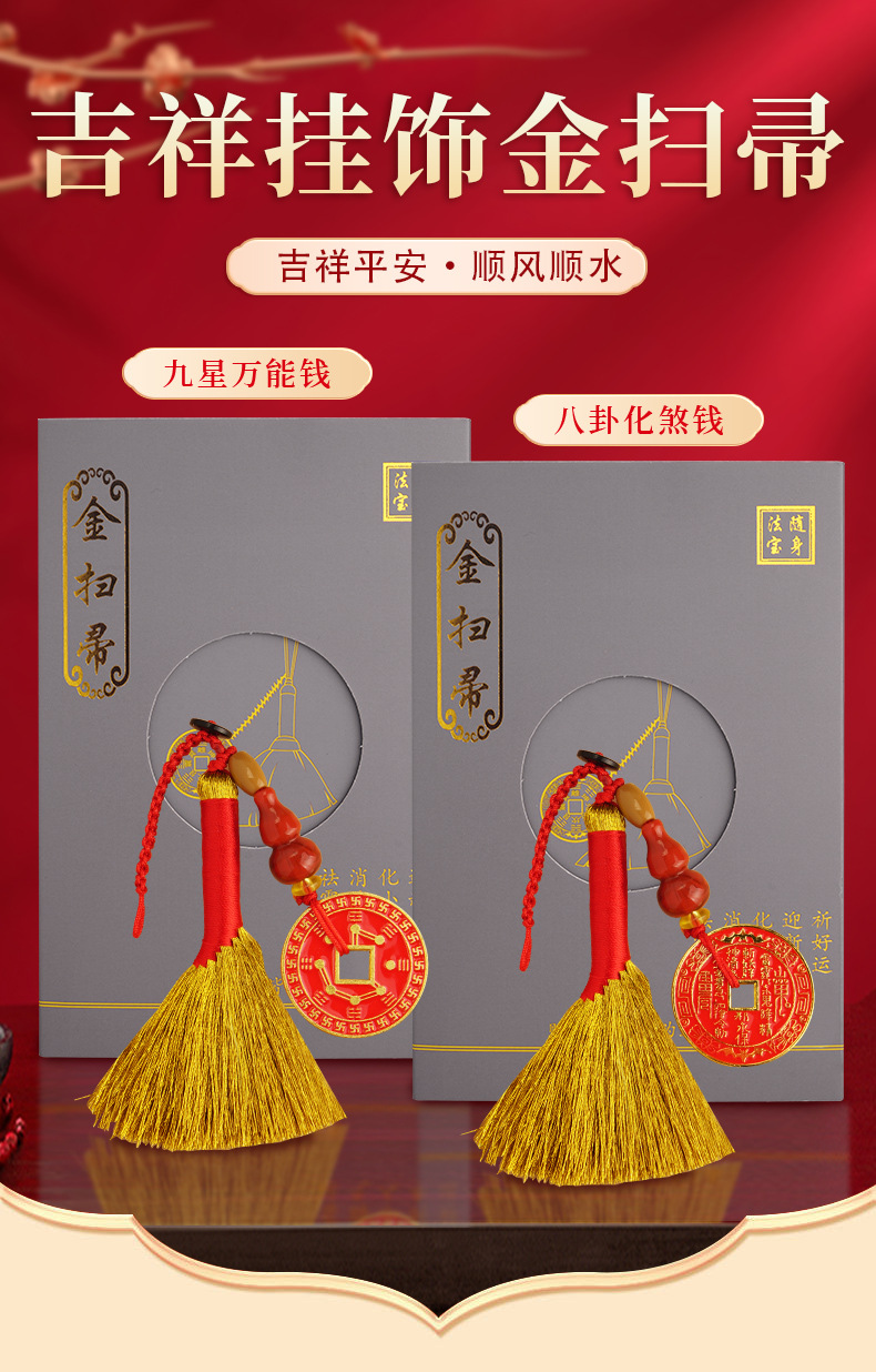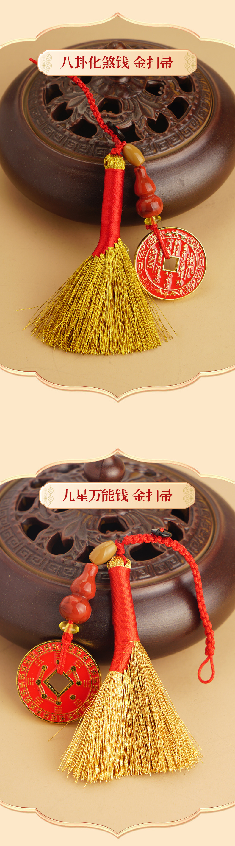【祈愿吉品】金扫帚/ 金扫把 八卦钱挂饰 小亻退散