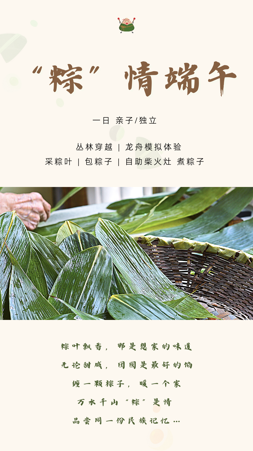 孩子志 | “粽”情端午 独立&陪同、大巴/自驾 张家港【会员价】 6/8(周六 端午)、6/9(周日 端午)、6/10(端午节) 一起采粽叶、包粽子、丛林穿越、柴火灶自助、煮粽子、龙舟模拟体验….