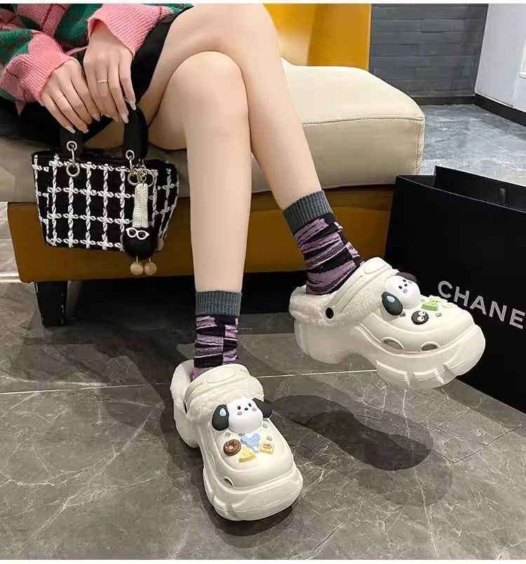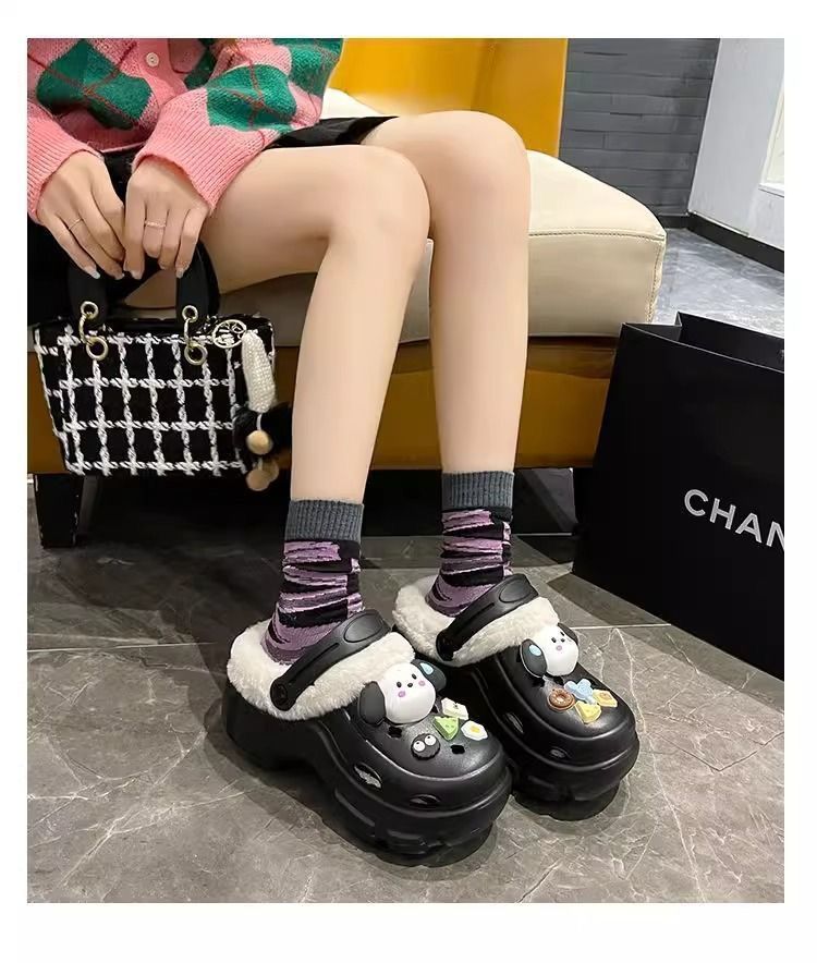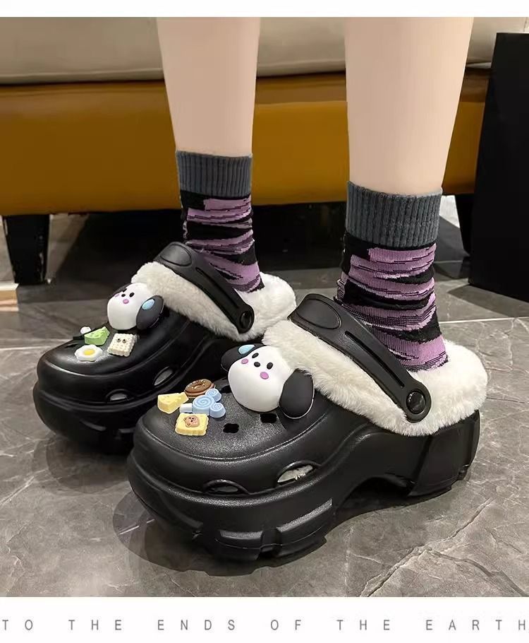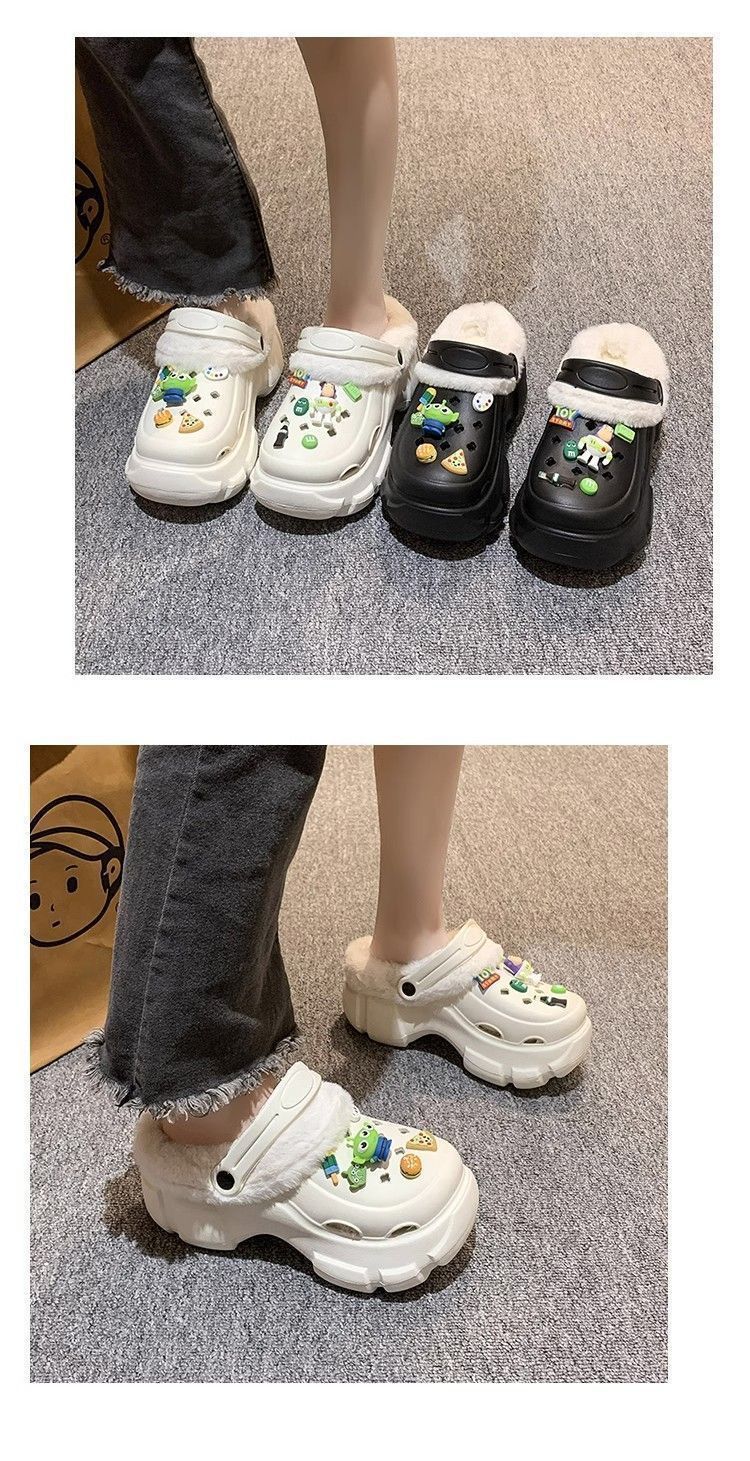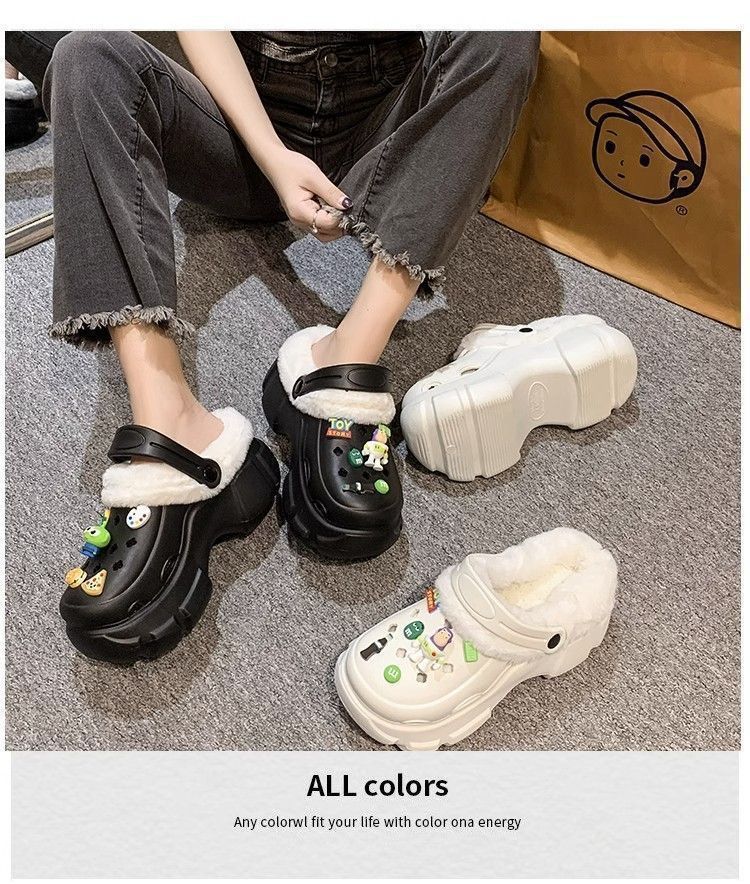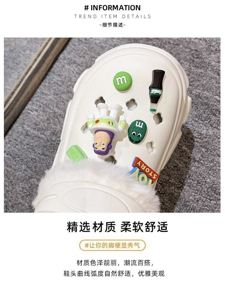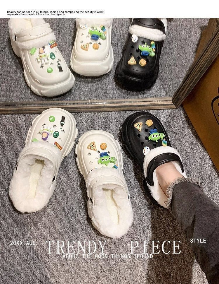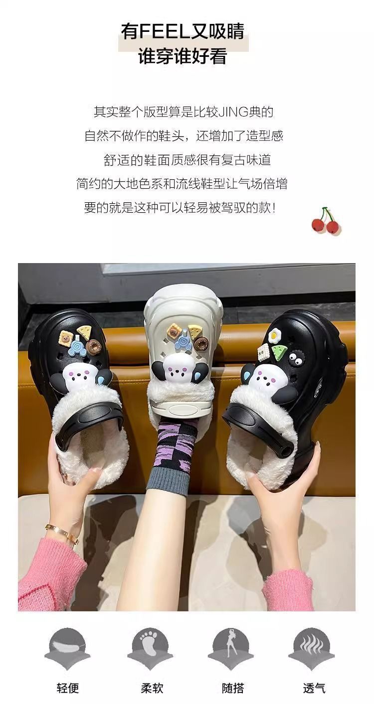 【超可爱❗️带配饰加绒洞洞鞋】足下“暖宝宝”,包跟好暖好舒服❗️洞洞鞋冬季加绒可拆卸,女秋冬少女高跟,可爱学生防滑棉拖鞋冬季加绒L