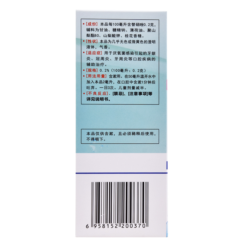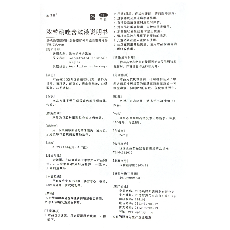 金口馨浓替硝唑含漱液100ml*1瓶/盒 冠周牙龈炎治疗口臭漱口水