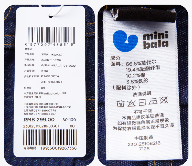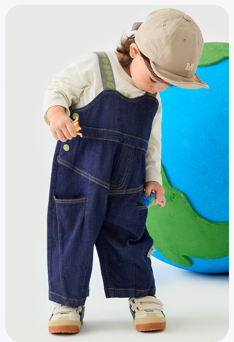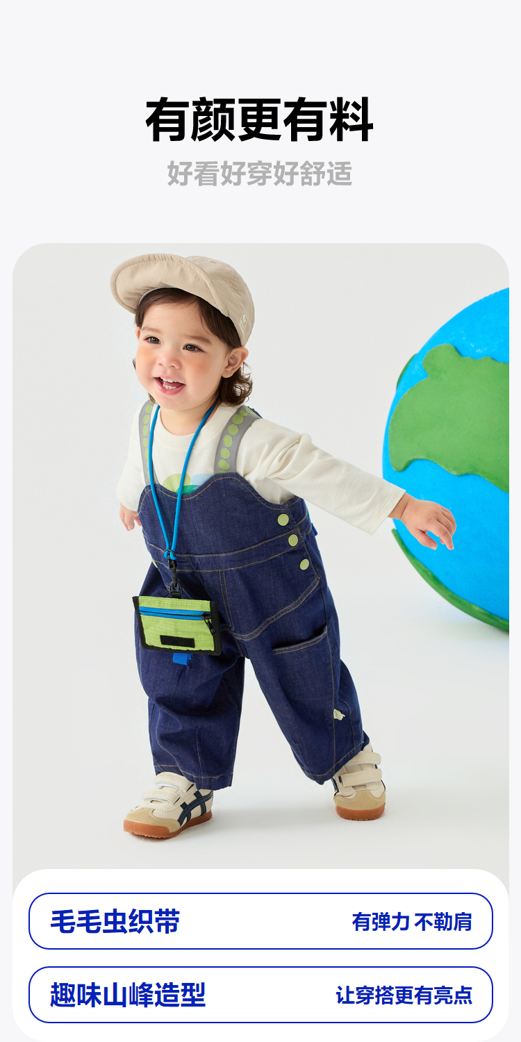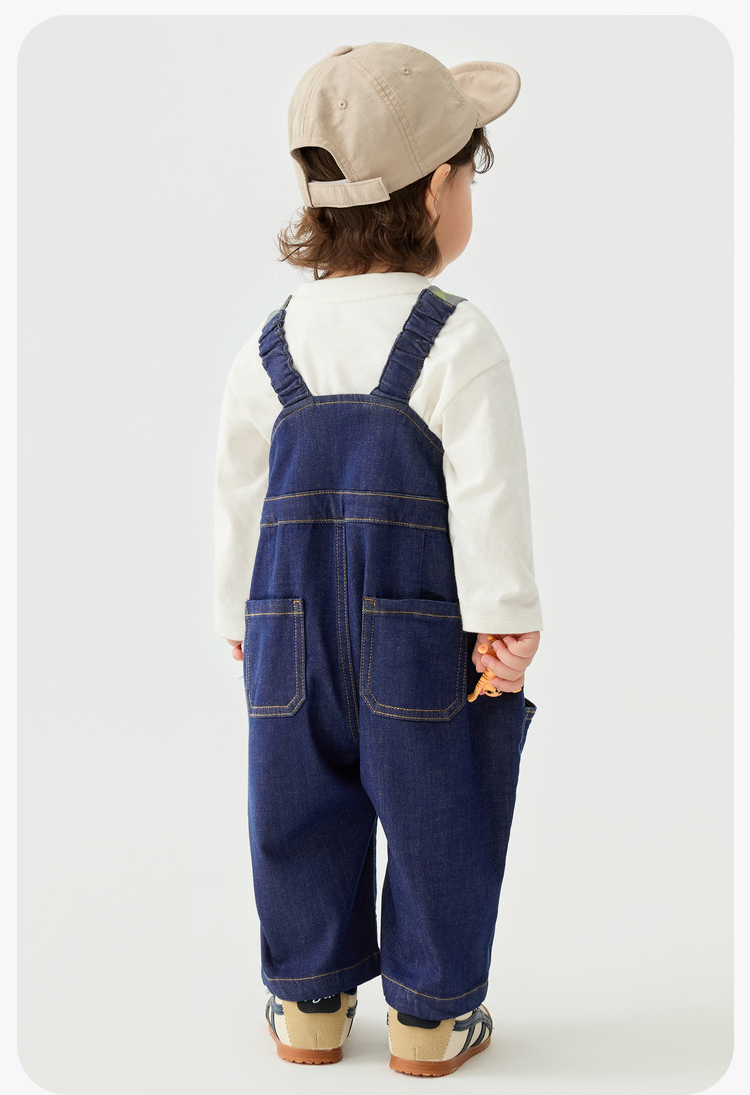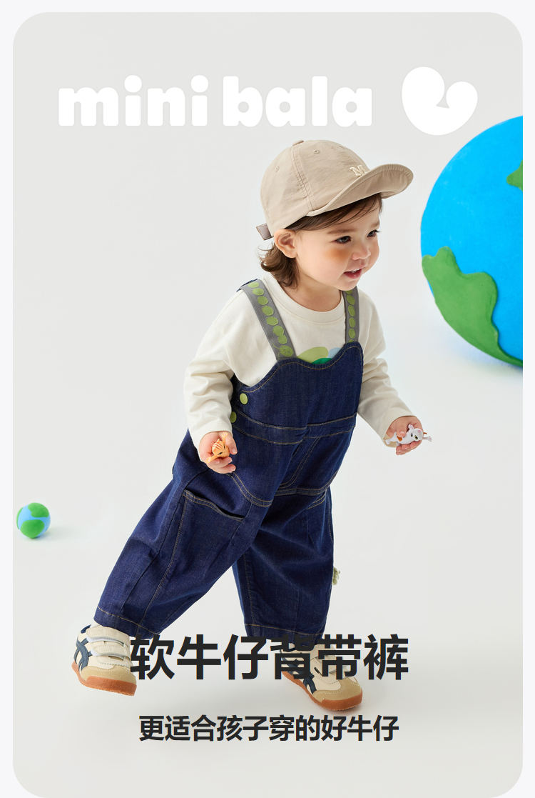 迷你巴拉男女童裤子春新品宝宝背带裤萌趣可爱婴儿牛仔裤