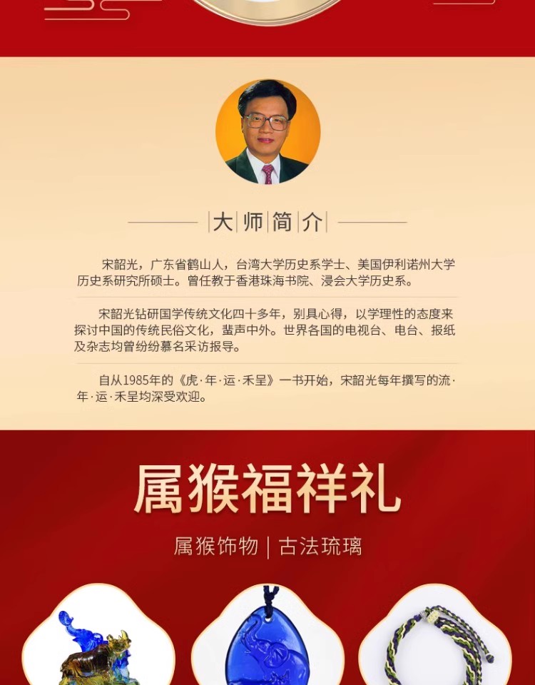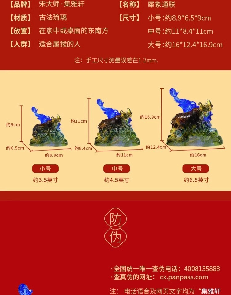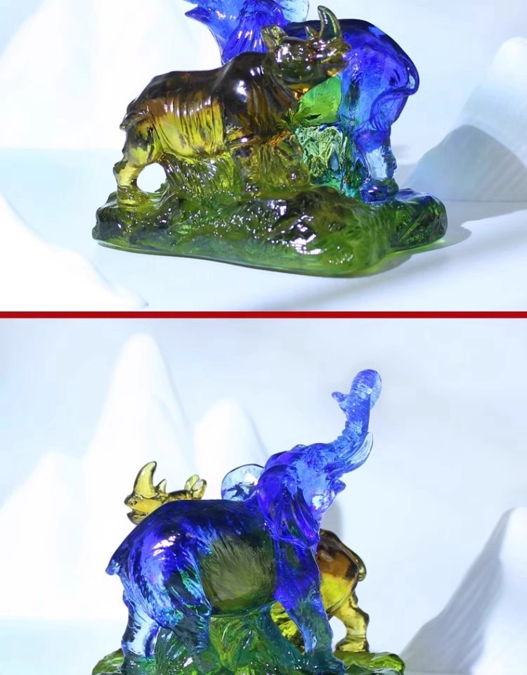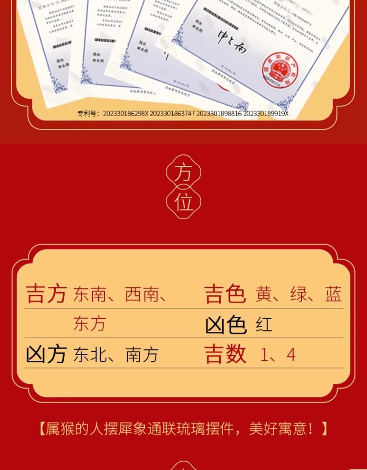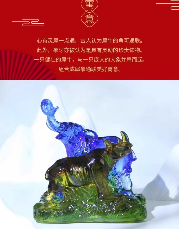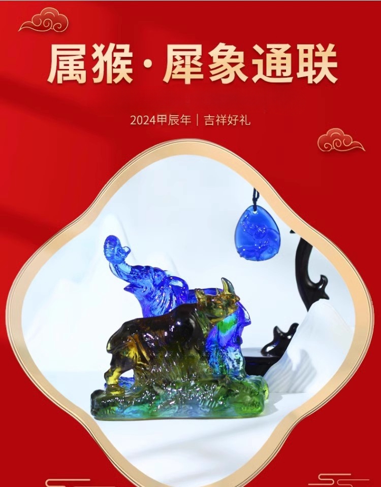 宋韶光吉祥天地 2024龙年吉祥物生肖属猴 犀象通联情侣琉璃摆件
