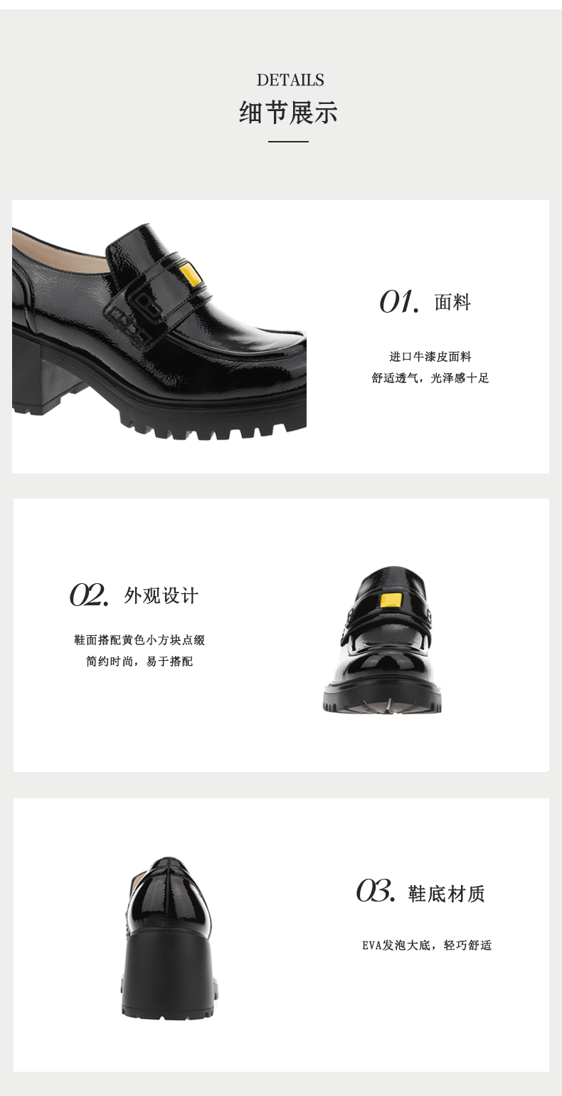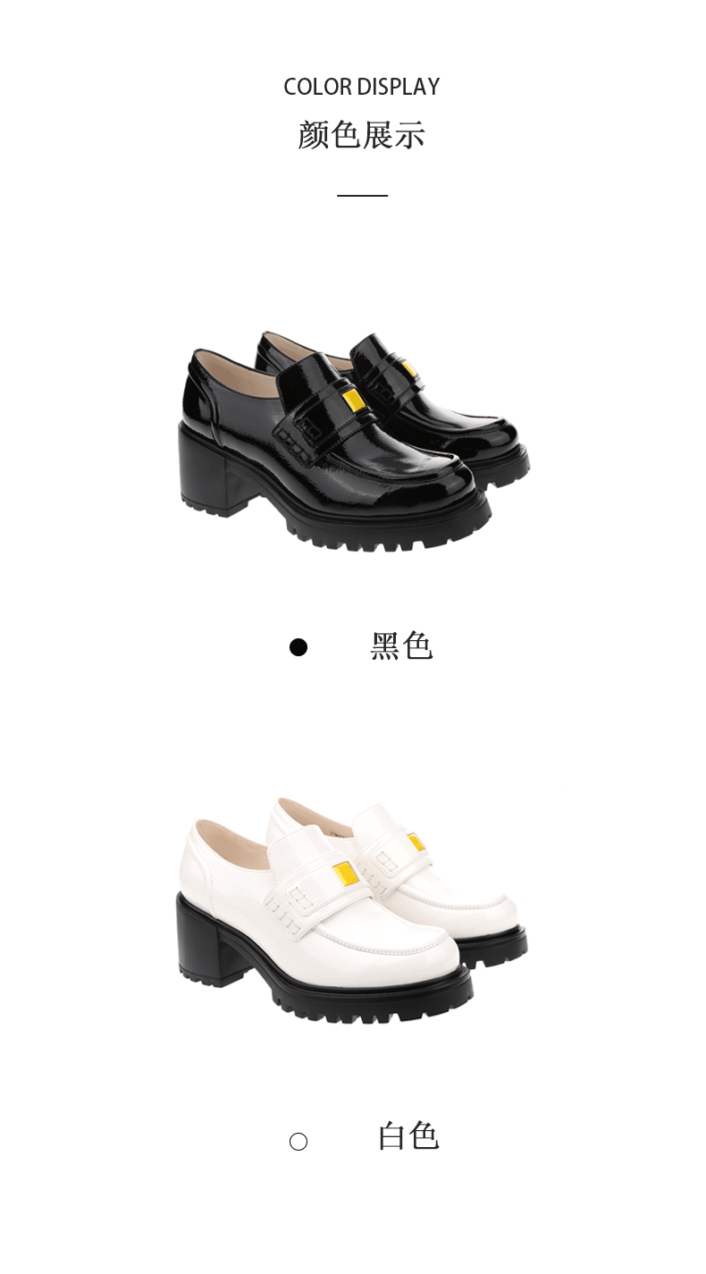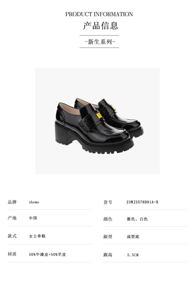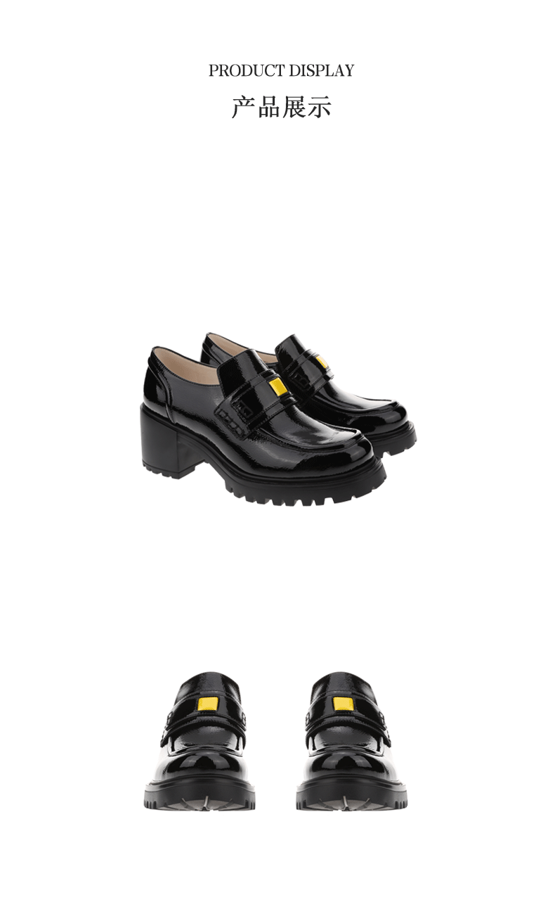 sheme新生系列进口牛漆皮简约时尚厚底中跟女士乐福鞋可定制