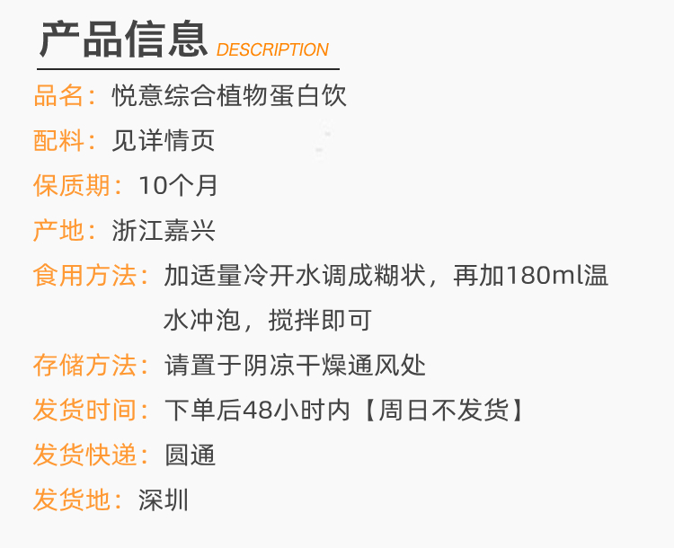 悦意 综合植物蛋白饮 300g/盒(30g*10袋)