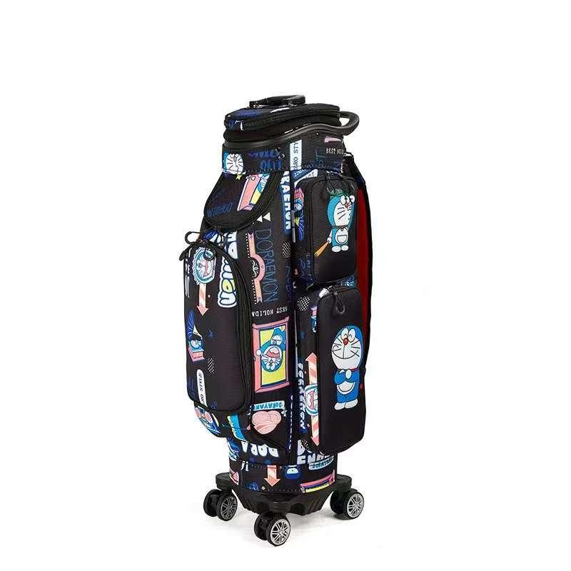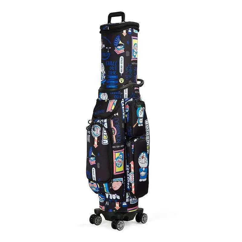 高尔夫多来A梦航空伸缩球包 4向轮 带刹车 防尘罩密码锁