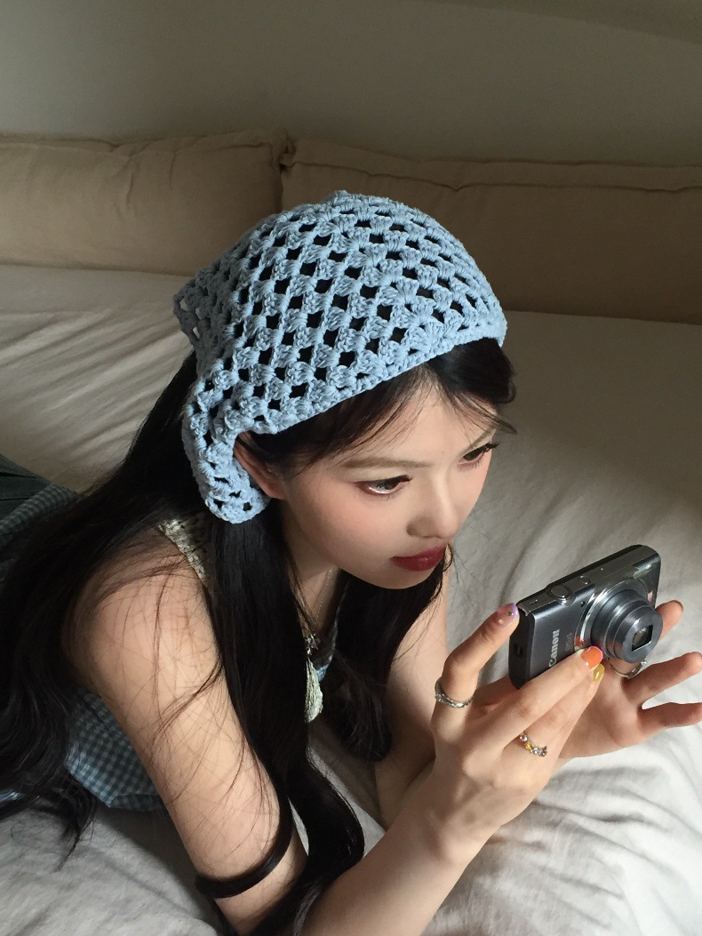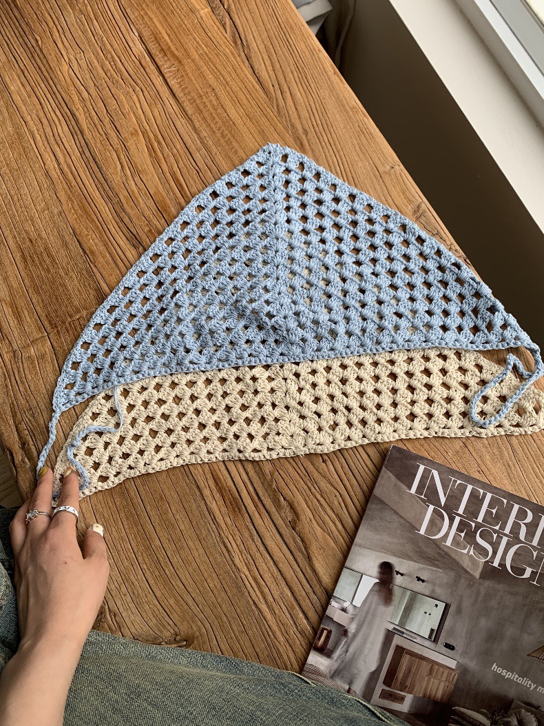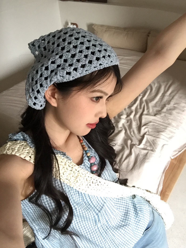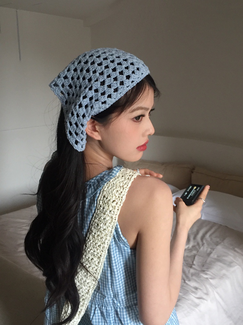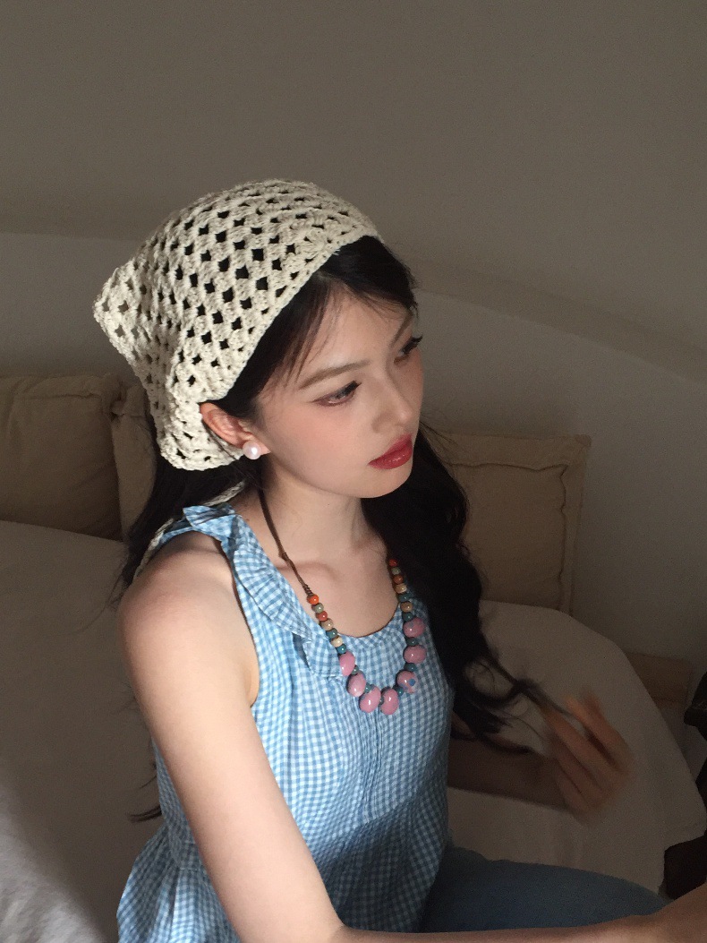 【法式三角镂空古装头巾】闪电小狗氛围感日系绑带头巾,ins感十足镂空不闷热,2025新款女生三角巾拍照发饰QQ