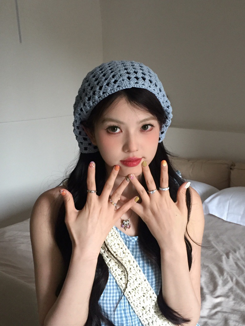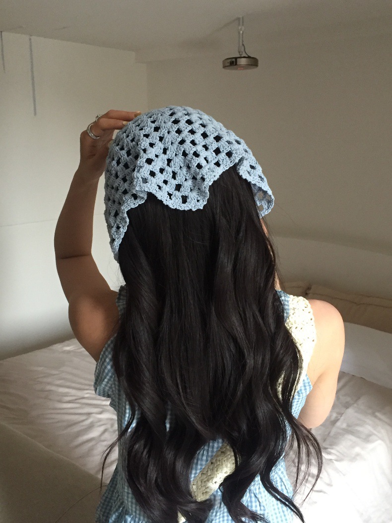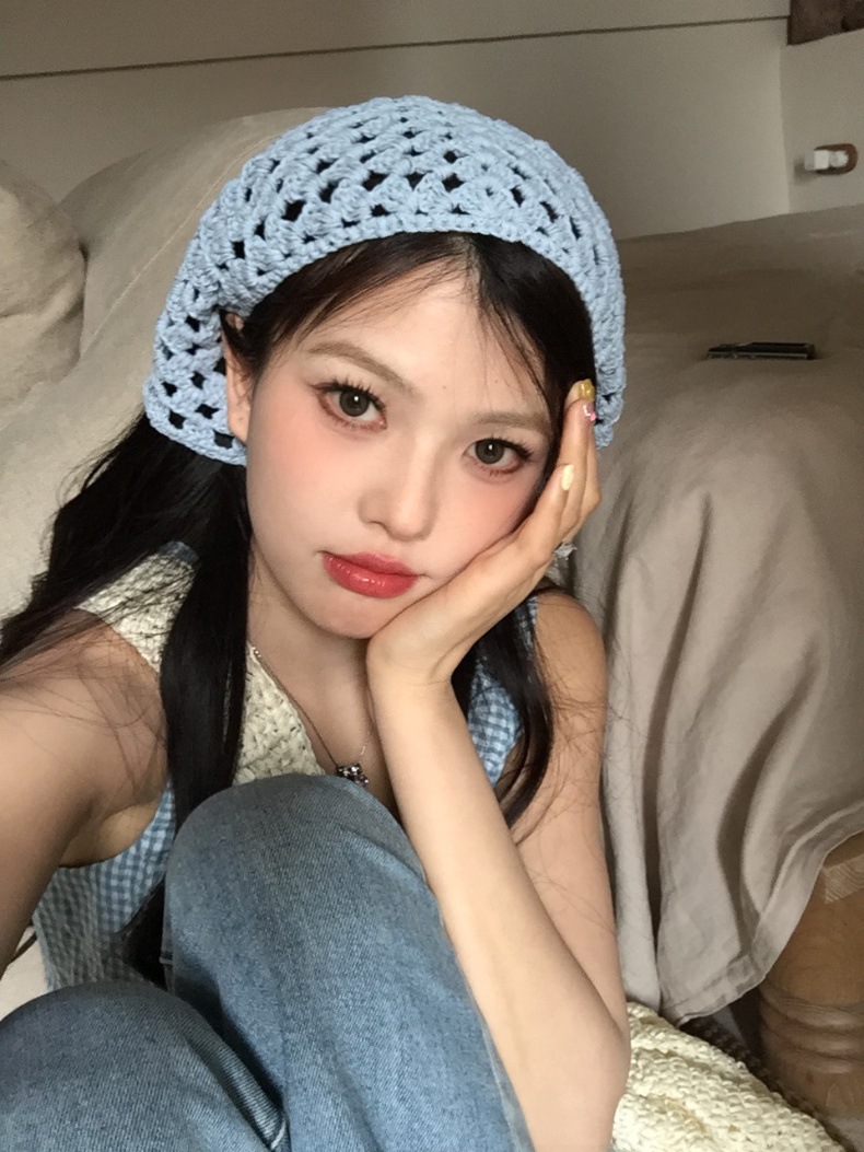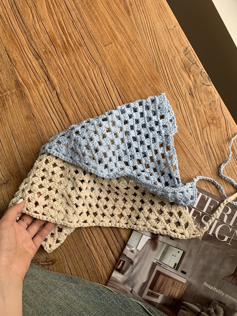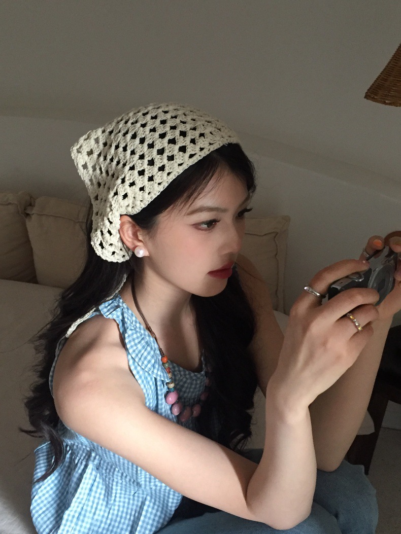 【法式三角镂空古装头巾】闪电小狗氛围感日系绑带头巾,ins感十足镂空不闷热,2025新款女生三角巾拍照发饰QQ