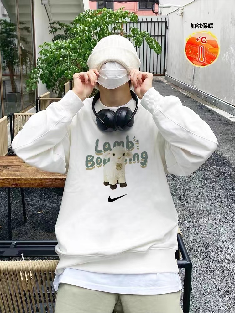 【高品质加绒加厚】卡通小绵羊 抓绒保暖圆领卫衣 男女同款 采用原版定制420g轻氧棉面料内里超重磅设定 银狐绒加绒内里 索温蓄热 不惧寒冷