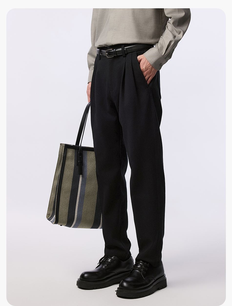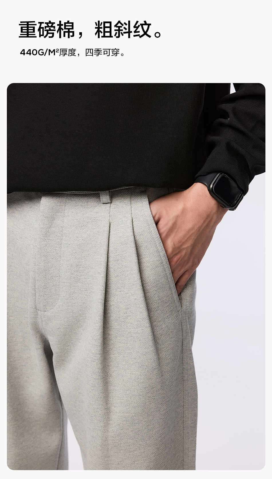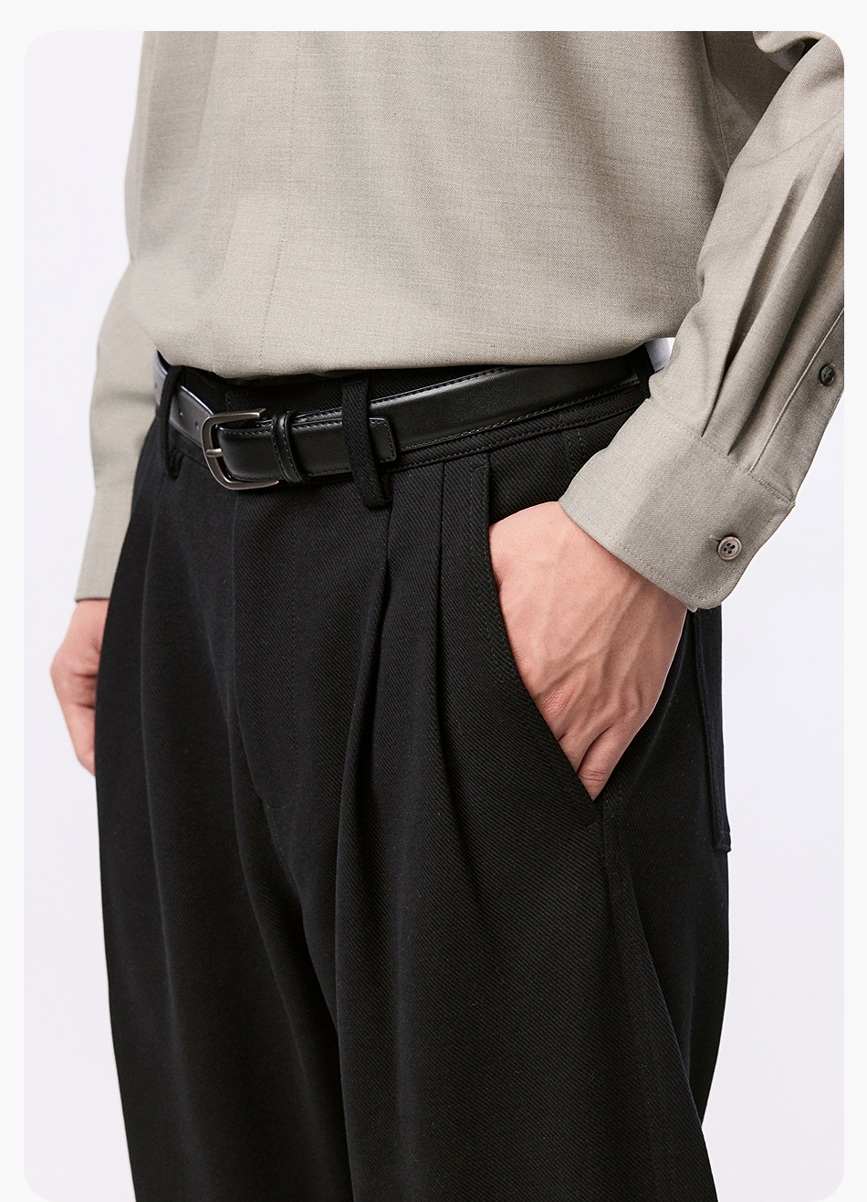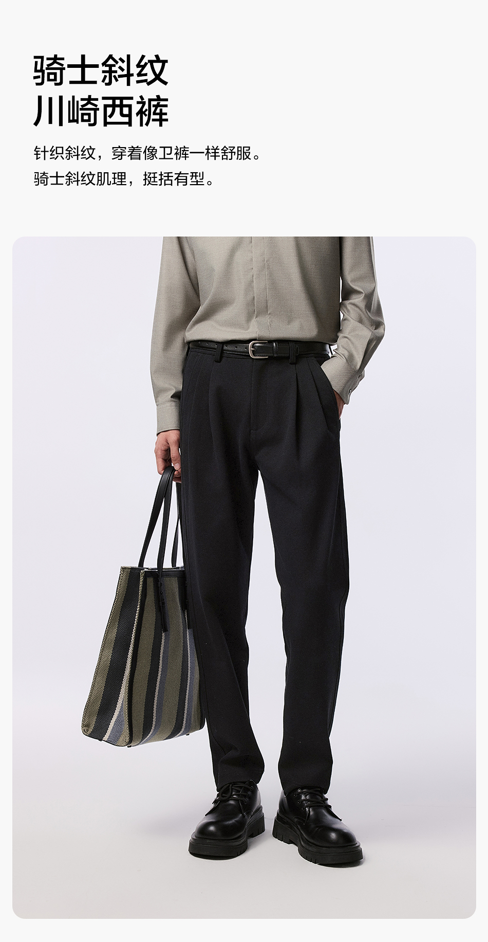棉仓356818005-针织粗斜纹双褶川崎西裤