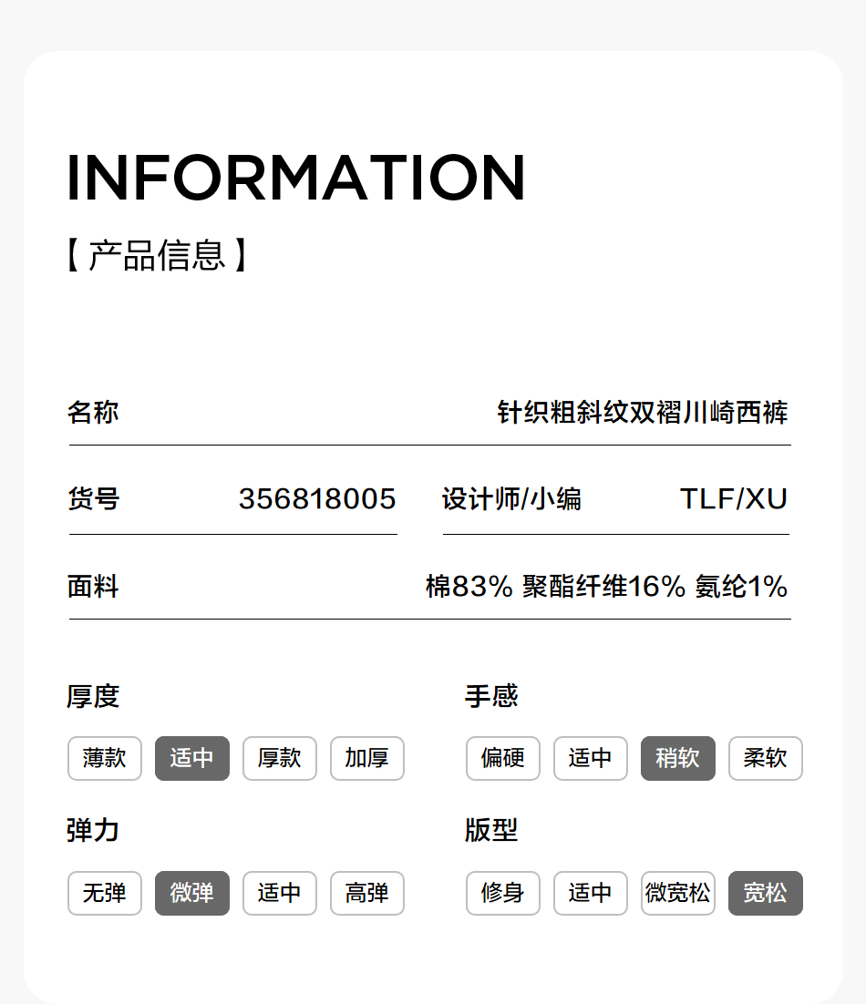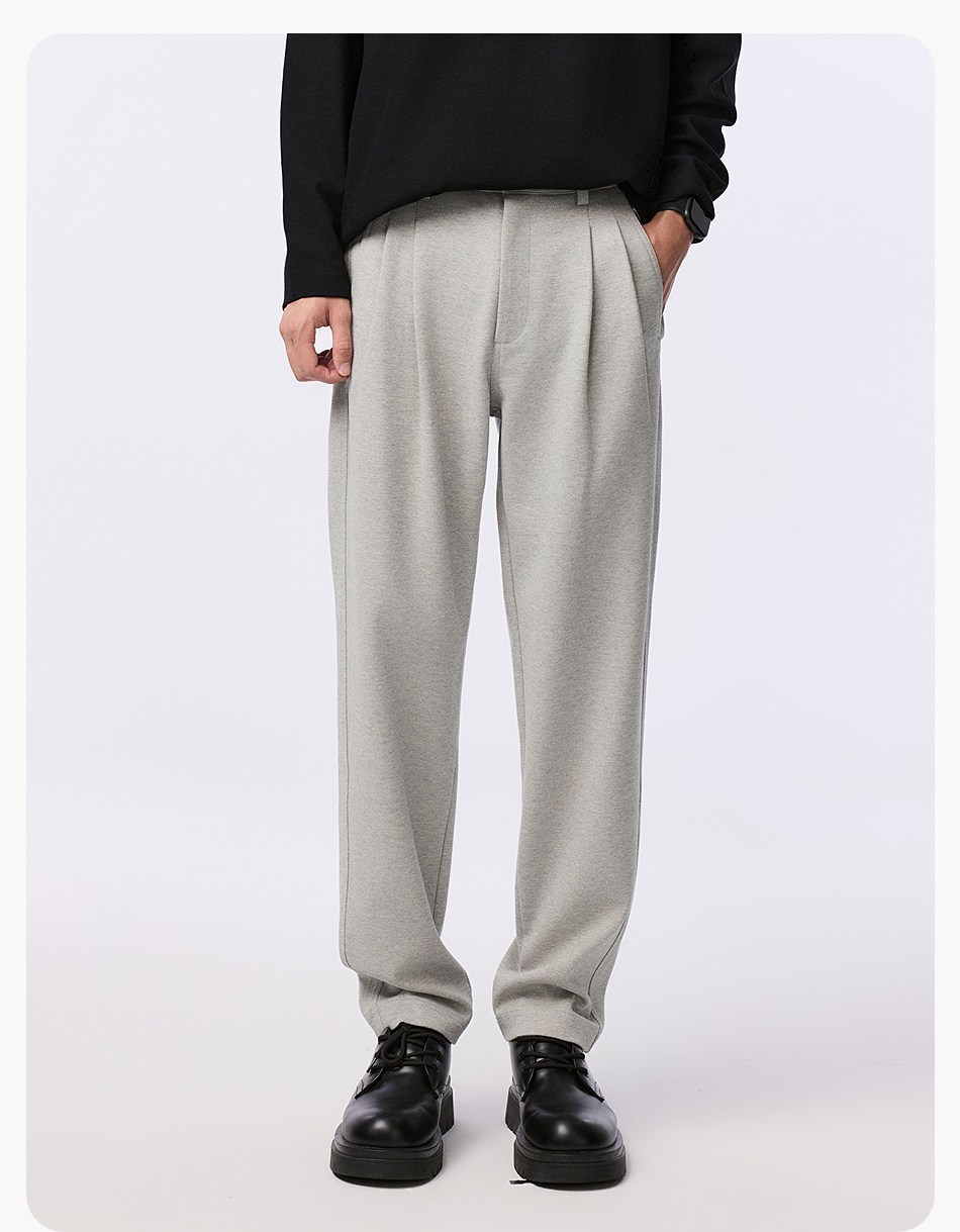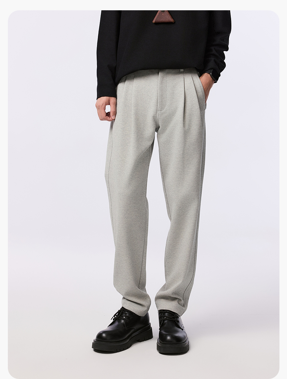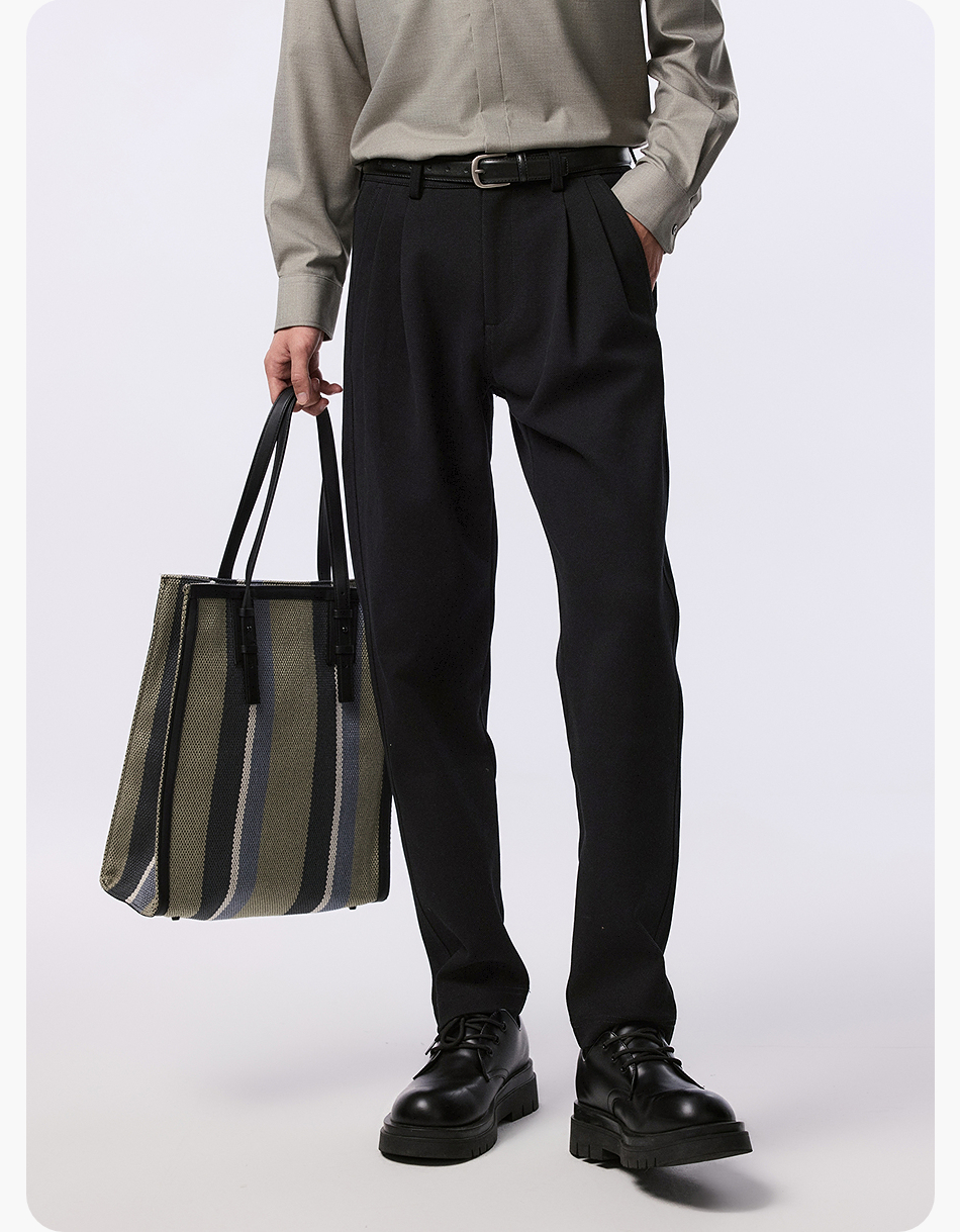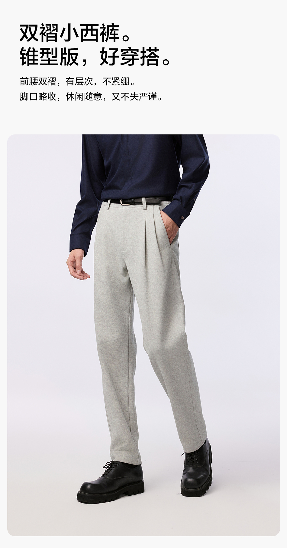 棉仓356818005-针织粗斜纹双褶川崎西裤